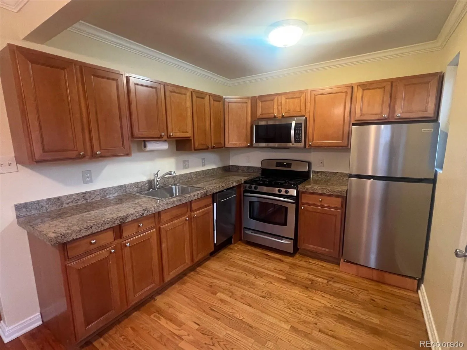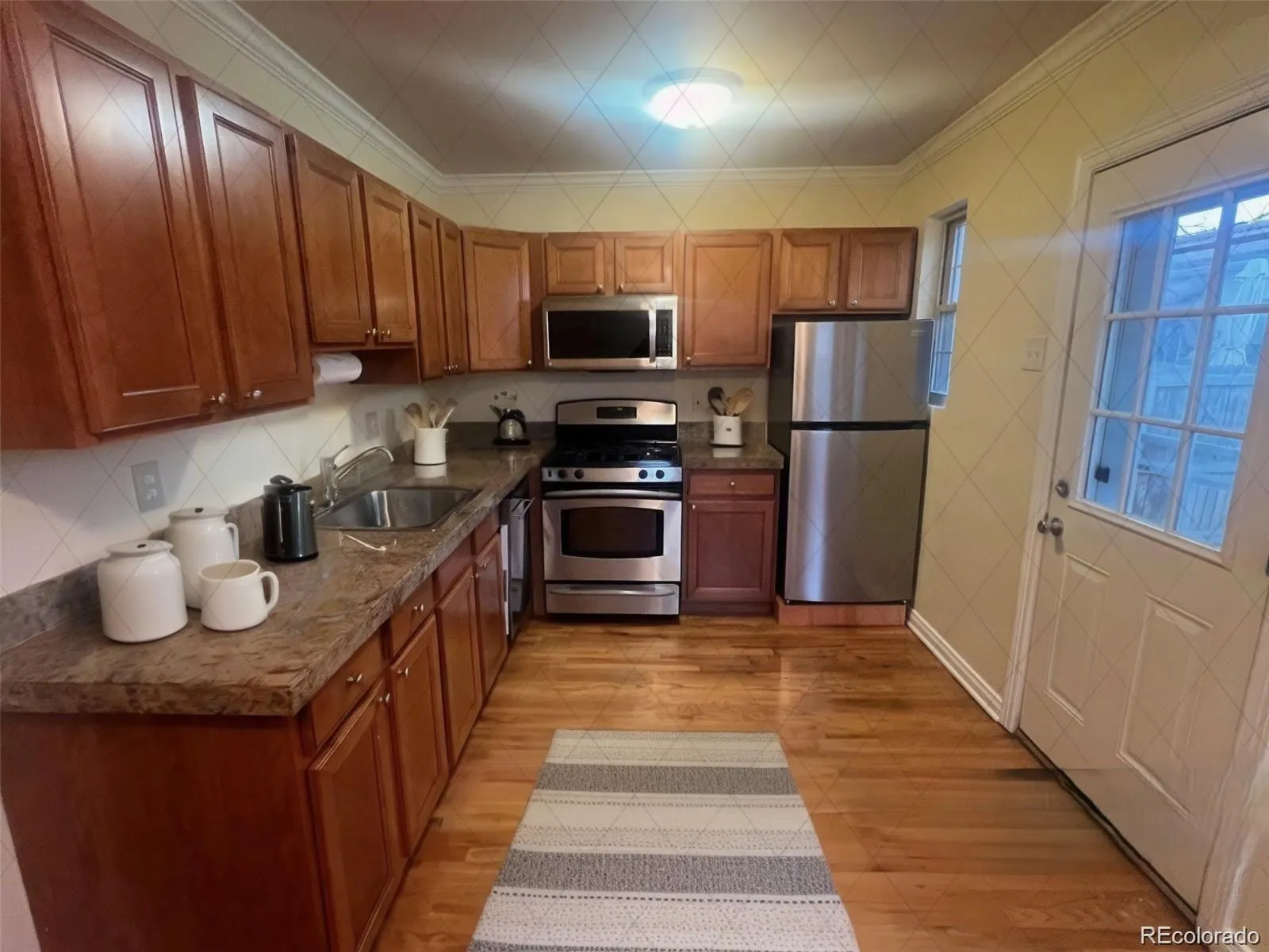 Wonderful opportunity to own your own townhome in Denver. AFFORDABLE HOA INCLUDES WATER, HEAT, OUTSIDE MAINTENANCE AND SNOW REMOVAL. Centrally located and only 5-minute walk to grocery stores and many restaurants. This home has an open free flowing floor plan with spacious living room and bedroom. Stackable washer/dryer included. Freshly painted interior and updated Stainless Steel appliances in the kitchen. Lots of windows make the unit bright with natural lighting. 1 car detached garage. Nice outside fenced back patio and grass area with a great shade tree for summer days. Add this home opportunity to your must-see list!