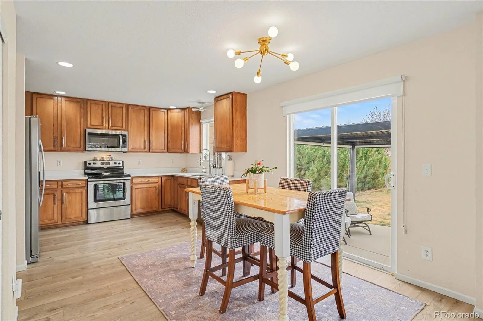 The outdoor space is equally appealing, with a fully fenced backyard featuring a new pergola with adjustable sunshades, ideal for dining and year-round enjoyment. The corner lot provides added privacy and space.