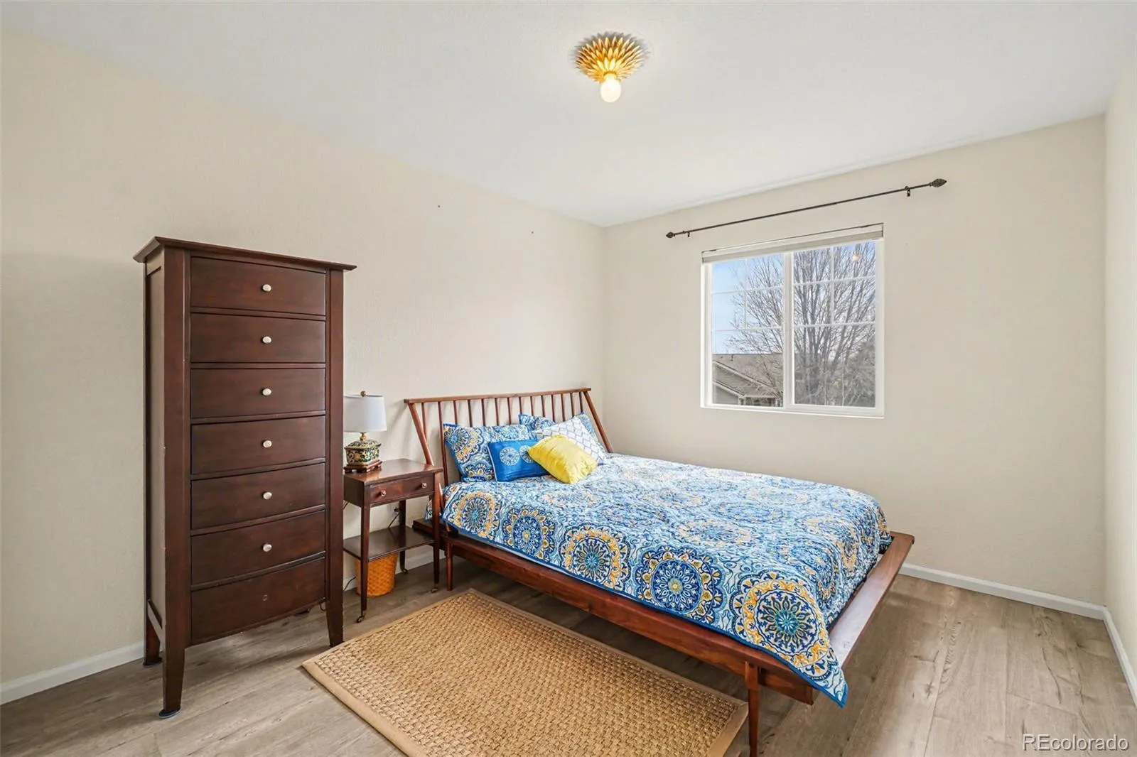 Upon entry, you are welcomed into an open, light-filled great room featuring soaring vaulted ceilings, ideal for relaxing and entertaining. The kitchen is thoughtfully designed with sleek quartz countertops, a designer sink and faucet, premium appliances, and newly installed blinds, offering both functionality and style. Durable luxury vinyl plank flooring extends throughout the home, creating a seamless, contemporary aesthetic.