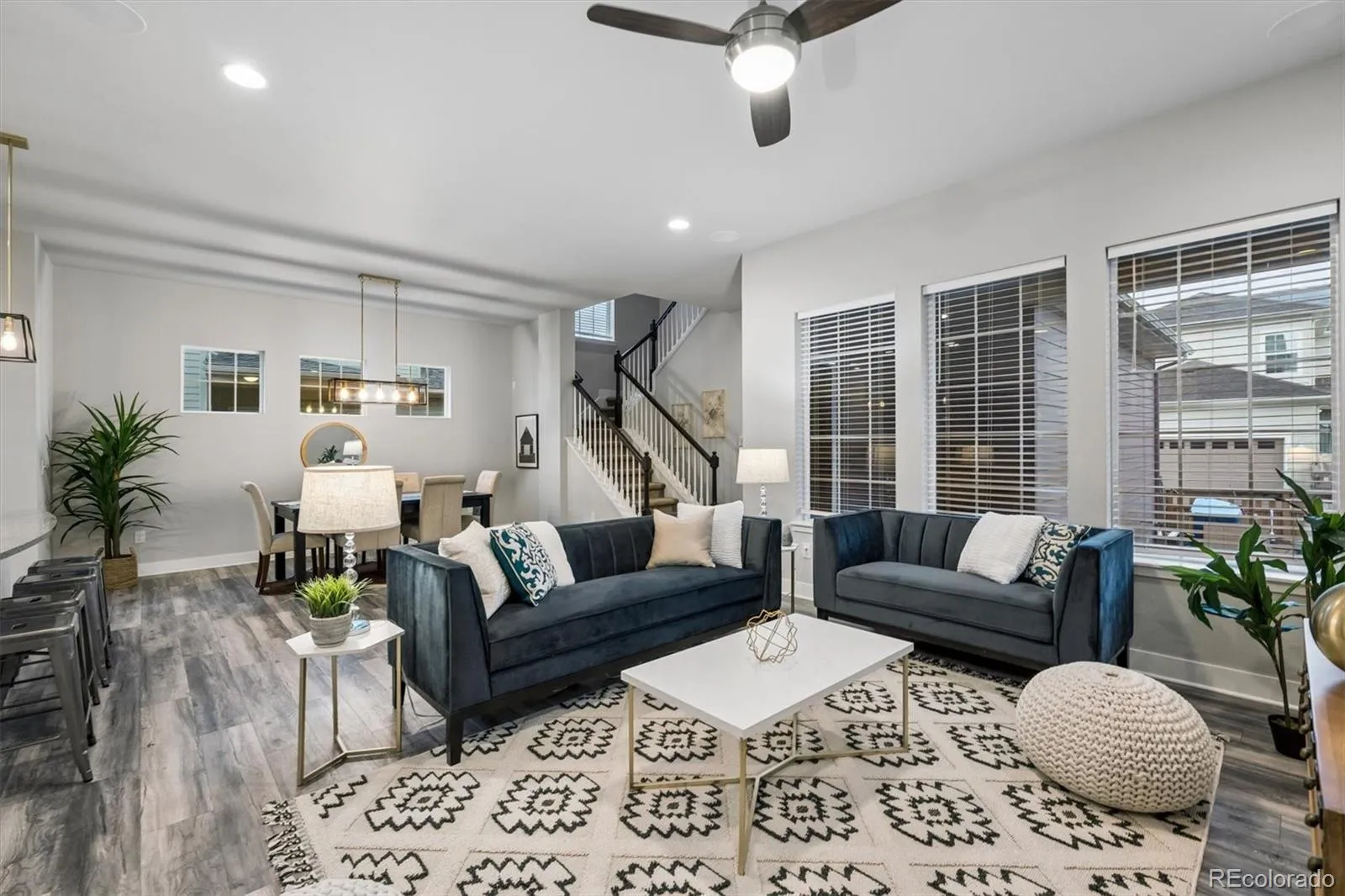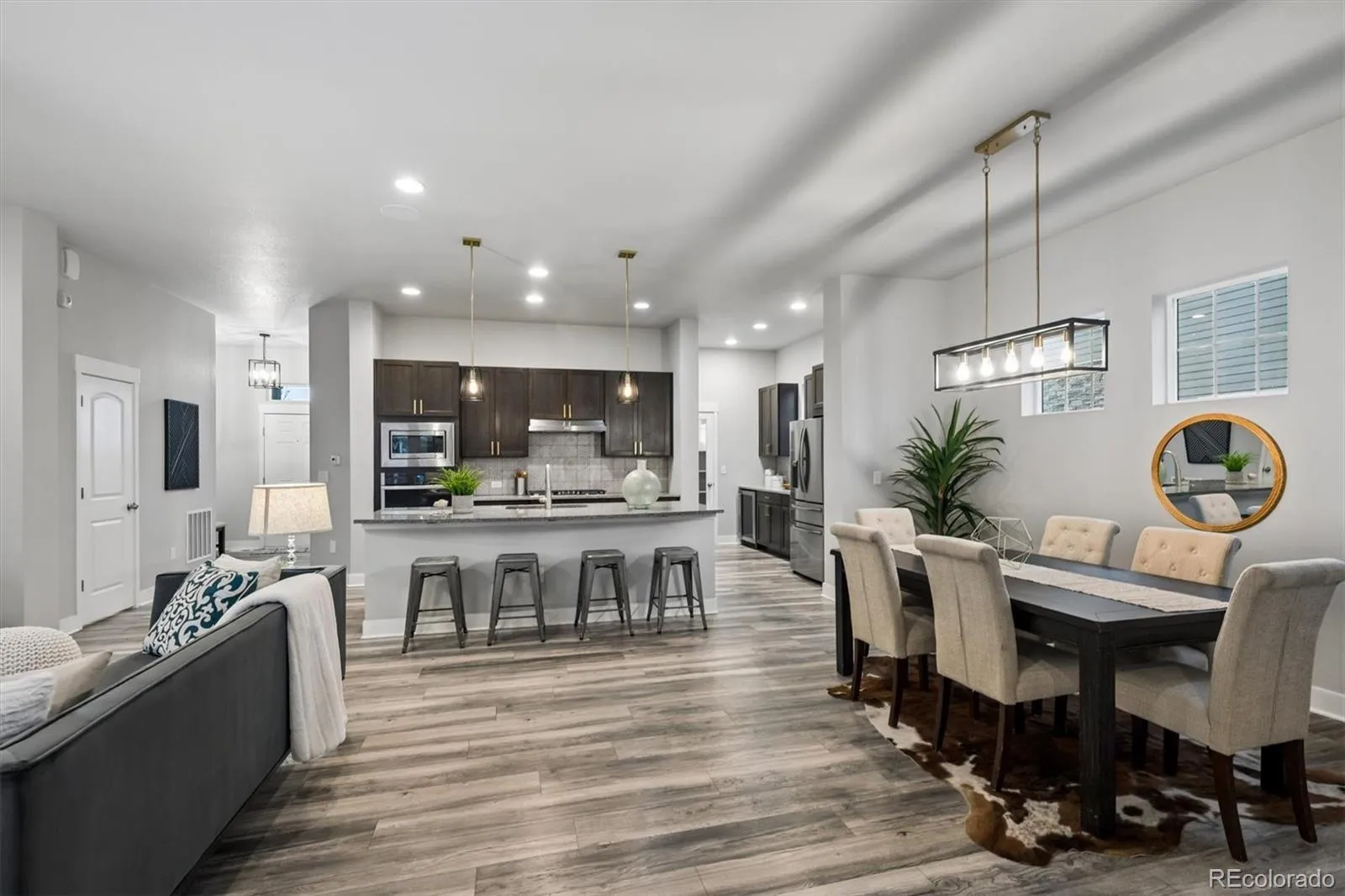 Enjoy modern conveniences throughout, including a central vacuum system and in-ceiling surround sound that add to the home’s elevated feel. Upstairs, you’ll find a spacious loft and three generously sized bedrooms. The primary suite is a true retreat, complete with a luxurious 5-piece bath and breathtaking views of the Rocky Mountains and Downtown Denver. Step outside to enjoy the maintenance-free backyard, featuring a covered patio—ideal for relaxing or entertaining without the upkeep. The unfinished basement with high ceilings offers excellent potential for future expansion, while the attached 2-car garage with custom overhead storage provides plenty of space for organization. This home truly combines style, function, and location—don’t miss your opportunity to own in one of Painted Prairie’s most desirable settings.