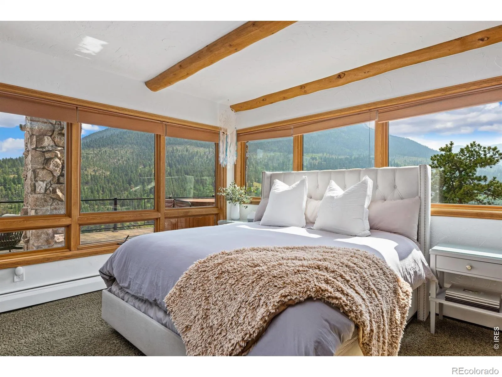 Astounding panoramic mountain views pour through every window of this extraordinary 12-acre hillside estate, perched high on the sunny south-facing slopes of McGregor Mountain and bordering Rocky Mountain National Park to the north.Just one mile from the Fall River entrance, this is a rare opportunity to own a generational property where privacy, scale, and proximity to RMNP align in remarkable fashion.Recently expanded and extensively remodeled, the home offers generous living spaces and a canvas ready for your final vision. High-quality construction and curated features include a sauna, multiple steam showers, motorized blinds, bespoke fixtures, and a Hartley Botanicals greenhouse – all set against sweeping views into RMNP and the Estes Valley.The upper level is designed for gathering, with multiple dining areas and a well-appointed kitchen anchored by a massive commercial Wolf gas range. Step outside to the newly completed rooftop deck with composite decking and iron railings, where panoramic views and mountain air create an unforgettable outdoor living experience.The lower-level addition opens the door to even more possibility, with space planned for a home theater, family room, additional bedroom and bath, and a 31′ x 42′ attached 3-car garage, all awaiting your finishing touches.With coveted A-1 zoning, the potential extends far beyond the home itself. Short-term rental licensing may be applied for without restriction to the typical waiting list or cap (buyer to verify with Larimer County). Explore opportunities for additional residences, cabins, or income-producing uses. Existing plans support conversion of the 28′ x 50′ detached barn/garage/workshop into a separate living space or barndominium or just stuff it full of your toys! Private, expansive, and filled with possibility – yet just yards from RMNP and a couple minutes from town – this is a mountain estate where vision meets reality.