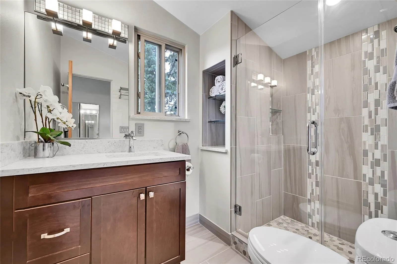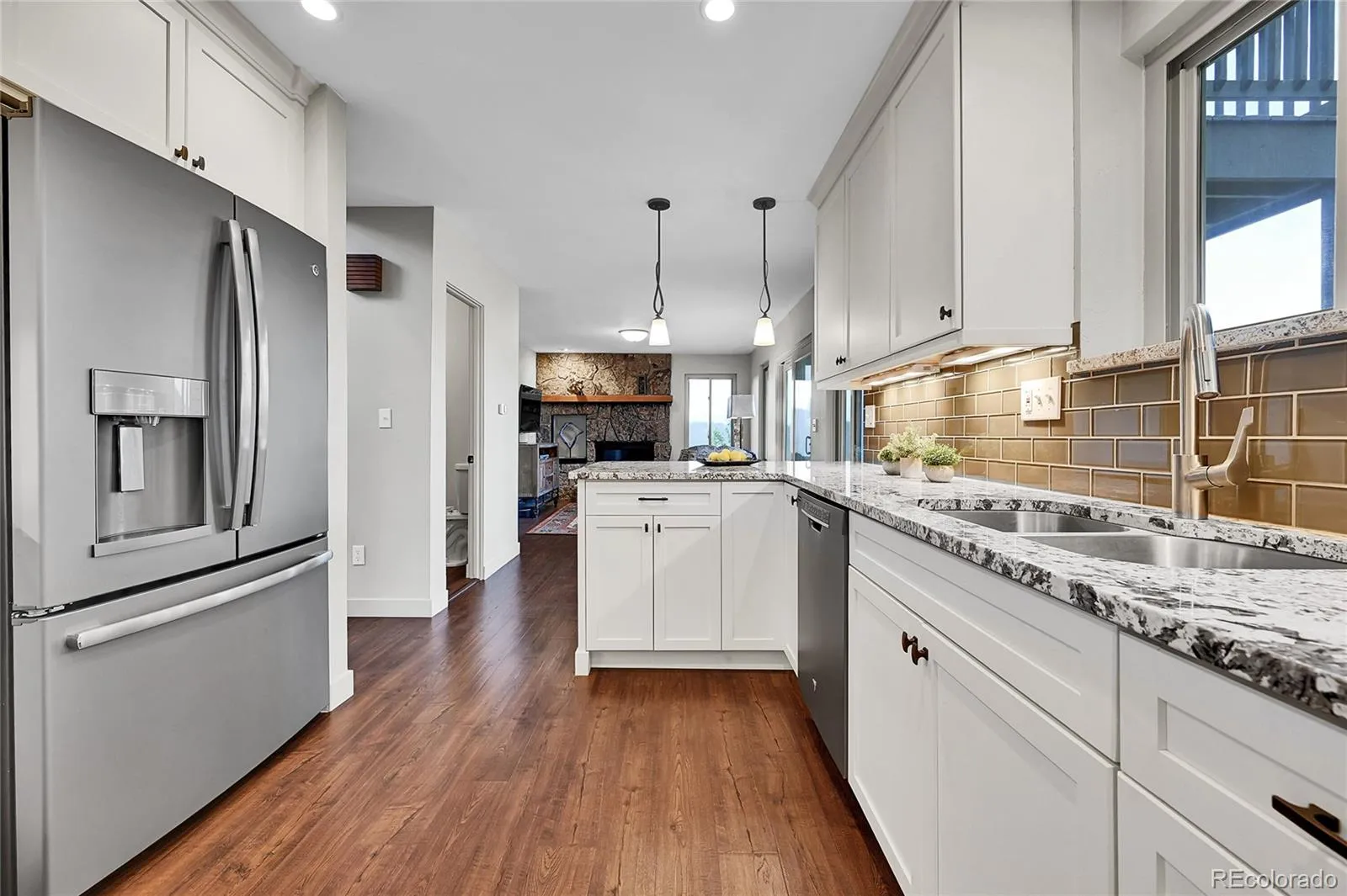 Modern vibes, mountain setting, unbeatable location! Ideally situated in North Evergreen with quick access to trails and amenities, this beautifully updated home blends modern style with convenient mountain living. Thoughtfully renovated throughout over the past few years, the home showcases a refined contemporary aesthetic, including a remodeled kitchen and bathrooms, along with smart upgrades such as WiFi thermostats and a 3-zone heating system. A welcoming entry opens to a vaulted living room with clean lines and newer luxury vinyl flooring that flows seamlessly across the main level. The sleek kitchen with counter seating connects effortlessly to a cozy family room featuring a newer sealed gas fireplace—creating a warm yet modern gathering space. Step outside to take in the views from the custom rock and flagstone patio, complete with a gas fire pit for relaxed outdoor living and entertaining. Extensive landscaping in place too. Upstairs, four bedrooms include an expansive primary suite with a private deck, scenic views, and a beautifully remodeled bath. Public utilities and high-speed internet too! And, this home can be sold fully furnished for a turn-key seamless move in or investment opportunity. Just minutes to Elk Meadow Park and Evergreen Lake, with miles of trails, open space, and nearby amenities including the rec center, art center, shopping and dining—all easily accessible via paved roads. Quick access to Red Rocks, skiing, and metro Denver completes the ideal location. A stylish, move-in ready home with a fresh, contemporary vibe in one of Evergreen’s most convenient neighborhoods. The best of Evergreen at your doorstep! More photos, 3D walkthrough coming on April 5th.