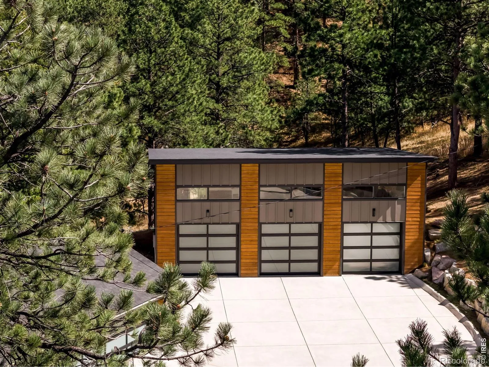 This extraordinary mountain retreat captures truly breathtaking, panoramic views, to the Boulder Reservoir, city lights, and sweeping plains. Set on 1.26 private acres in coveted Pine Brook Hills, just minutes from Broadway and Pearl Street, this home seamlessly blends refined luxury with Colorado’s natural beauty. Inside, vaulted ceilings with oak-wrapped beams, wide-plank white oak floors, and a four-section panoramic door wall frame those views from the heart of the home. A designer gas fireplace anchors the great room while a chef’s kitchen with Thermador appliances, spa-inspired primary bath, heated floors in most bathrooms, and a walk-out lower level with gas fireplace round out an interior designed without compromise. Radiant heat, solar, smart home features, and a 175 amp electrical service with pre-wired generator circuit ensure the home performs as well as it presents. Then there is the garage. The 995 sq ft 3-car detached garage was purpose-built for the serious enthusiast. A 9,000 lb lift, 16 ft ceilings with firehouse doors, capacity for up to three lifts, compressed air plumbed throughout, full-width drain coverage, an Intelagard foam fire suppression system, a dedicated gas heater, three Big Ass fans, and 220v EV charging make this an automotive facility that is virtually impossible to find this close to Boulder. A 420 sq ft 2-car attached garage with a second 220v EV outlet rounds out a 5-car setup.A property this complete, this considered, and this close to Boulder does not come along often.