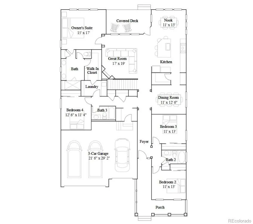 Available NOW! Guilford Estates is a new community with only 28 homesites. Thoughtfully designed with 2,527 square feet of modern living space and an impressive 3-car garage, this home welcomes you with 9′ ceilings and wide plank vinyl flooring throughout the main living areas. At its heart, an open-concept Great Room connects seamlessly with the striking kitchen—showcasing a quartz-topped island and stainless steel appliances. Entertain easily in the formal dining room or on the covered deck. Retreat to the private owner’s suite, complete with a spacious walk-in closet, dual sinks, quartz countertops and a walk-in shower. Secondary bedrooms thoughtfully positioned off the foyer offer flexibility for guests or office space while an additional bedroom down a private hall adds even more versatility. Energy efficiency shines with dual-glazed windows, LED lighting and advanced insulation. Experience Colorado living at its finest in a desirable community conveniently located near dining, shopping, entertainment, and everyday amenities. Includes a Washer & Dryer and Whole House Blinds!
