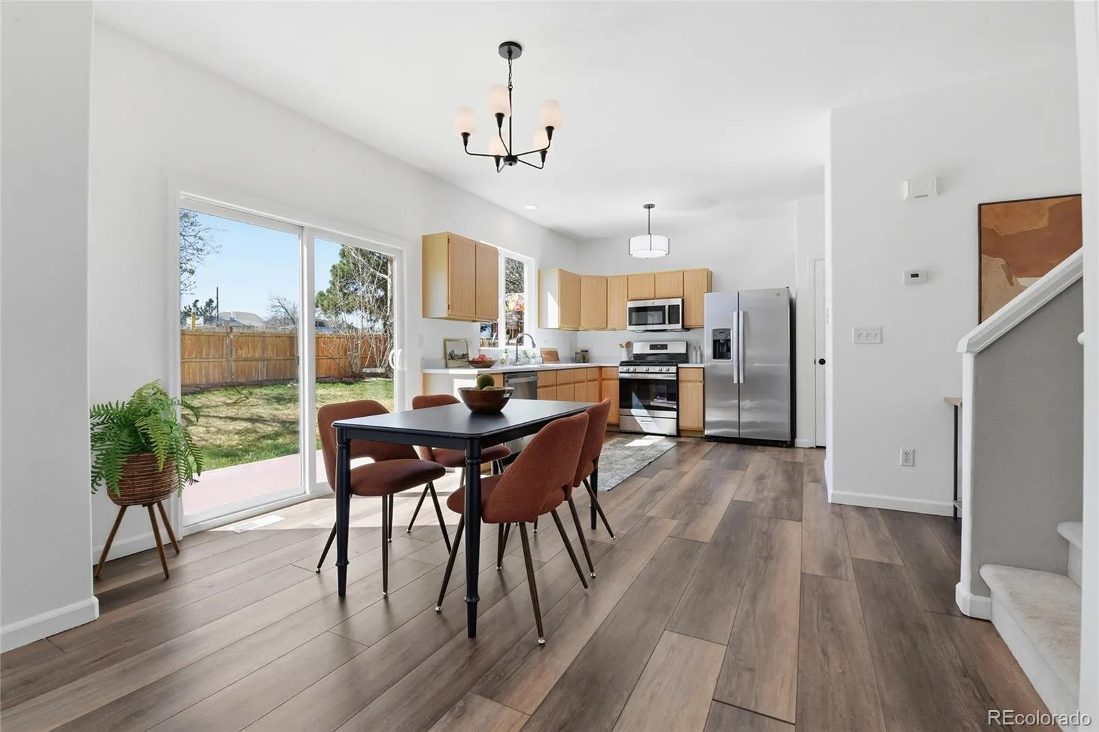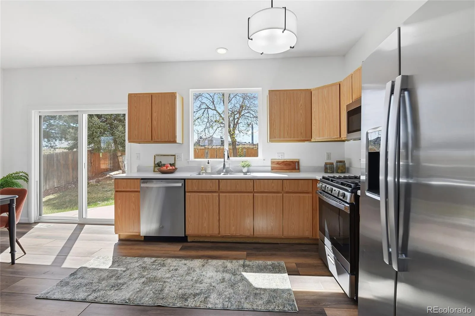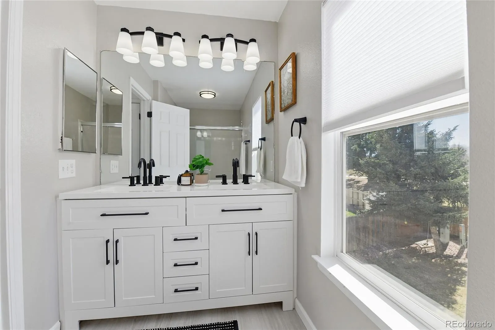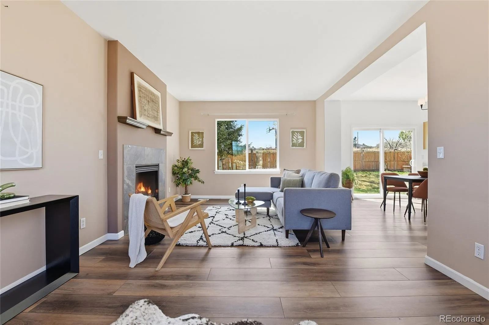 Welcome to this beautifully UPDATED and REFRESHED single-family home located in the desirable Pheasant Creek At The Bear community of Lakewood, Colorado. Move in ready with new appliances, vanities, light fixtures and more! This spacious residence offers 3 bedrooms, 3 bathrooms, encompassing 1,950 finished square feet of well-designed living space. With a two-car garage and a fenced backyard, this property is perfect for families seeking both comfort and convenience in a suburban setting. Upon entering, you’ll be greeted by a foyer featuring dark wood-style floors that set the tone for the rest of the home. The family room is a highlight, boasting a cozy fireplace and plenty of natural light, making it an ideal space for relaxation or entertaining. The open floor plan seamlessly connects the living area to the dining area and a modern kitchen equipped with brand new stainless steel appliances, light countertops, and decorative lighting. The primary bedroom features a vaulted ceiling, an ensuite bathroom with a double vanity, and a spacious walk-in closet, ensuring a private retreat for homeowners. Step outside to enjoy the fenced backyard, which includes a patio area perfect for outdoor gatherings. The community offers suburban charm with sidewalks and easy access to local parks, schools, and neaby amenities including golf, the city of Golden and the nearby foothills for outdoor activities. Living in Pheasant Creek At The Bear means embracing a lifestyle that balances tranquility with convenience, making it an excellent choice for families or anyone looking for a welcoming neighborhood. Easy access to 285 and C470 and close to Bear Creek Lake and Fox Hollow Golf Course or a short drive to Red Rocks!