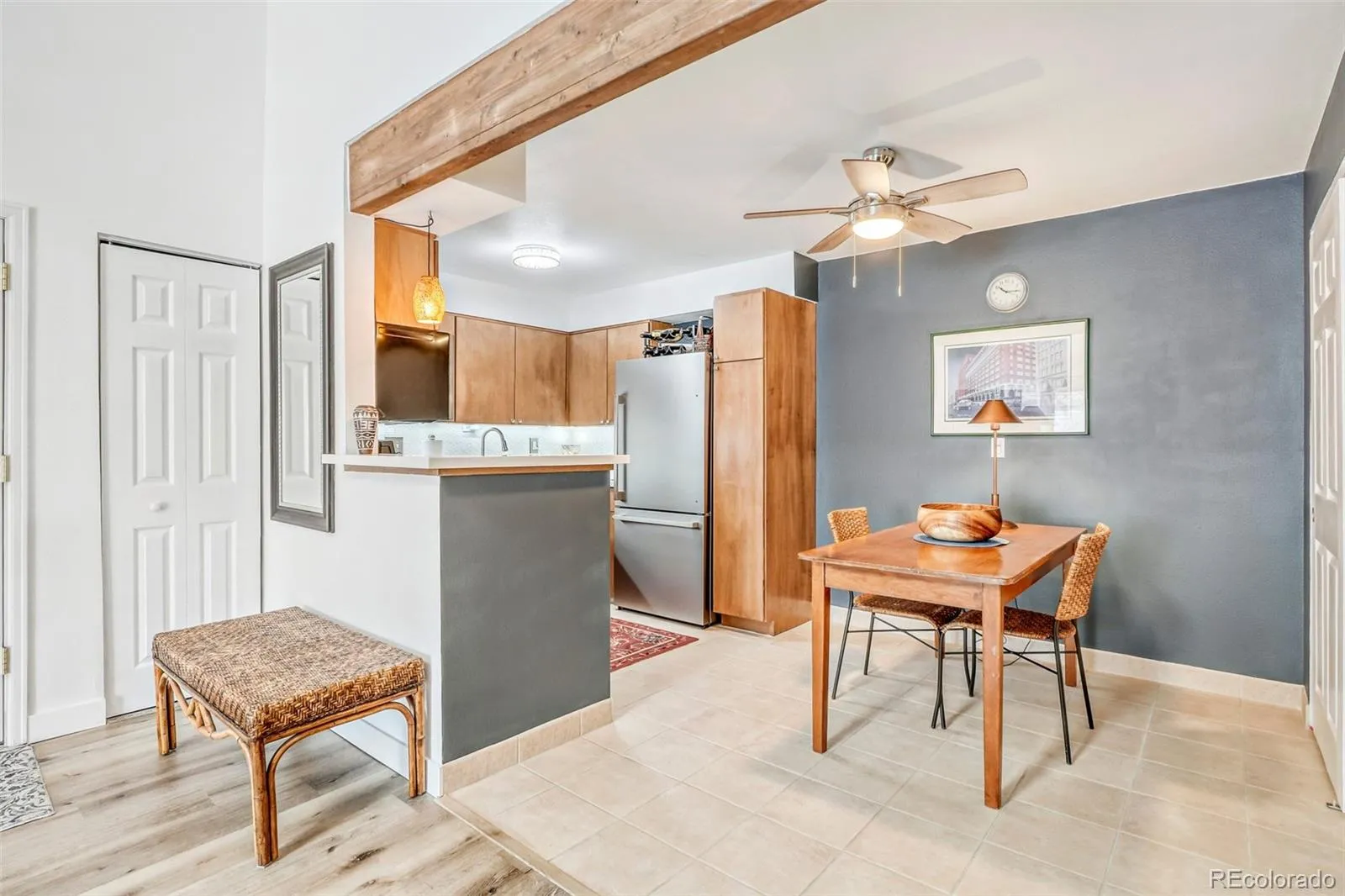 Tasteful, updated, meticulously maintained condo just steps from some of the best outdoor trails in Lakewood with plenty of wildlife. Spacious one bed, one bath with vaulted ceiling in the main living area; enjoy quiet living with no one above you and plenty of natural morning light. Nothing for you to do but move right in. Hugged by luscious ash trees right outside, in summer, you’ll feel as though you’re in a tree house. Take a dip in the pool on those sweltering summer days. Large walk-in closet, oversized bedroom and bathroom, shower freshly tiled. Updated kitchen with all stainless-steel appliances less than 5 years old. Furnace and hot water heater less than 6 years old. Walk to Natural Grocers, and just a 10-minute drive to Red Rocks. One car detached garage with plenty of storage plus one reserved parking space. Snowbird is a friendly, dog-loving community with a resilient and affordable HOA.