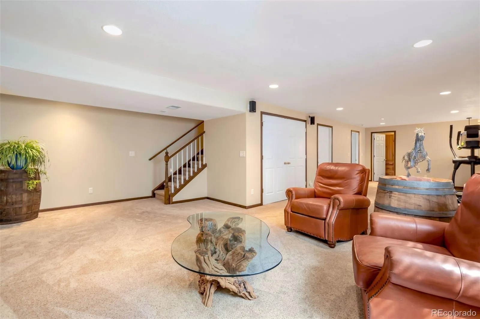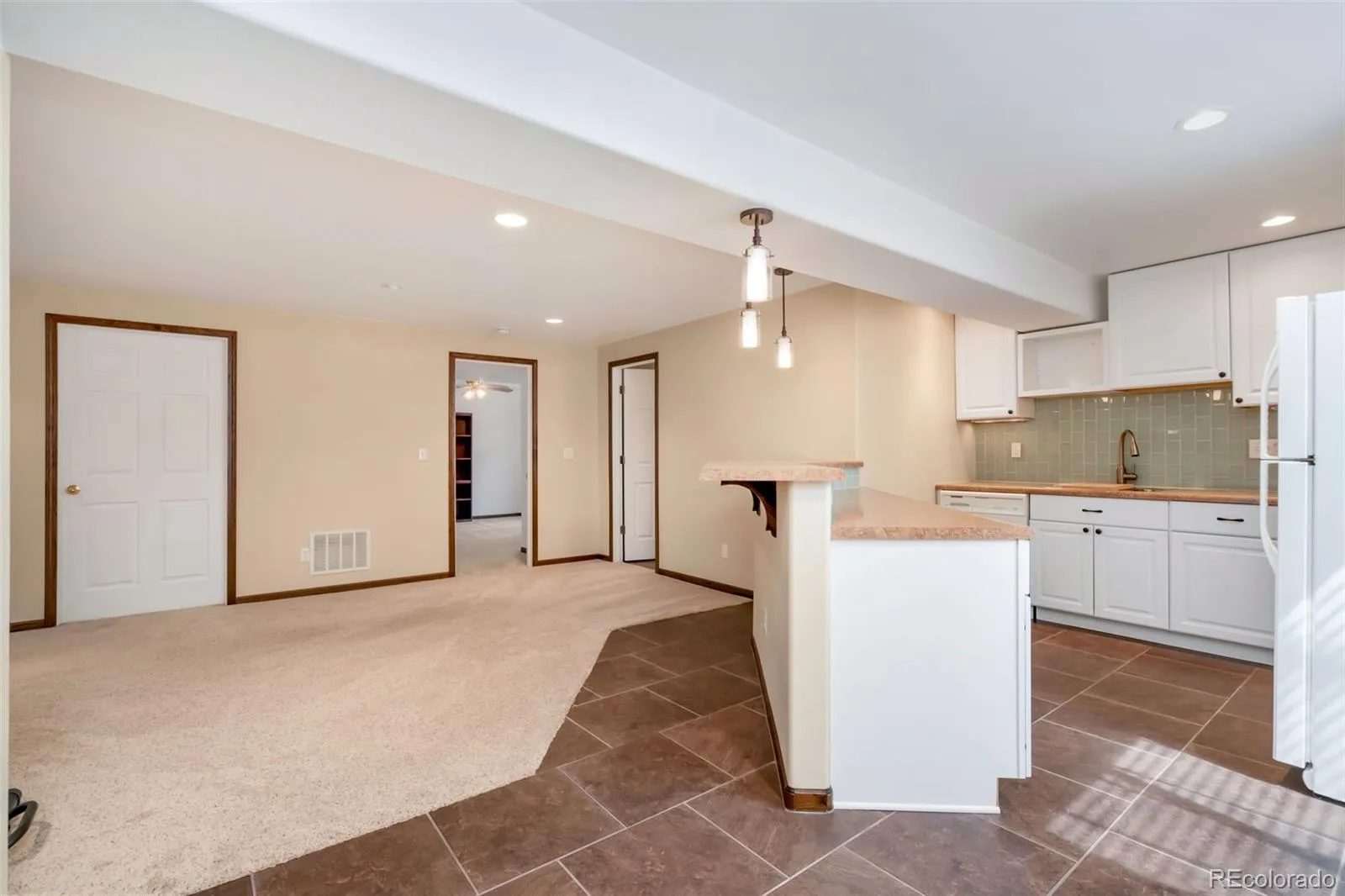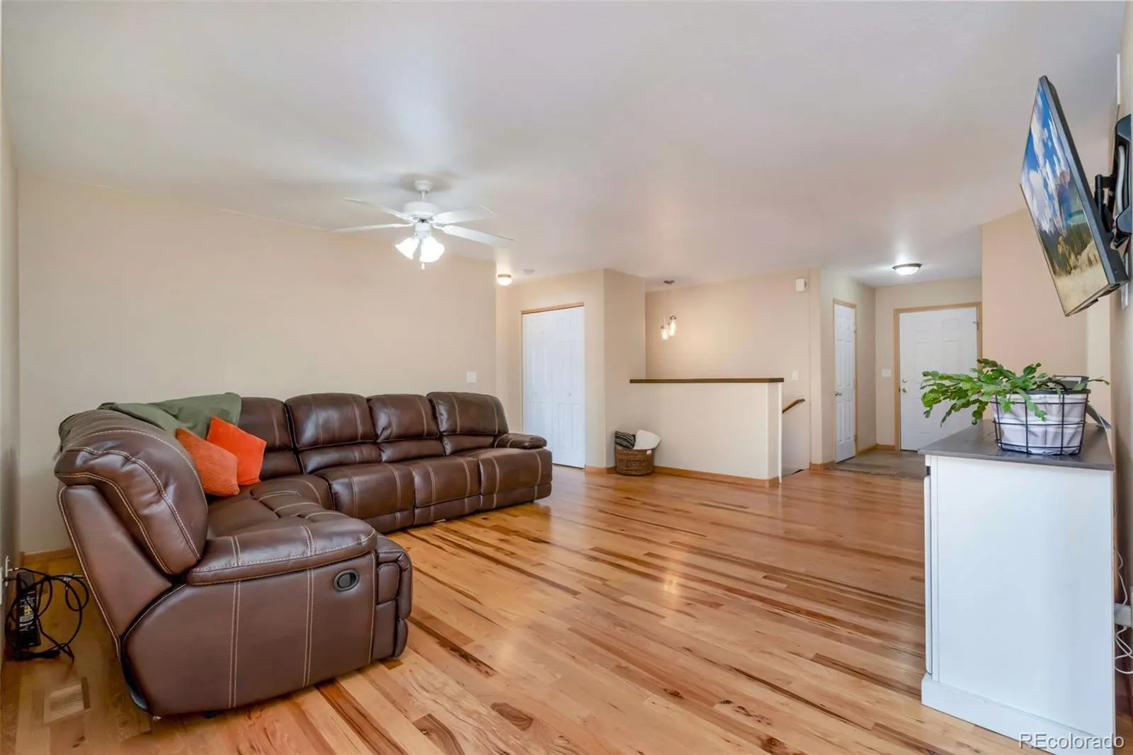 Beautiful ranch home with warm wood floors and a bright, functional layout designed for comfortable living and easy entertaining. A welcoming tile entry opens to a spacious living room and flows into the large kitchen and dining area, where all appliances are included.The main level features a generous primary suite complete with a gorgeous 3/4 bath, walk-in closet, and the TV is included. Two additional bedrooms and a full bathroom complete the main floor.Downstairs, the sun-filled finished basement provides fantastic additional living space, featuring a large family/recreation room (TV and surround sound system included), plus a kitchenette with refrigerator, dishwasher, dining area, and breakfast bar-perfect for entertaining or extended living. The basement also includes a fourth bedroom, beautifully updated full bathroom, laundry area, and additional storage space.Step outside to a fully fenced backyard, complete with an adorable dog house for your four-legged friends. The yard is serviced by non-potable irrigation water provided by the HOA, helping keep your outdoor watering costs affordable.