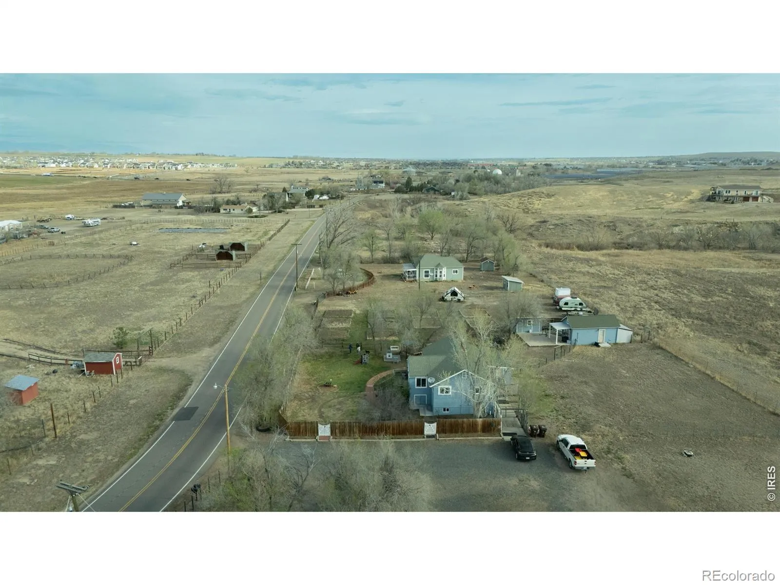 One look at the urban sprawl in the distance will be enough to convince you that this 9-acre gem could be your salvation. It is a multi-purpose, A-zoned property adjacent to County Open Space and the Coal Creek. Two homes exist: one a magical 2-bed, 1-bath home and the other a 3-bed, 2-bath affair with an outbuilding used as a gym. The property is served by a well, with Xcel power and natural gas. The City of Lafayette trailhead located just south and runs for miles and miles through open fields, benefiting from the water in the creek. The land west of Flagg Drive is suited to livestock and gardening, with 10 raised garden beds. It has a small orchard planted with apple, peach, pear and raspberries. There are divided and fenced horse pastures, 4 paddocks with 4 loafing sheds, and riding arena. The property is well treed, enjoys front range views and is a delight year round. Blue house includes reverse osmosis water treatment system and outlet to charge EV vehicle. The Seller has established a private SniffSpot dog park which generates $700-$1100 a month with minimal input. THE TWO RESIDENCES ARE COMBINED INTO ONE UNDER THE MLS ENTRY. BUYERS SHOULD VERIFY DETAILS OF COMBINED SQ FT ETC.