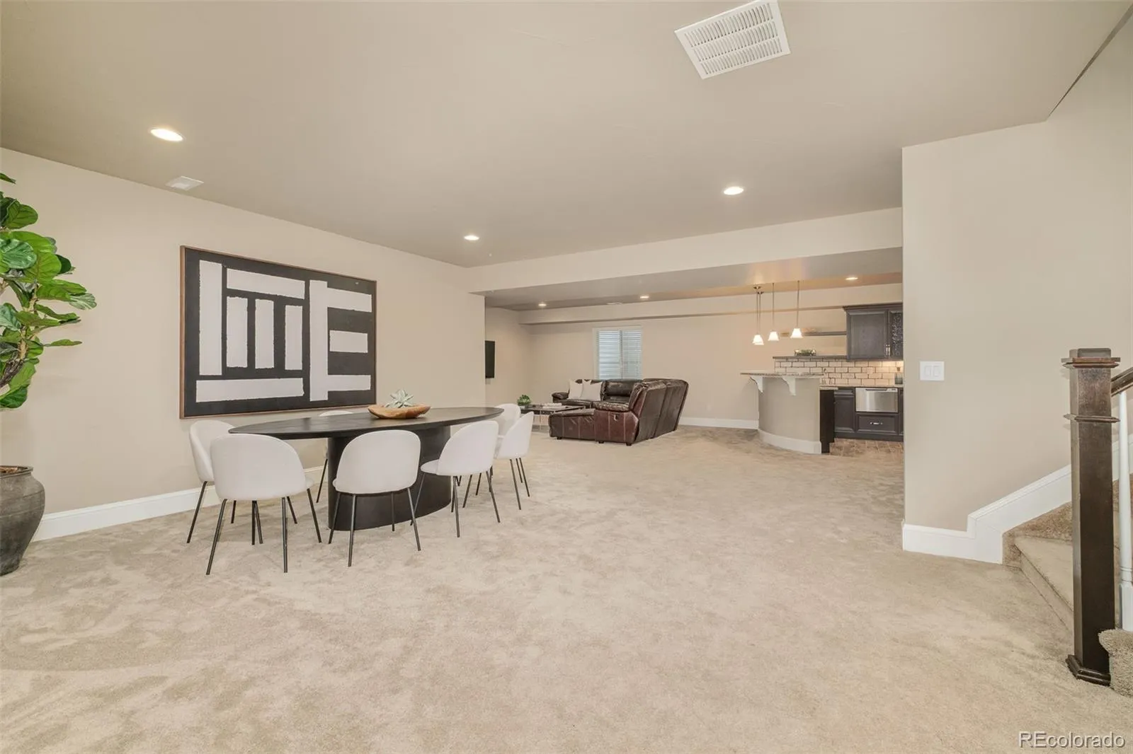 Downstairs, the finished basement is an entertainer’s dream which is ideal for a game room or media space. It seamlessly flows into a wet bar and tasting room, complete with a striking wall of wine racks for your collection. This level also offers a bedroom, bathroom, and a versatile oversized bonus room with built-in cabinetry – perfect for a gym, playroom, or creative space.