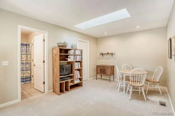 Outstanding one of kind location with open space out your front door. End unit with great natural light, vaulted ceilings, solid natural red oak hardwood floors, and newer double pane windows. New Karastan carpet, upgraded slab granite countertops, new custom lighting and gas stove. Stack stone surround for gas fireplace, Blanco stone kitchen undermount sink , travertine tile backsplash in kitchen, main floor laundry. Highly desirable floor plan with a rare main level primary bedroom, complemented by an adjoining bath with radiant heated porcelain tile floors for year-round comfort. Other features include ceiling fans, LG stainless steel refrigerator, drywalled garage with west exposure for snow melt .Spacious loft area with private spacious bedroom with vaulted ceilings, full bath, skylight plus large storage area. Expanded patio area with electronic awning, covered entry, upgraded insulation, newer furnace and AC, white quality 6 panel doors. vaulted ceilings with transom windows in LR,DR and primary bedroom. This home is positioned on the lot to offer great privacy with no direct view into a neighbor’s living area. Priced to sell as highest sale of this floorplan is $620k. Enjoy this one of kind location in the largest floorplan in the community and easy access to Hi Line Canal, Lowry or Cherry Creek shopping.