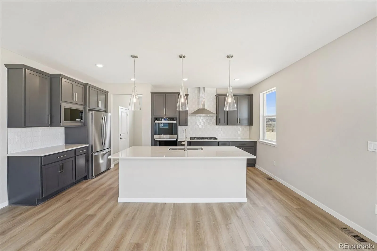 MOVE-IN READY and perfectly situated on a quiet cul-de-sac in the sought-after Looking Glass community! This stunning home showcases a dramatic two-story great room and a flexible, highly desirable layout. Featuring 4 bedrooms upstairs, a main-level bedroom with full bath, and an additional bedroom with bath in the finished basement, this home is ideal for multi-generational living, guests, or work-from-home flexibility. The gourmet kitchen makes a statement with rich charcoal gray cabinetry, quartz countertops, and a modern tile backsplash that extends to the ceiling behind the hood, paired with Whirlpool stainless steel appliances including a gas cooktop, double oven, and built-in microwave. Retreat to the spacious owner’s suite with a spa-like 5-piece bath, freestanding soaking tub, dual vanities, and a large walk-in closet. The finished basement offers a generous recreation room plus private guest space, while the extended covered patio captures sweeping views of Parker’s rolling hills—perfect for relaxing or entertaining. Located just minutes from downtown Parker, I-25, Park Meadows, and DTC—this home delivers the perfect blend of location, layout, and modern design. Schedule your showing today—this one won’t last!