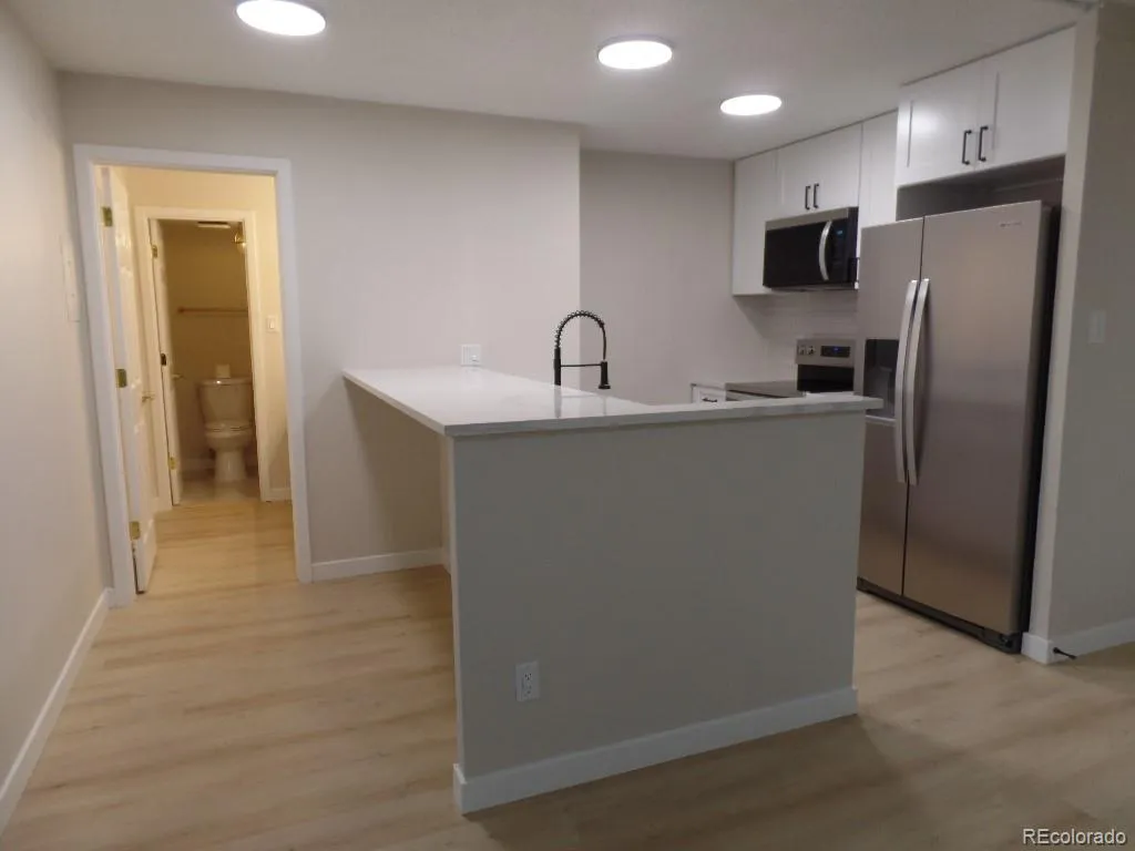 Best condo unit in Plaza De Monaco! I am excited to share a new listing at Plaza De Monaco, conveniently located near the Yale light rail station, trails and James A Bible Park. This prime location offers easy access to downtown Denver and is within walking distance of the Safeway shopping center, restaurants, and entertainment. This beautifully renovated condo features an open living and dining area with luxury vinyl flooring, a wood-burning fireplace, and new lighting with dimmer switches. The space opens onto a spacious balcony perfect for relaxing.