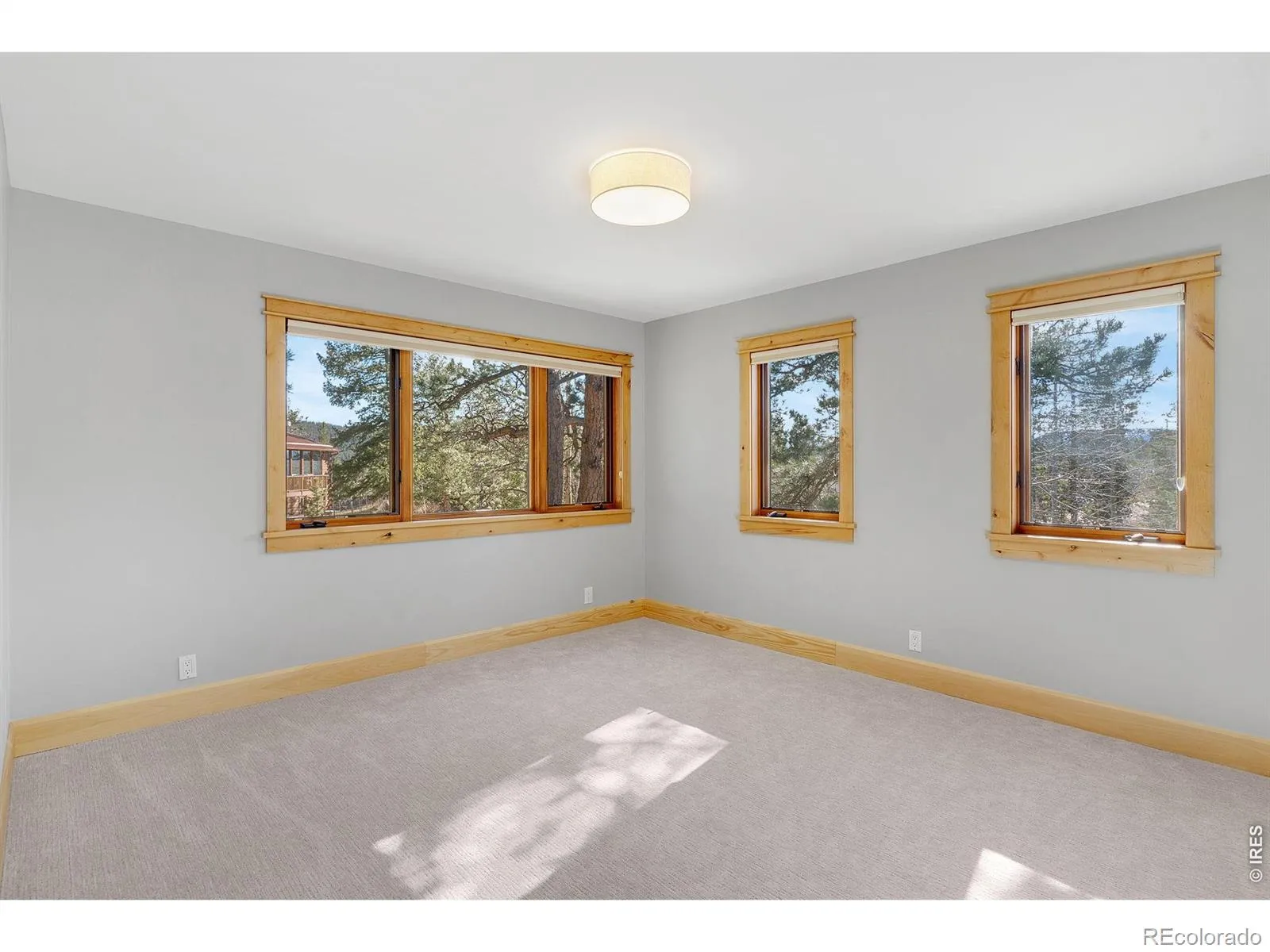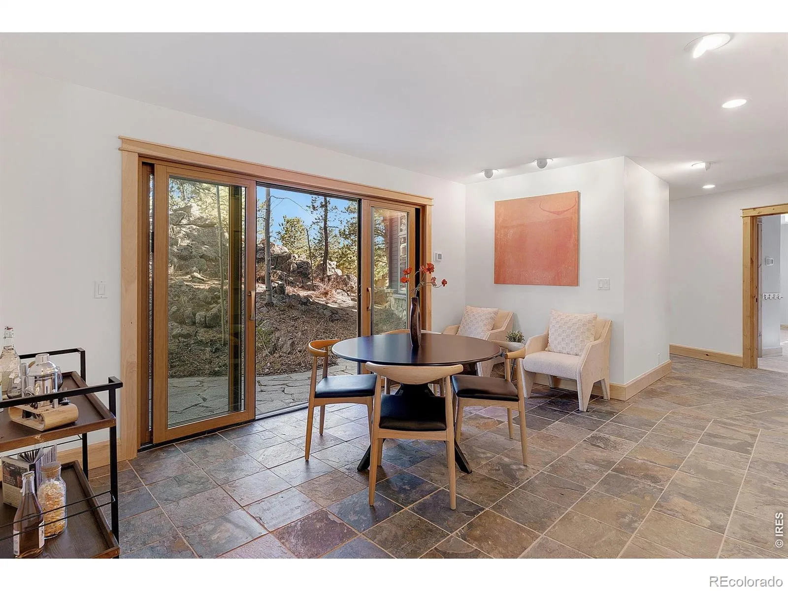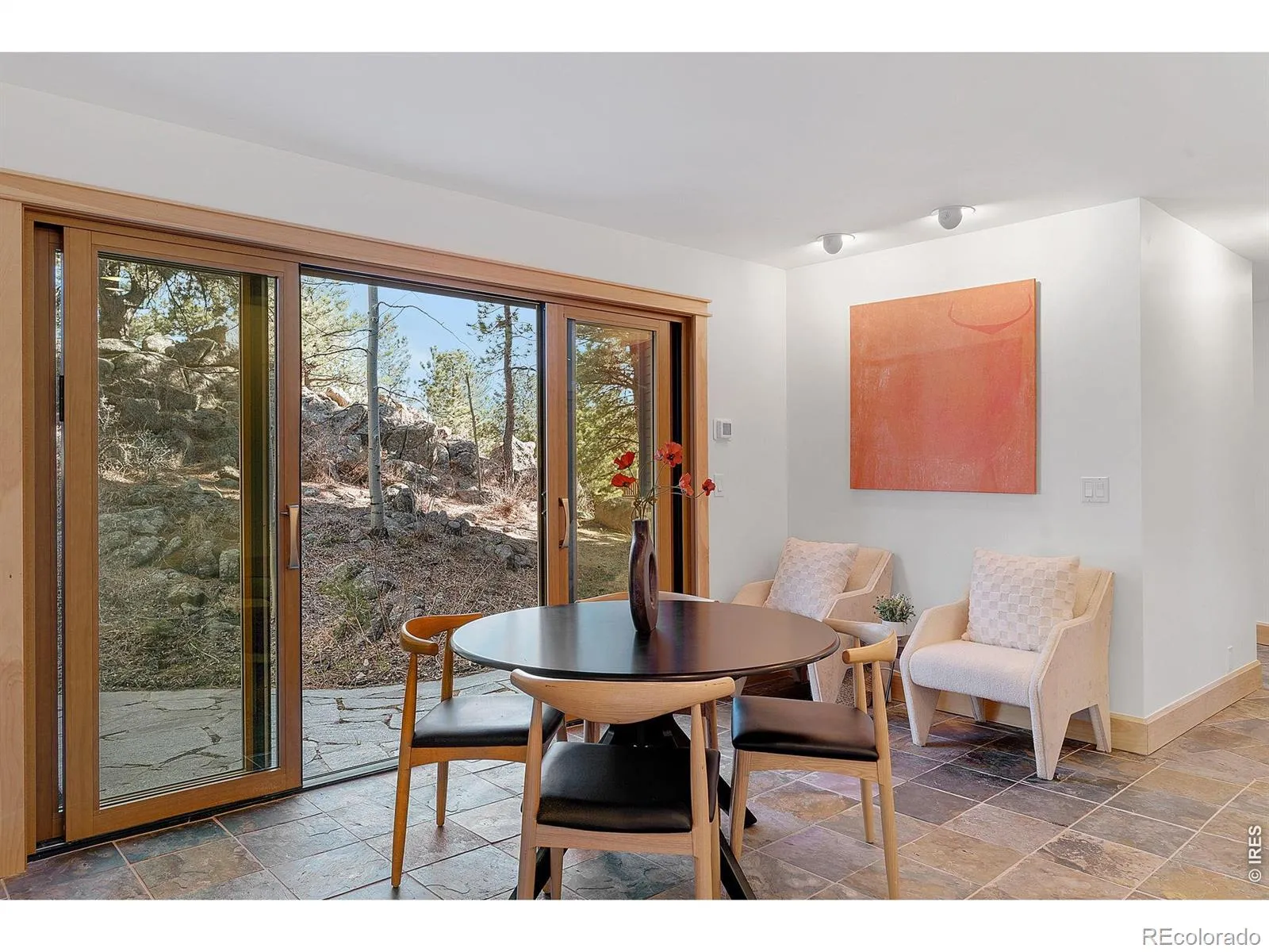Imagine living here. Every detail of this home has been curated with intention. Designed by Gretchen Werner – formerly of Frank Gehry Associates – the space pairs refined finishes with natural warmth. Thoughtfully oriented to capture and shape light throughout the day and built using a crane to preserve the extraordinary rock outcroppings that anchor the home to its natural setting. This sophisticated mountain home combines world class architecture with meticulous craftsmanship. A hand-carved front door bearing a Tibetan symbol for unity and connection sets the tone. Vaulted timber ceilings and exposed tie-rod construction give the great room its character. Heated hickory and slate floors. Expansive windows frame sweeping views of Eldora and the Indian Peaks. The kitchen features new concrete countertops, professional stainless appliances, cherry cabinetry, and custom built-ins that balance beauty with function. The primary suite offers a peaceful restorative atmosphere with beautiful views, a private wood stove, a walk-in closet with locally made custom cabinetry, and a sun drenched ensuite bathroom. The lower level opens to a private patio and offers a family room alongside three bedrooms, two with ensuite baths, all with large closets. A studio adds flexibility for creative pursuits, or a private office. A heated garage ensures ease throughout the seasons and multiple storage rooms off the garage will accommodate all of your gear. Outside, the deck and patio extend the living space into the landscape. 3725 Ridge Road is set on 1.98 acres of gently sloping, usable land with easy access to national forest trails, skiing at Eldora, and the restaurants and shops of Nederland. Approximately 30 minutes all that Boulder has to offer.