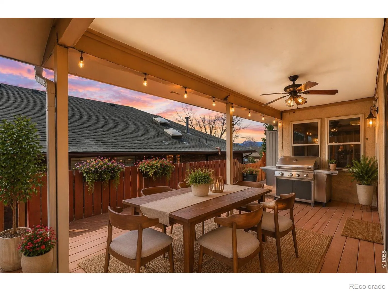 Beautifully refreshed patio home in the highly sought-after Longmont Estates neighborhood, just steps from the picturesque Twin Peaks Golf Course. With 2,410 finished sq. ft., 4 bedrooms, 3 bathrooms, a fully finished basement, and no HOA, this home offers an ideal blend of main-level living, flexible finished space, and low-maintenance comfort. The main level features a spacious living room with engineered hardwood floors and a stone-tiled wood-burning fireplace, a kitchen with slab granite countertops, a dining area, main-level laundry, and a primary suite with an attached bath and sliding glass doors to the backyard. A second main-level bedroom works beautifully as an office or guest room. Off the kitchen, a sliding glass door opens to a covered patio with durable Trex decking and a landscaped backyard. The finished basement adds a large family room, two additional bedrooms, and a full bath with custom herringbone tile flooring and a custom tile shower. Recent updates include new interior paint throughout, a new hot water heater in 2026, and a 3-year-old roof with high-end impact-resistant shingles. The attached two-car garage provides ample parking and storage, while the low-maintenance yard makes it easy to enjoy this exceptional golf-course-adjacent location. Enjoy Flatirons views from the front door and back deck, plus incredible proximity to Twin Peaks Golf Course amenities. Located just 1/2 block from the Twin Peaks clubhouse, this public course offers 18 holes, a full driving range, practice putting and chipping greens, PGA instruction, a restaurant/bar, and a public patio, with the clubhouse also available to rent for large private events. This is a standout opportunity in west Longmont.