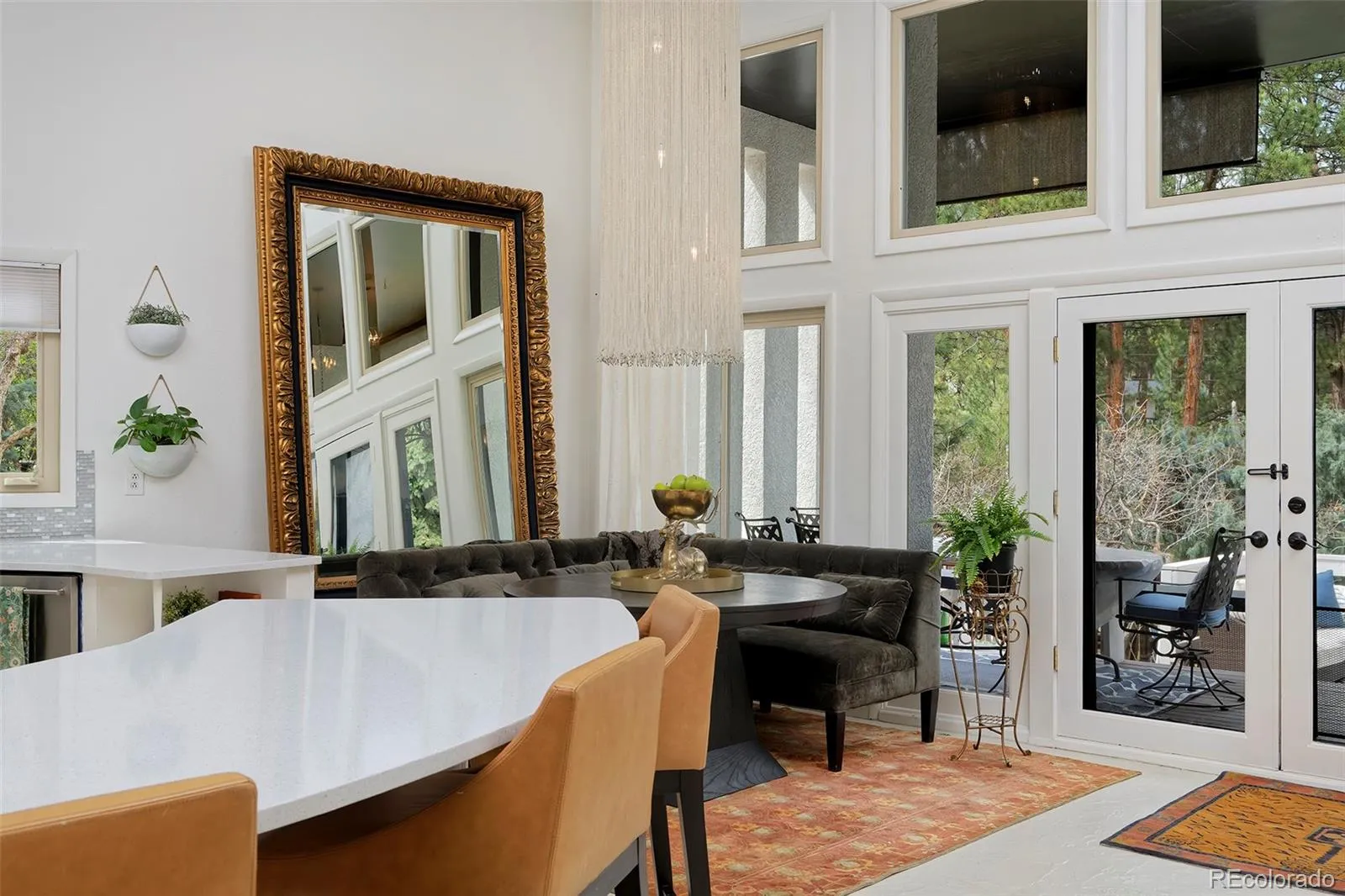 An A.D. photographer’s words say it best. This exceptional 3-bed/3-bath modern ranch with timeless architecture, sits on .86 usable acre in Perry Park—over 2,000 sq ft that lives large without wasted space or high costs. Soaring 15’ ceilings, a wall of windows, and an open layout fill the home with an abundance of light and seamless indoor-outdoor flow.