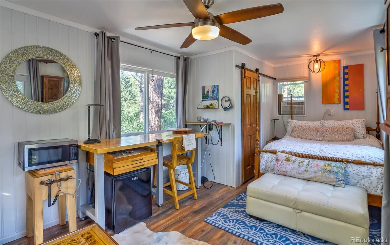 Additionally, a detached tiny-house studio/office, and an authentic trapper-cabin/bunkhouse, grace the grounds, an outdoor shower, and an artistic outhouse add rare character and flexible space. The lower level features a private-entry suite with bath and laundry—ideal for guests, in-laws, or rental potential.
