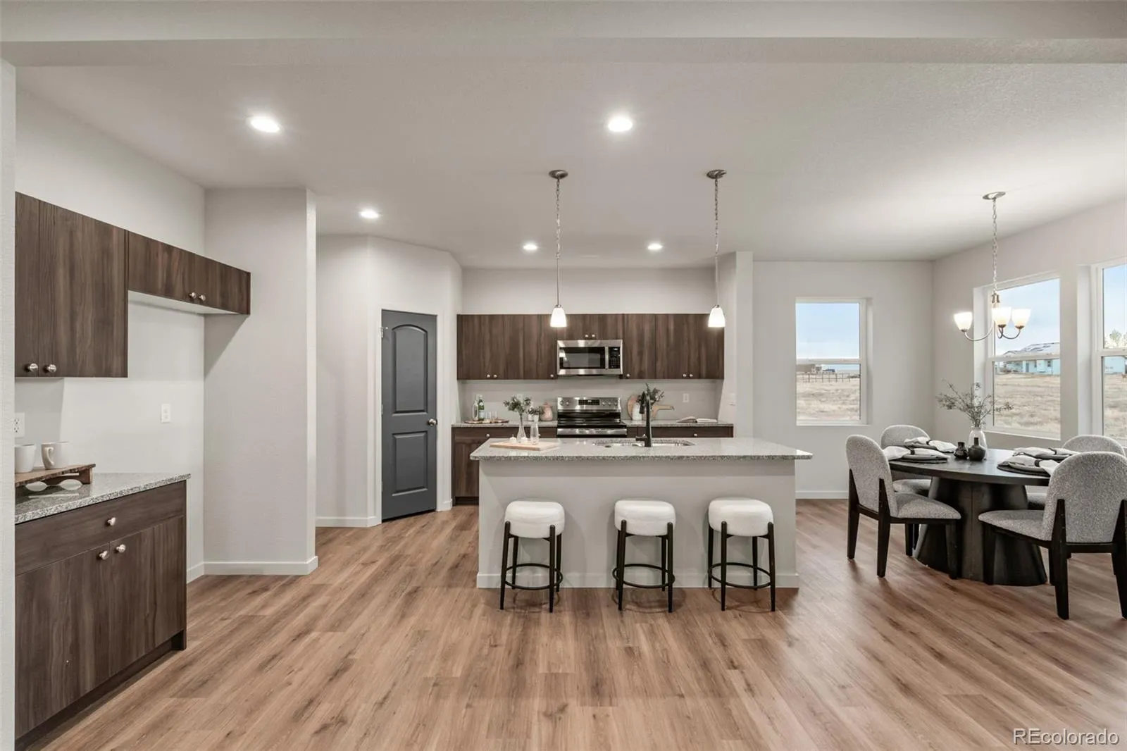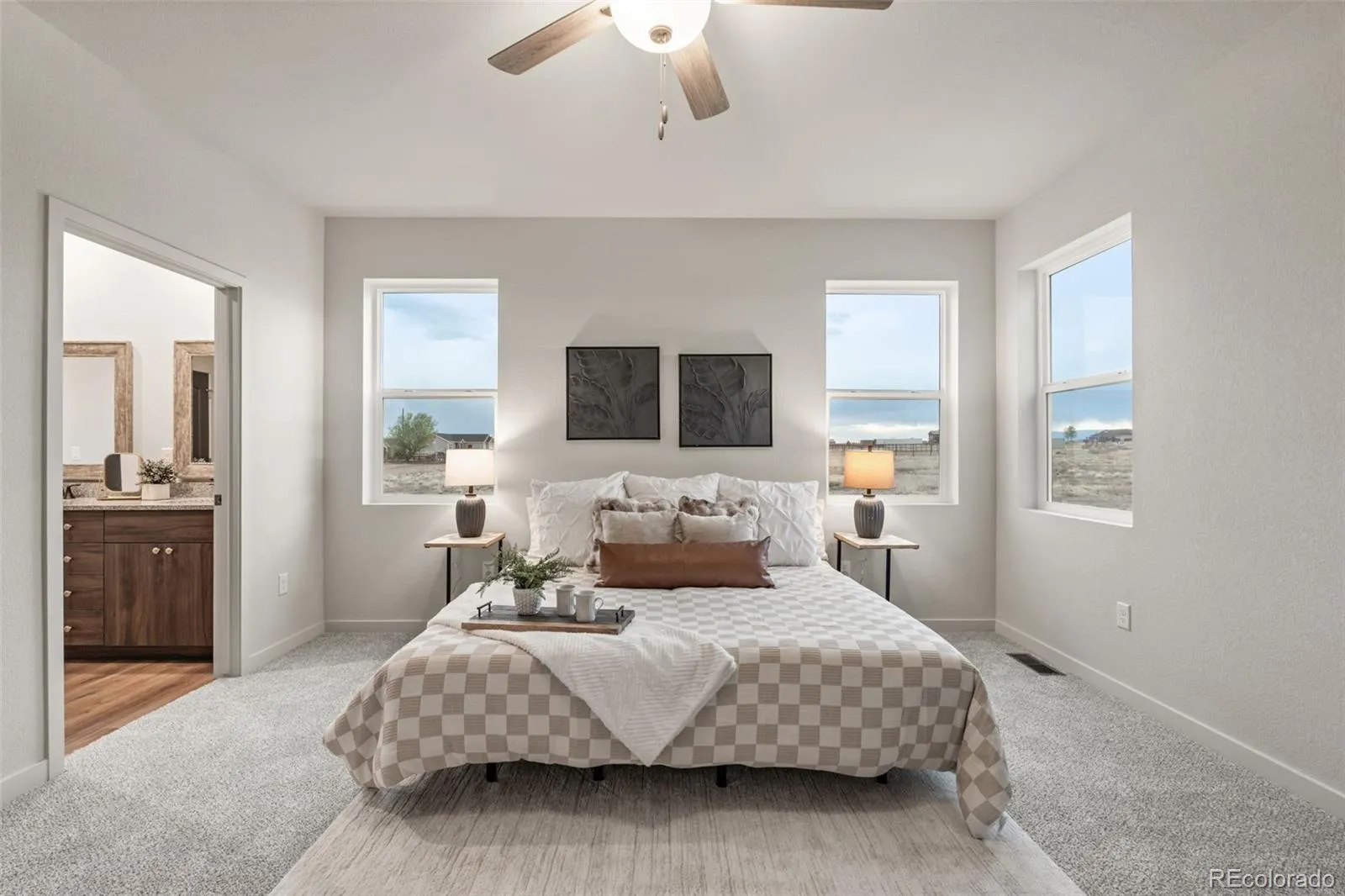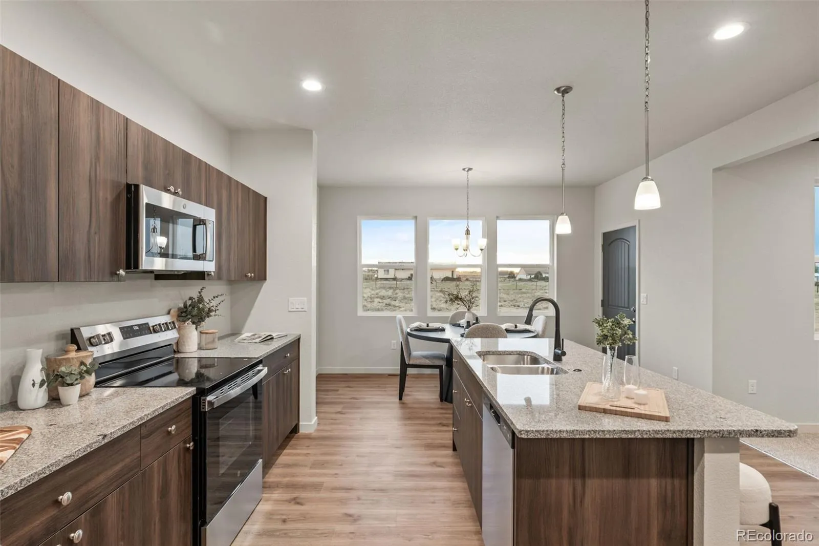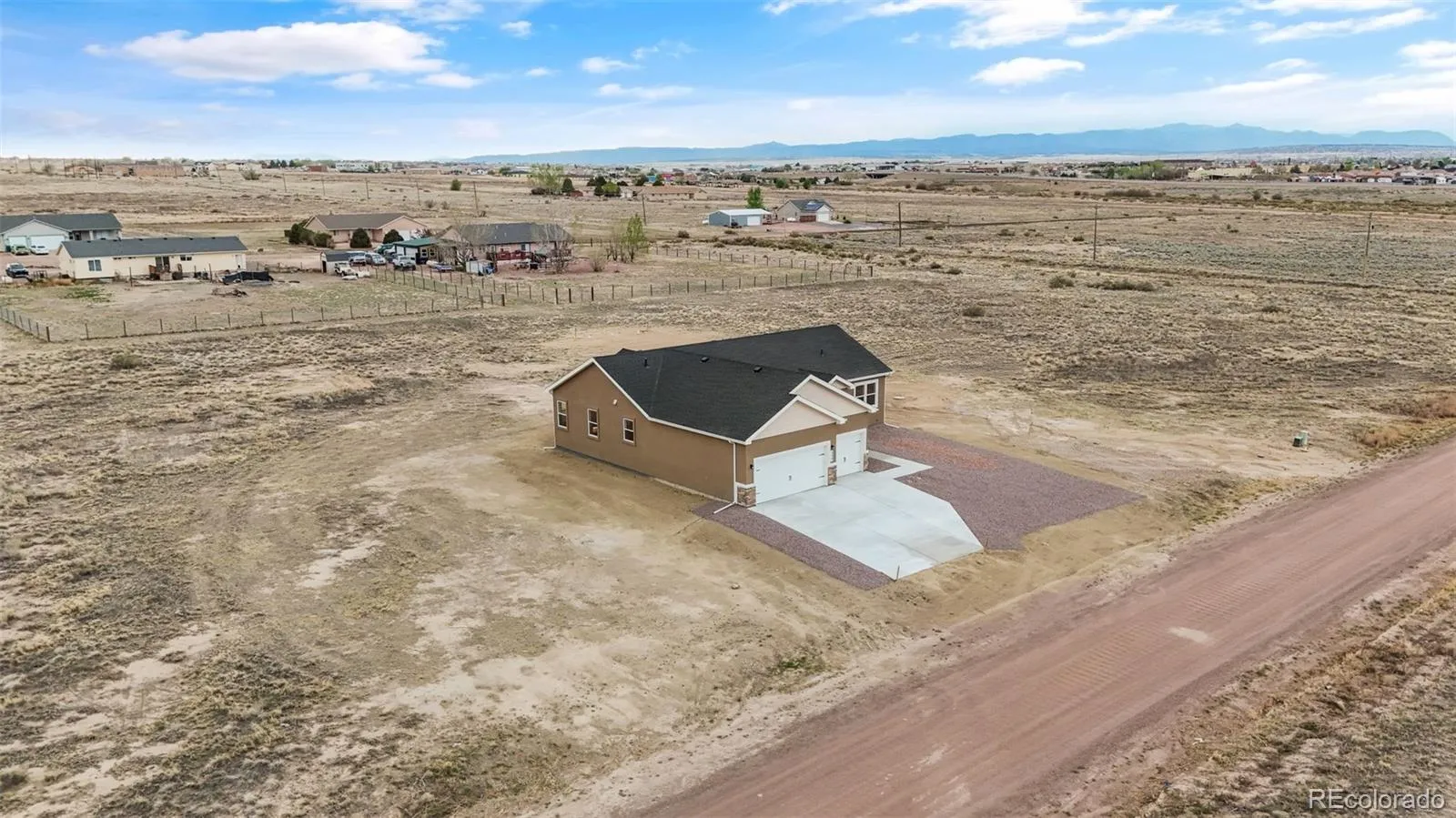 Experience True Colorado Ranch Living with Breathtaking Pikes Peak Views. This is the dream home you’ve been waiting for! Nestled on just over an 1 acre- this newly constructed Westover Homes Whisper ranch plan delivers wide-open space, panoramic mountain views, and modern comfort built to last. Step inside to 1,904 thoughtfully designed square feet featuring 9-foot ceilings and a bright open-concept layout that seamlessly connects the living room, kitchen, breakfast nook and a separate dining area or flex space — ideal for entertaining, everyday living, and taking in those incredible Colorado sunsets. The heart of the home is the spacious kitchen, complete with granite countertops, a large island, stainless steel GE appliances, soft-close cabinetry, and a large walk-in pantry. Durable luxury vinyl flooring flows through the dining and kitchen areas, while plush carpet adds comfort in the bedrooms and living space. The private primary suite is a true retreat, offering a luxurious five-piece bath with a spa-like soaking tub, separate walk-in shower, dual granite vanities, and plenty of space to unwind. Two additional bedrooms and a full bath provide room for family, guests, or a home office. A dedicated mudroom/laundry room adds everyday functionality. This fully electric, energy-efficient home includes central A/C, a 200-amp panel, and modern systems designed to help lower utility costs while keeping you comfortable year-round. Outside, the lifestyle really shines. The 3-car garage offers plenty of space for vehicles, storage, or hobbies. The xeriscape front yard plus the classic stucco exterior provide timeless curb appeal with low maintenance, while the expansive lot gives you endless opportunities. This property is a few minutes from I-25 and less than 30 minutes from Colorado Springs, and 10 minutes from Pueblo, Colorado. Prime location-Modern Comfort-Unmatched Views-This is Colorado living at its finest! Schedule your showing today!