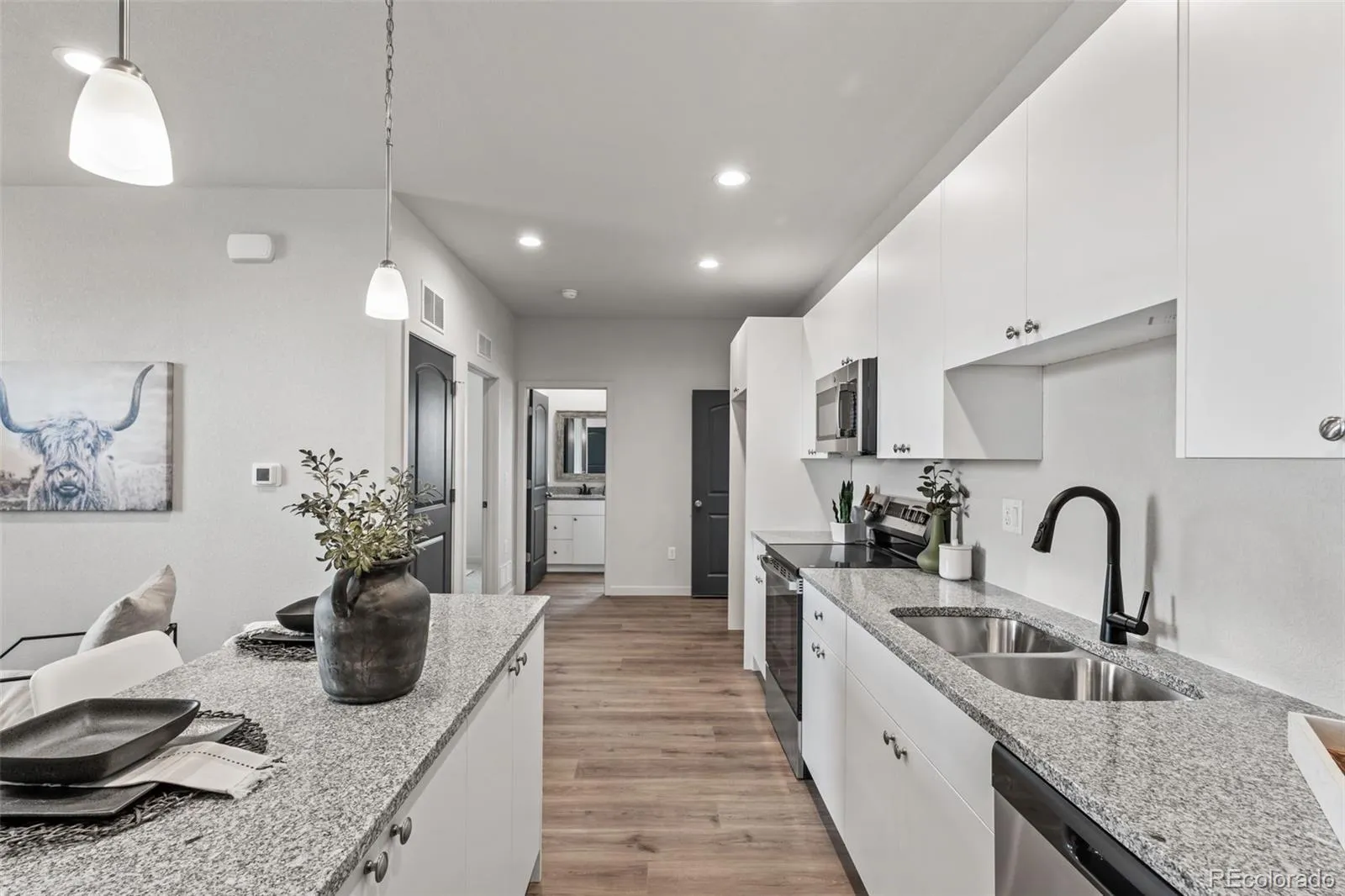 Welcome to the Spruce Mountain Westover Homes floor plan, a masterfully designed multi-generational ranch-style home in Pueblo West offering the unique “2-in-1” home on 1.09 acre! This thoughtfully crafted single-level residence features a spacious 3-bedroom, 2-bath main home complemented by a fully self-contained attached ADU, complete with its own private entrance, 4th bedroom, 3rd full-bath, 2nd laundry room, and a dedicated 1-car garage—perfect for short or long-term rental usage or hosting extended family! Both main living areas showcases an open-concept design with a bright great room and chef-inspired kitchens featuring large granite islands, stainless steel GE appliances, soft-close cabinetry, and pantries seamlessly flowing into the dining and living spaces for effortless entertaining. Durable luxury vinyl plank flooring extends through the kitchen, living and dining areas, while plush carpeting adds warmth and comfort to the bedrooms. The primary suite offers a walk-in closet and a private retreat, while additional bedrooms provide ample space for family or guests. This fully electric, energy-efficient home includes central A/C, a 200-amp panel, and modern systems designed to enhance comfort while helping reduce utility costs year-round. A 1.09-acre lot, spacious 2-car garage for the main home, plus the separate 1-car garage for the ADU, ensures abundant storage and parking! Blending luxury, flexibility, and independence, this exceptional property is perfectly suited for today’s evolving lifestyle needs. This property is a few minutes from I-25 and less than 30 minutes from Colorado Springs, and 10 minutes from Pueblo, Colorado. Prime location-Modern Comfort-Unmatched Views-This is Colorado living at its finest! Schedule your showing today!