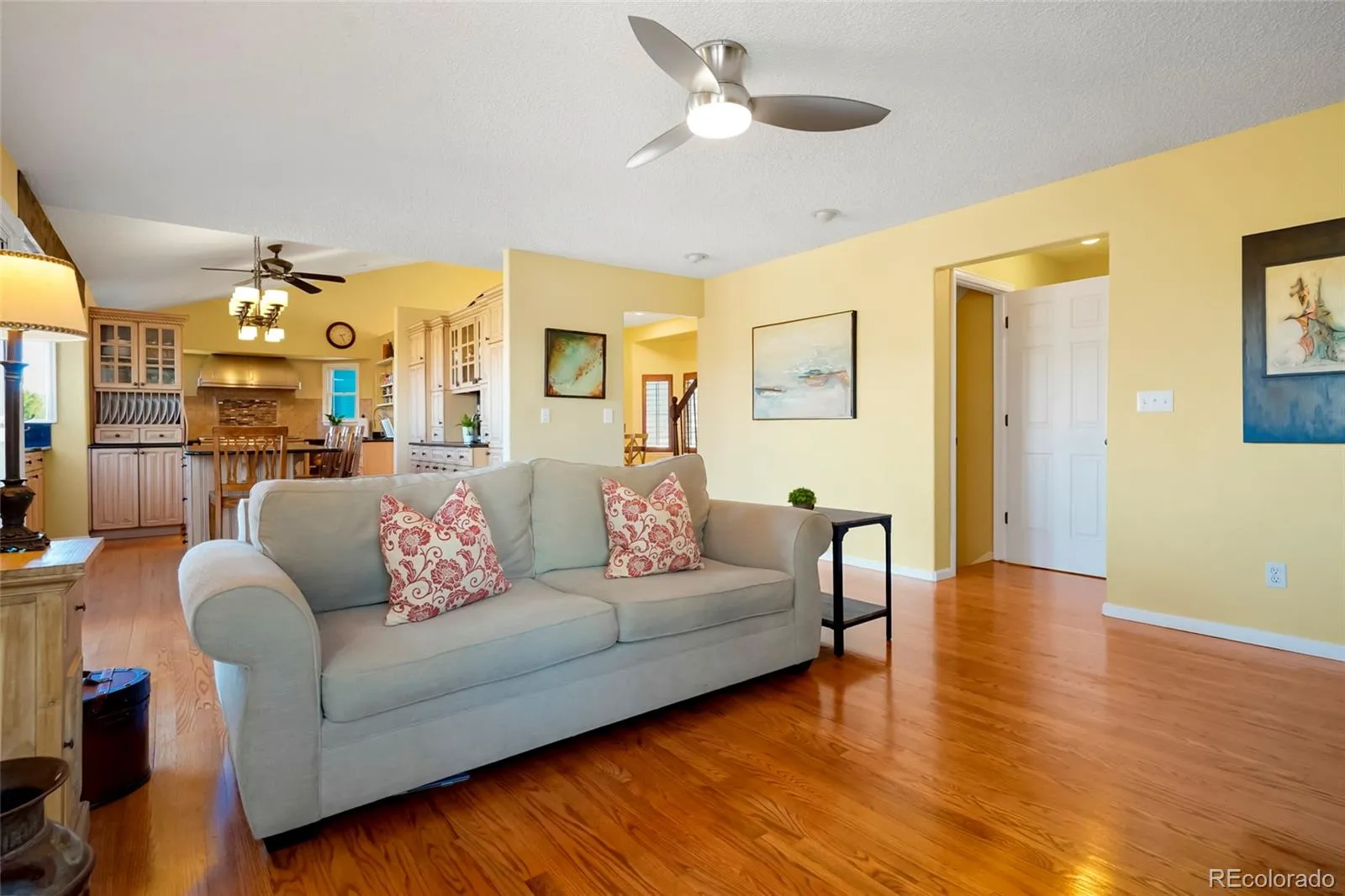 Experience elevated living in this exquisitely maintained two-story residence, offering 4 beds, 4 baths, & a beautifully finished basement, all perfectly positioned to back to tranquil green space & scenic trails. Upon entering, you’re greeted by soaring ceilings, abundant natural light, & a sophisticated neutral palette that creates a bright yet inviting ambiance. Rich wood flooring spans the main level, complemented by plush new carpeting. Designed for both entertaining & everyday living, the formal dining room features an updated designer light fixture & flows seamlessly into the expansive chef’s kitchen. This culinary space is thoughtfully designed w/ multiple prep & sink areas, an upgraded gas range, striking mosaic tile backsplash, & an abundance of custom cabinetry. The oversized granite island w/ breakfast bar & adjacent dining area creates the perfect gathering space. The family room is a comfortable retreat, highlighted by large windows, custom window treatments, built-in shelving, & a electric fireplace with a beautifully crafted tile surround & custom mantel. The upper level offers 3 spacious beds & 2 baths, including a luxurious primary suite featuring elevated ceilings, a ceiling fan, & a ensuite w/ dual vanities, a glass-enclosed shower, & a generous walk-in closet. The finished basement extends the home’s versatility w/ a large bonus living area & a private junior suite complete w/ its own full bath, ideal for guests, multigenerational living, or a refined private retreat. Outdoors, the landscaped backyard opens to peaceful greenbelt views & trails, offering both privacy & connection to nature. Enjoy the expansive Trex deck, tranquil water feature, mature plantings, & a producing peach tree. Yard and garden have irrigation. A full sprinkler system ensures effortless upkeep. With exceptional curb appeal & access to Highlands Ranch’s premier recreation centers, shopping, dining, & amenities.