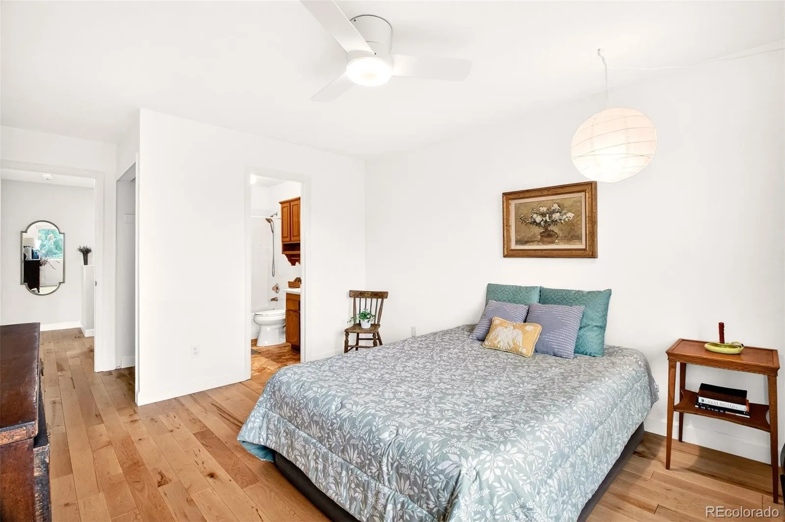 Stunning 3 bedroom, 4 bath two story stucco home with breathtaking views of Pikes Peak, Garden of the Gods and sparkling city lights. As you enter from the private front courtyard you will notice the abundance of natural sunlight, new rainfall glass front door, new Titan martini security door, and new 30-year engineered maple hardwood floors (with sound deadening underlayment) throughout the main and upper levels. The bright living room features a large picture window and newly tiled fireplace and hearth. Walk out to the trex deck from the dining room and enjoy the privacy that a curtain of large fir trees provide. The large galley kitchen has plenty of cabinets, double sinks, and a pantry with pull out drawers. A 6×8 eating nook as you enter from the 2 car garage, laundry area with shelving, and a newly renovated half bath complete the main level. Upstairs offers an oversized primary suite with access to another private trex deck to enjoy those gorgeous views, a 5×6 walk-in closet, additional closet, and an attached full bath. The upstairs second bedroom also has an adjoining full bath. The walkout basement features a large family room with additional storage closets, a wet bar with room to add a small refrigerator, an oversized third bedroom and a 3/4 bath. The community abuts the Sunset Mesa Open Space with trails, beautiful views of the city, and stunning rock formations. Easy access to dining, shopping, schools, parks, military bases, and all that Colorado Springs has to offer. Relax and enjoy carefree HOA living in a lovely landscaped community. External building maintenance is covered by the HOA as well as lawn service, snow removal, and garbage pickup.