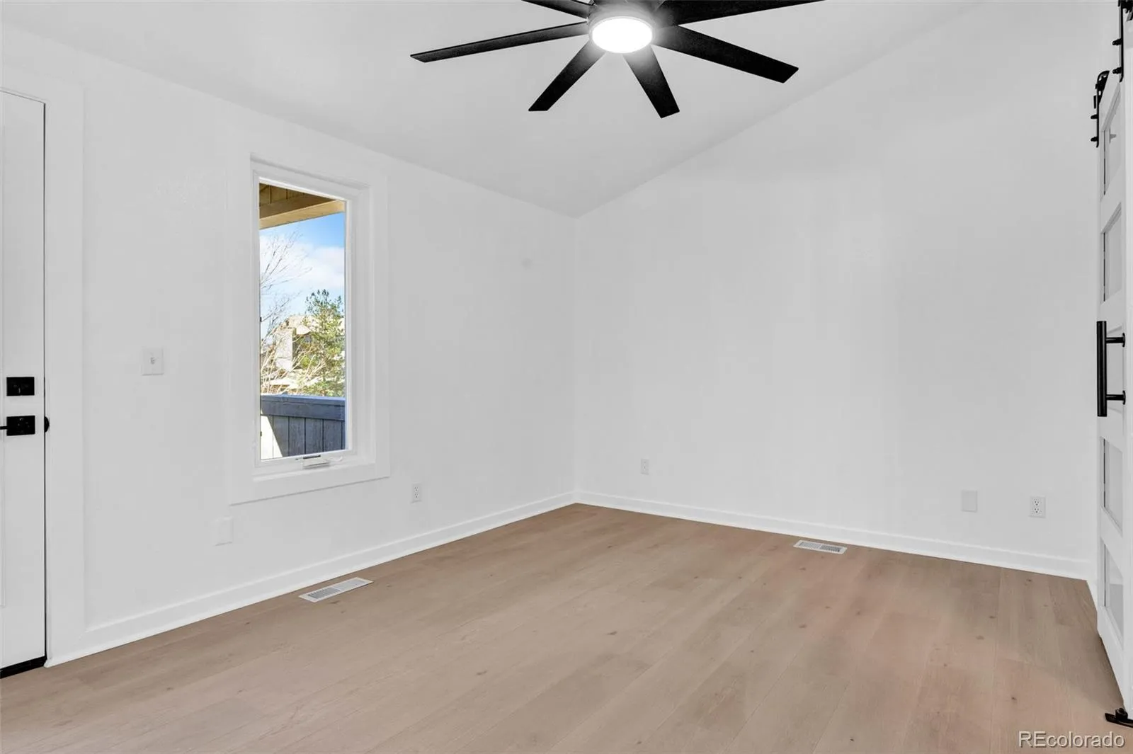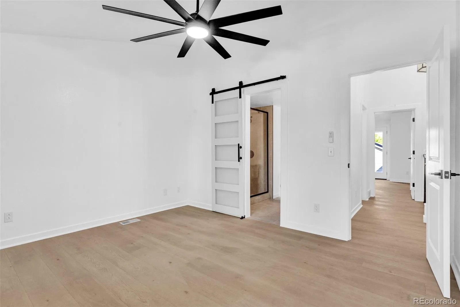 Upstairs, both bedrooms feature vaulted ceilings, spacious closets, and private patio access—ideal for enjoying peaceful mornings or evening relaxation. Bathrooms have been fully remodeled with designer tile, custom shower niches, and elegant stone vanities, while Kohler fixtures are featured throughout the home. Stylish barn doors add a unique and modern touch.