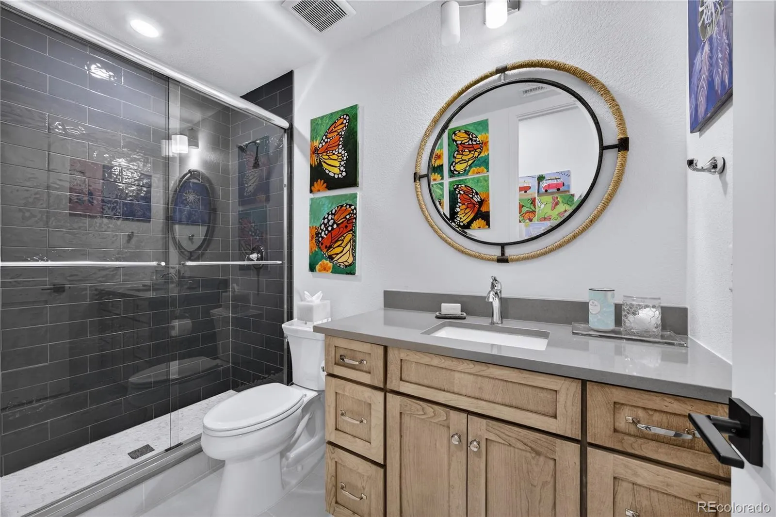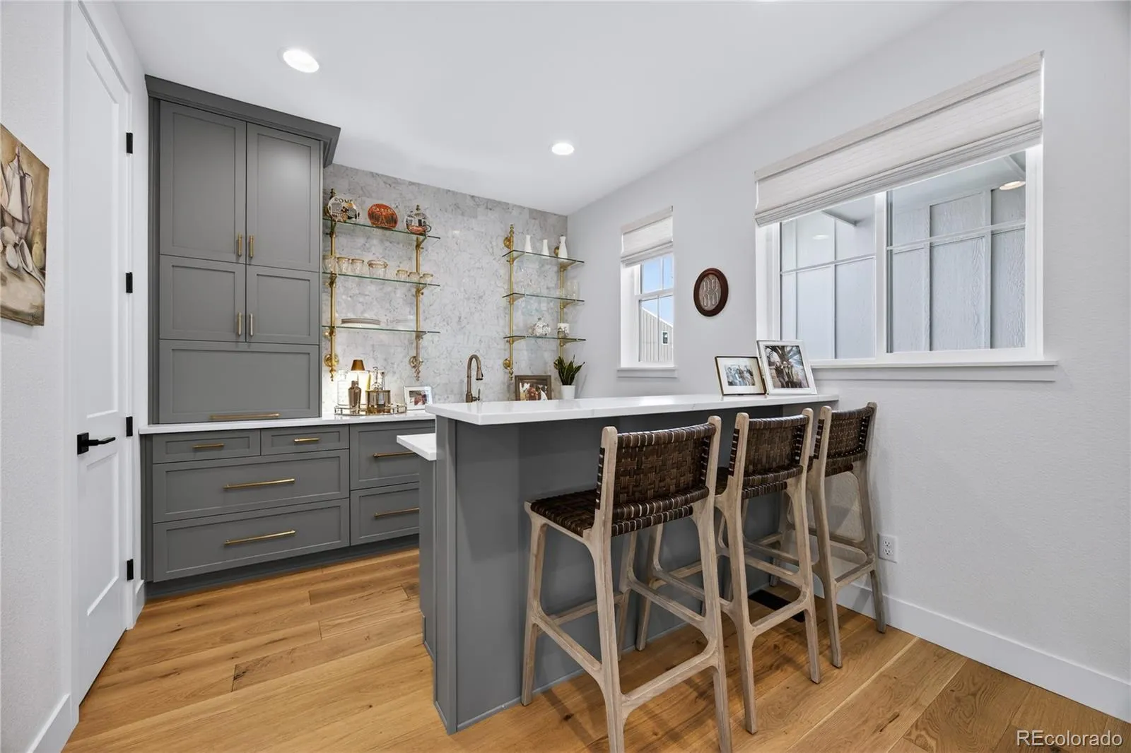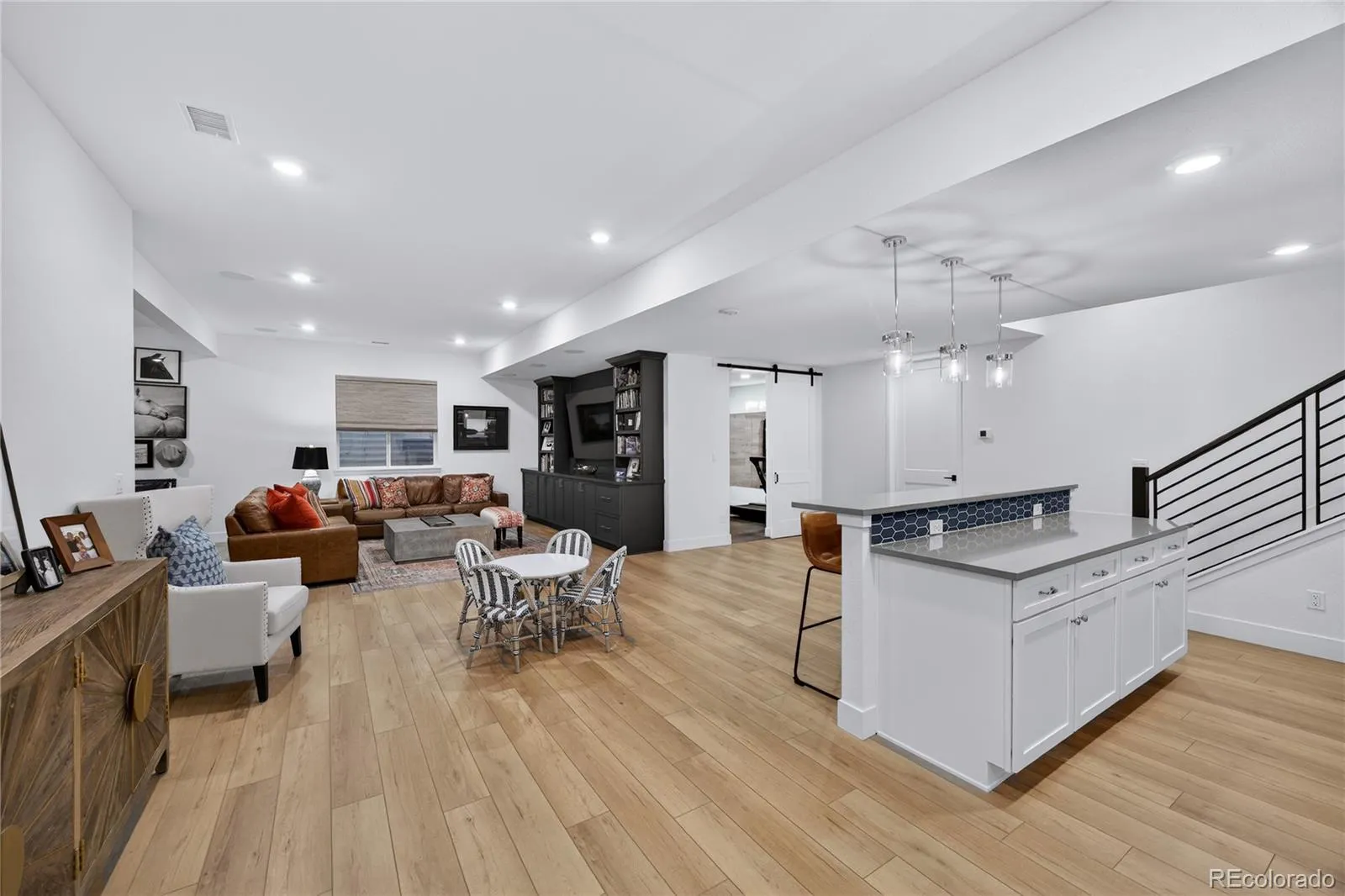 Welcome to this exceptional 6-bedroom, 6-bathroom multigenerational home offering 6,965 square feet of thoughtfully designed living space, elevated with luxurious upgrades throughout. Designed for both everyday living and effortless entertaining, this home seamlessly blends functionality with high-end style. A standout feature is the private, fully equipped multigenerational suite with mountain views complete with its own entrance, attached garage, spacious living room, kitchenette with dishwasher, refrigerator and freezer, dedicated laundry, and an expansive custom closet. This beautifully designed space offers comfort, privacy, and true independence. The main living areas are rich with custom details, including designer tile, specialty wallpaper, and extensive built-ins. The chef’s kitchen is equipped with double dishwashers, while a convenient bar area off the garage features a sink, ice maker, and water dispenser, perfect for entertaining. Upstairs, the primary suite is a true retreat with motorized shades and a spa-inspired bathroom featuring fully tiled walls. Secondary bedrooms offer walk-in closets and well-appointed bathrooms, including a private en-suite and a pass through layout with dual sinks. A light-filled office with beautiful mountain views and a walk-in closet provides flexibility as an additional bedroom. The upstairs laundry room connects directly to the primary suite for added convenience. The finished basement expands the living space with a gym, additional bedroom and bathroom, and a full wet bar complete with sink, dishwasher, and beverage refrigerator. Additional highlights include custom built-in entertainment center, luxury vinyl plank flooring, a large storage room, two tankless water heaters, second furnace, and radon mitigation system. This is a rare opportunity to own a truly one-of-a-kind home that perfectly balances luxury, versatility, and thoughtful design.