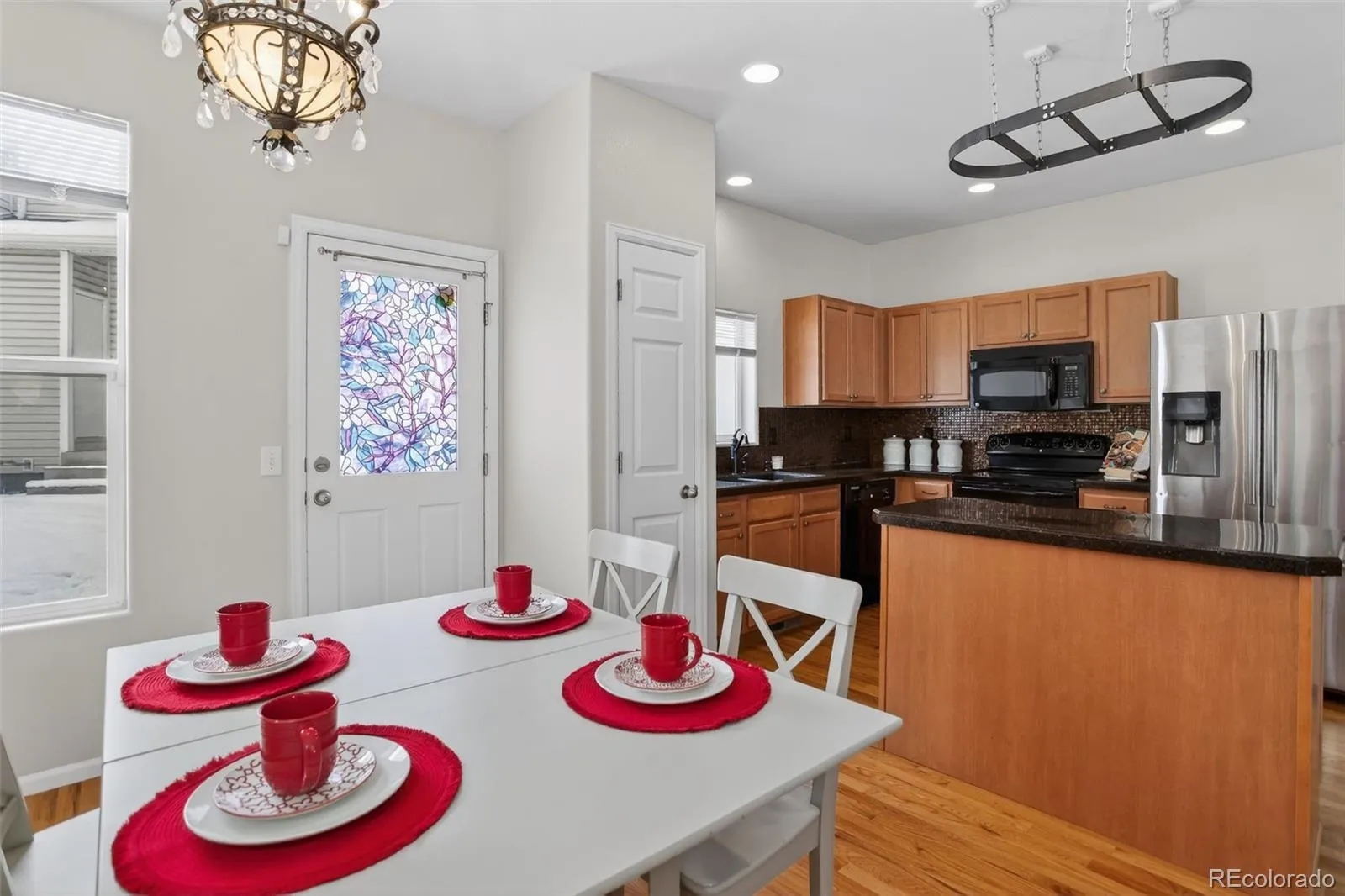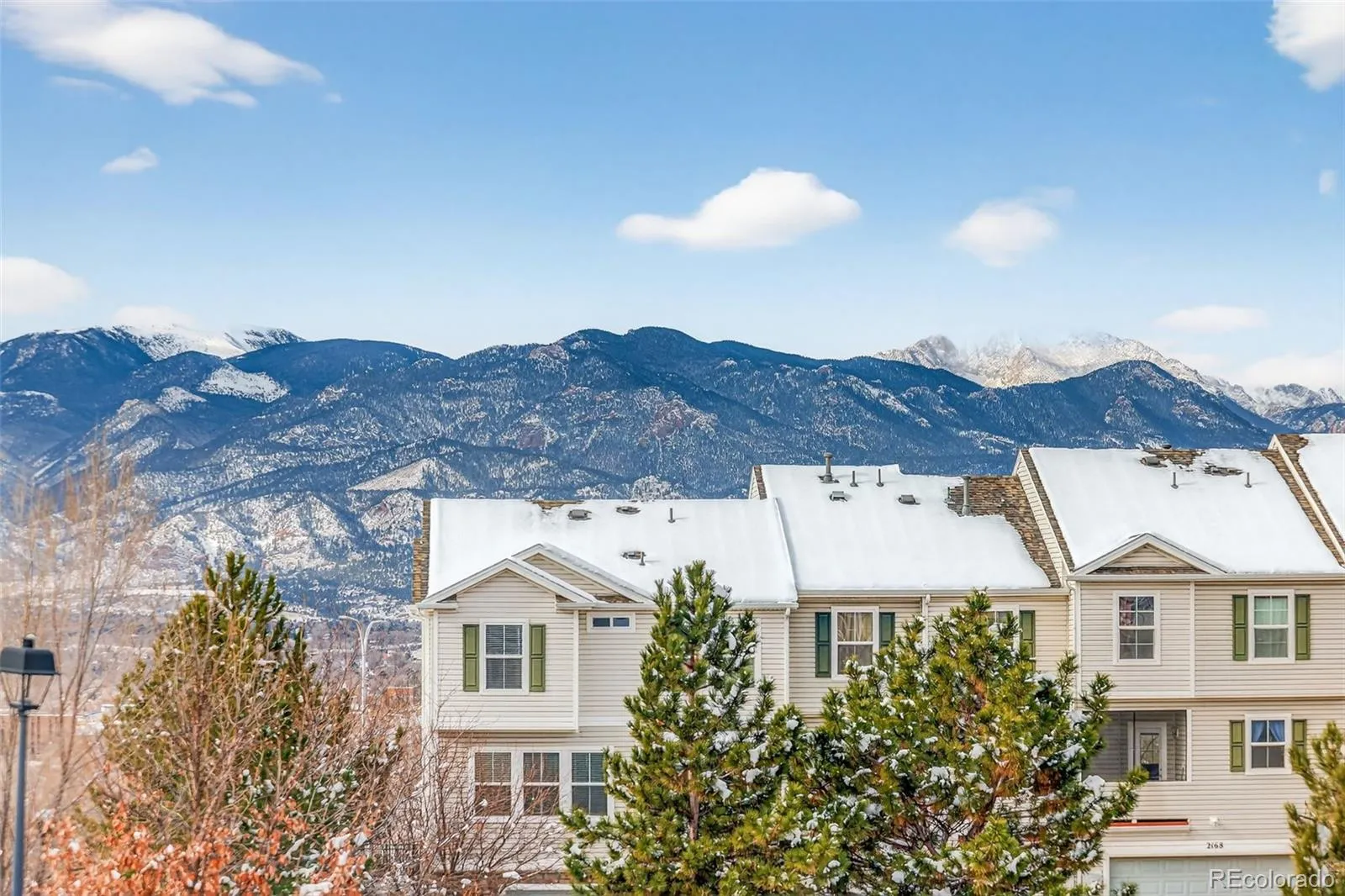 Welcome to this exceptional one-owner townhouse nestled in The Bluffs at Spring Creek located in Colorado Springs, Colorado. Here you will find perfectly blended comfort with sophisticated upgrades. This beautifully enhanced 2-bedroom, 3-bathroom townhome showcases 1292 square feet of thoughtfully designed living space. Step inside to discover gorgeous hardwood flooring that flows throughout the main level, complemented by brand new interior paint throughout and brand-new carpet leading upstairs and into the upstairs bedrooms. The heart of the home features a well-appointed kitchen complete with a convenient island, Italian Glass Granite Overlay countertops, mosaic tile backsplash and a practical pantry for all your storage needs. Upgraded light fixtures illuminate every corner with style. What truly sets this home apart are the dual primary suites, each featuring its own en-suite bathroom, one with two closets and one with a spacious walk-in closet. The convenience continues as the washer and dryer are included and brand new blinds have just been installed throughout for those times you just want to close out the outside and escape into your own personal haven inside. Incredible mountain views will keep you in awe anytime you gaze out the many windows and you’ll appreciate the proximity to Van Diest Park for outdoor fun, the convenient location of the nearby Walmart or the many other shopping and dining amenities that are just a few short minutes drive away. This meticulously maintained property represents an incredible opportunity to own a move-in ready townhome with premium finishes and practical amenities. The combination of luxury touches and everyday functionality create the perfect place for you to call home.