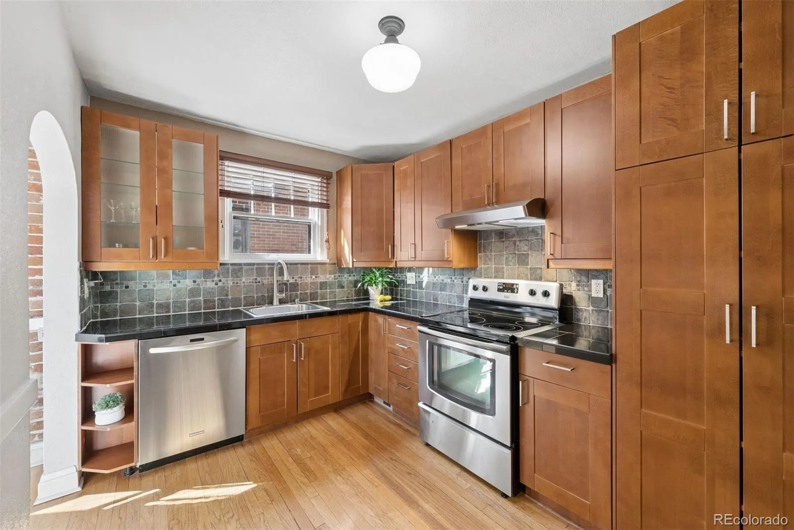 This beautifully maintained 1930 brick Tudor blends timeless character with modern updates. Homes of this caliber are rarely available with so many improvements, including a new roof, interior paint, dining room chandelier, and newly poured sidewalks and backyard patio. It has oak hardwood floors and architectural details that reflect the home’s original craftsmanship. The exposed brick breakfast nook offers the perfect place for morning coffee, while the light-filled sunroom creates an ideal space for relaxing. The finished lower level provides flexibility, featuring walk-in closets with new cedar-lined ceilings and a spacious bathroom that could function as a primary retreat. A large family room and an additional bonus room add even more versatility for a home office or gym The basement also includes an updated washer/dryer and newly installed basement windows. A rare find in the neighborhood, the property includes a detached two-car garage built in 2015 along with the original one-car garage. This unique setup provides abundant storage and possibilities for a studio or future ADU, offering flexibility. Major system updates include central AC, furnace, tankless water heater, gas-insert fireplace on the main level, updated electrical panels and an exterior sewer clean-out. The newly completed backyard patio creates an inviting outdoor space for entertaining, and relaxing. Located in one of Denver’s most vibrant and walkable neighborhoods, the home is just steps from parks, tennis courts and ball fields and a short stroll to local favorites including Jett Sushi, The W Denver, Benzina, and The Abbey Tavern. Within walking distance to Marczyk Fine Foods, Sprouts, Trader Joe’s, and King Soopers. With its rare combination of historic charm, modern updates, flexible living space, walkable amenities, and future ADU, this home offers an opportunity to enjoy classic Denver living with access to downtown, Cherry Creek, Washington Park, and Denver International Airport.