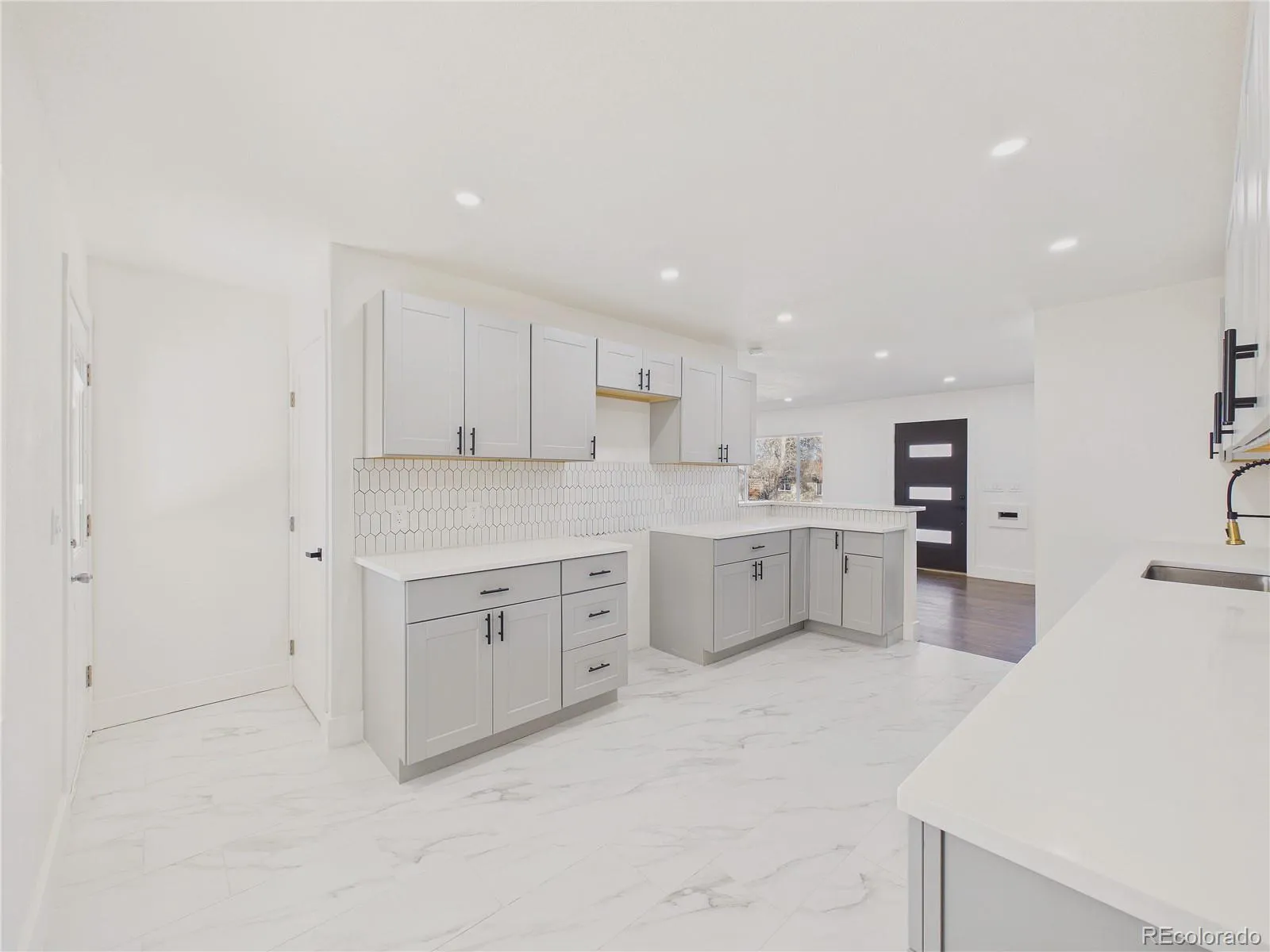 The kitchen is positioned exactly where it should be—connected, functional, and designed to keep you part of the moment. Crisp cabinetry, sleek countertops, and a clean backsplash give it a modern edge, while the layout makes everyday living and entertaining feel effortless.