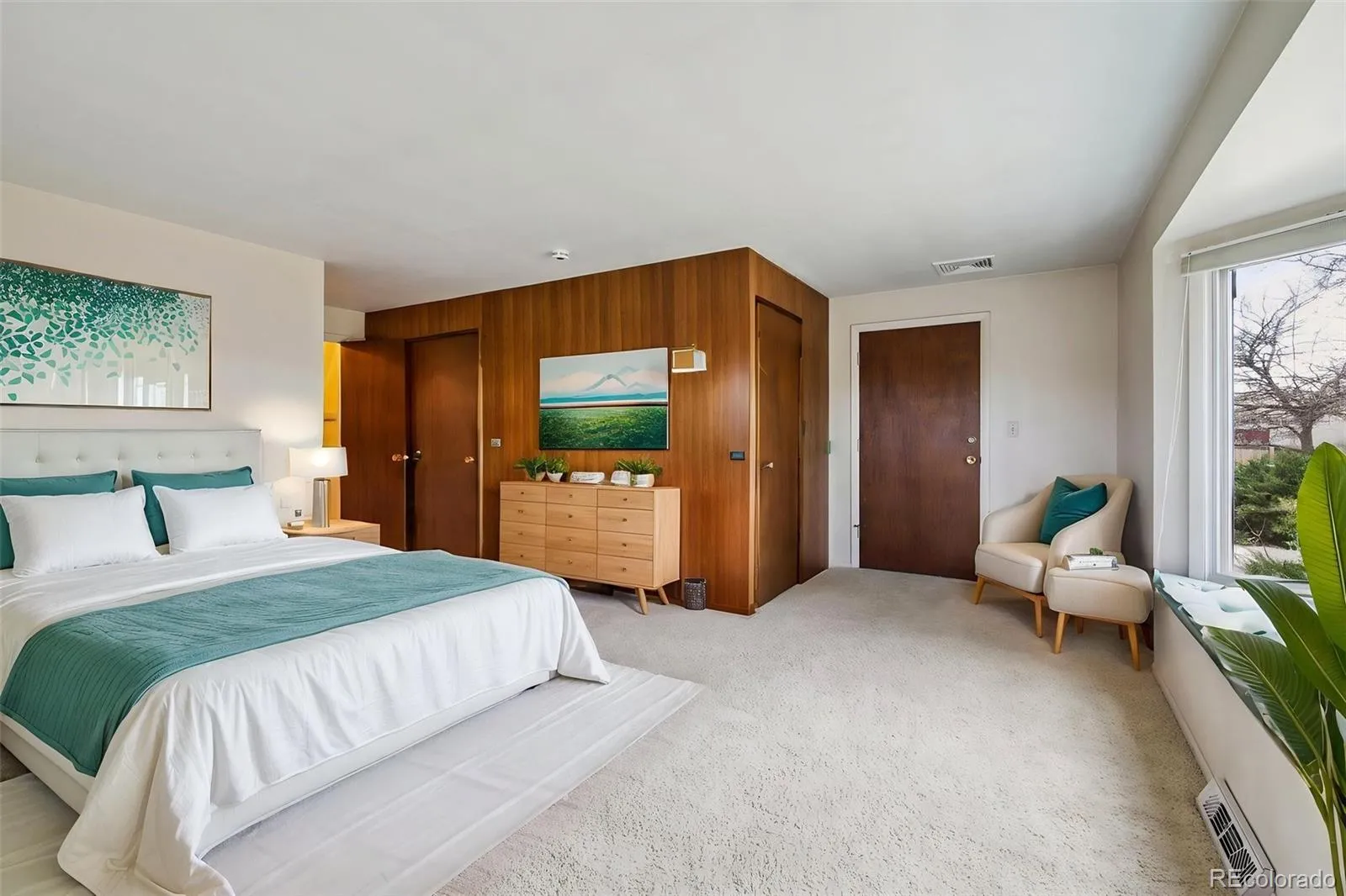 Here is your opportunity, don’t miss it! Buyer terminated due to cold feet! Step into a beautifully preserved mid-century gem tucked away on a cul-de-sac in Applewood, an established community celebrated for its architectural character and unbeatable access to both city amenities and world-class outdoor adventures. From the moment you arrive, you will notice mature trees framing the property while the open space behind creates a private sanctuary. This is a home that makes a quiet, confident first impression — and delivers at every turn. Inside, distinctive wood-paneled walls and a custom wood divider anchor the foyer, subtly defining the living space while nodding to the home’s rich architectural heritage. The main living area impresses with rich hardwood floors and warm mahogany walls lending sophistication, while a commanding stone fireplace serves as the room’s dramatic centerpiece. Expansive windows along the rear bathe the space in natural light and frame a breathtaking panorama of the iconic Colorado mountain skyline. The kitchen is thoughtfully designed and offers a clean, efficient layout, making cooking and entertaining a genuine pleasure. Down the hall, you will find a full bath and a versatile bedroom that can easily adapt to a guest suite, home office, or creative studio. The primary suite offers beautiful custom wall detailing, dual walk-in closets, and a sun-drenched bay window nook perfect for morning coffee or quiet reflection. Direct backyard access makes indoor-outdoor living feel completely natural. Outside, generous patio space sets the stage for weekend gatherings or simply unwinding beneath the Colorado sky — a space you’ll love in every season. A new electrical service and panel ensure the home meets modern expectations while preserving its authentic mid-century charm. This is more than a home — it’s a rare find where architectural soul, natural beauty, and modern comfort converge in one of the area’s most desirable neighborhoods.