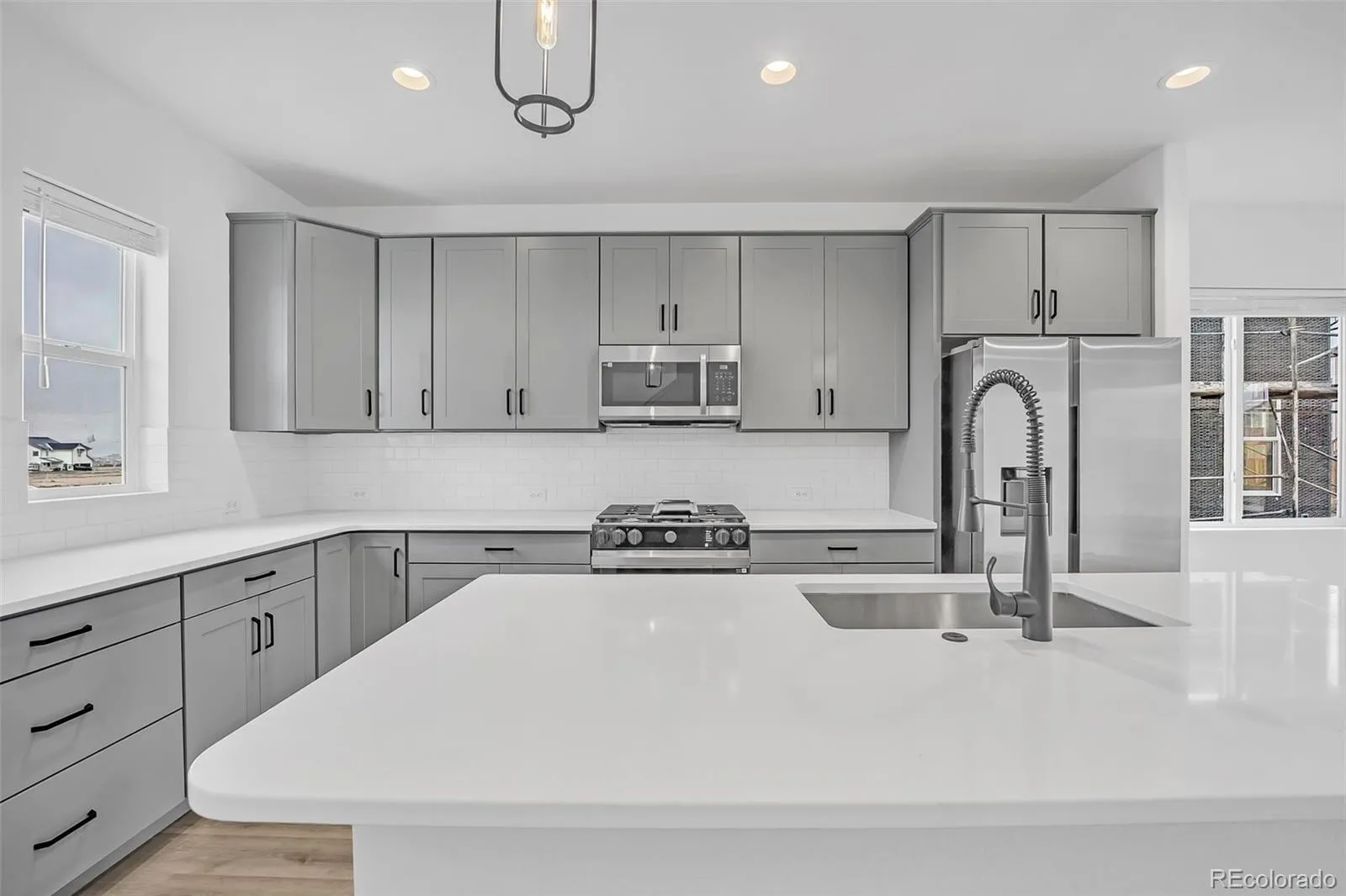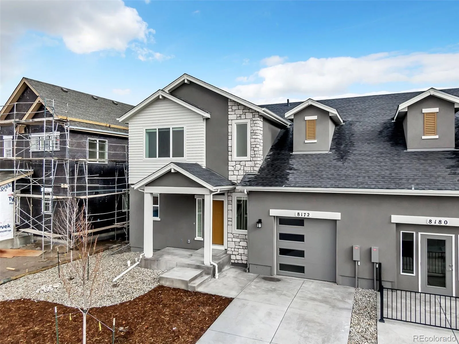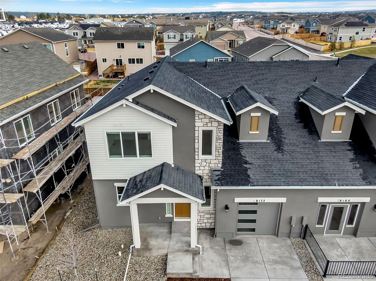 This beautiful 2-story town home with a landscaped and fenced back yard is in the always popular Duets area of Sterling Ranch. The Cypress floor plan has an inviting main level. This open and bright area includes the kitchen, dining room, living room and walkout to the back patio. The whole area is finished with luxury vinyl tile flooring and includes a powder room. The gourmet kitchen comes with all of the stainless-steel appliances, solid surface counter-tops, a pantry and large island with bar seating. Upstairs features a primary bedroom with a 4-piece spa type bathroom and dual walk-in closets. Additionally, there are 2 more bedrooms on the upper level along with a full bathroom and the conveniently located laundry. There is a 2-car tandem attached garage with an automatic door opener. The fenced back yard comes with a large patio and artificial grass. This makes it a very easy-care/low-maintenance property. Don’t miss out on this amazing Sterling Ranch town home.