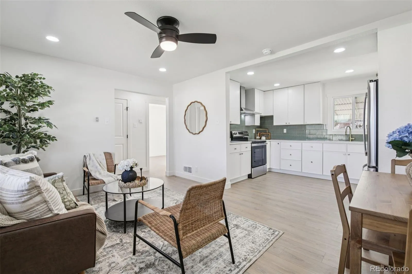 Welcome to this wonderfully remodeled 2 bedroom 1 bath home in Mar Lee. This home has been updated from top to bottom and the craftmanship is fantastic. When you open the front door you are greeted with a warm pallete of colors starting with the new LVP flooring that extends throughout the home. The new, warm interior paint adorns every surface. The open kitchen is complete with 42″ upper cabinets, quartz countertops, modern tile backsplash and a new stainless appliance suite. The family room is spacious and is bathed in natural light. The two bedrooms are serviced by a fully remodeled bathroom with its custom vanity and beautifully tiled tub surround. The large mudroom/laundry round out the space of this cozy home. Outside you will find a giant yard that you can make your own oasis. New stucco, double pane vinyl windows, newer furnace, new driveway, new lighting and plumbing fixtures complete this fabulous remodel. This home is close to everything: schools, parks, shopping and more. Come see it today!