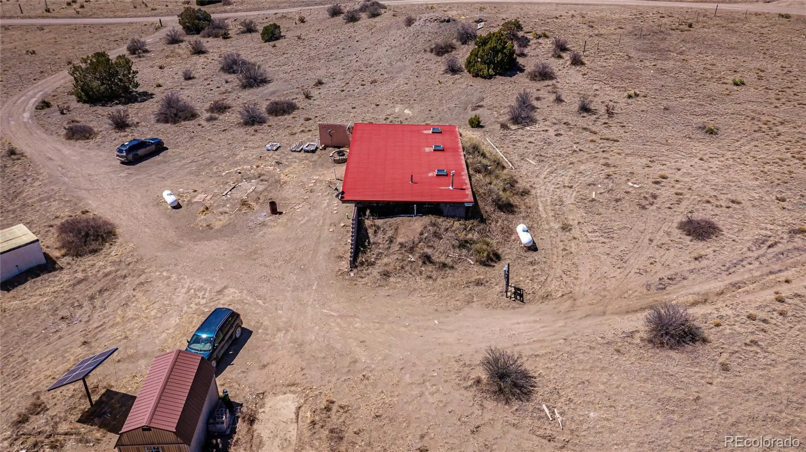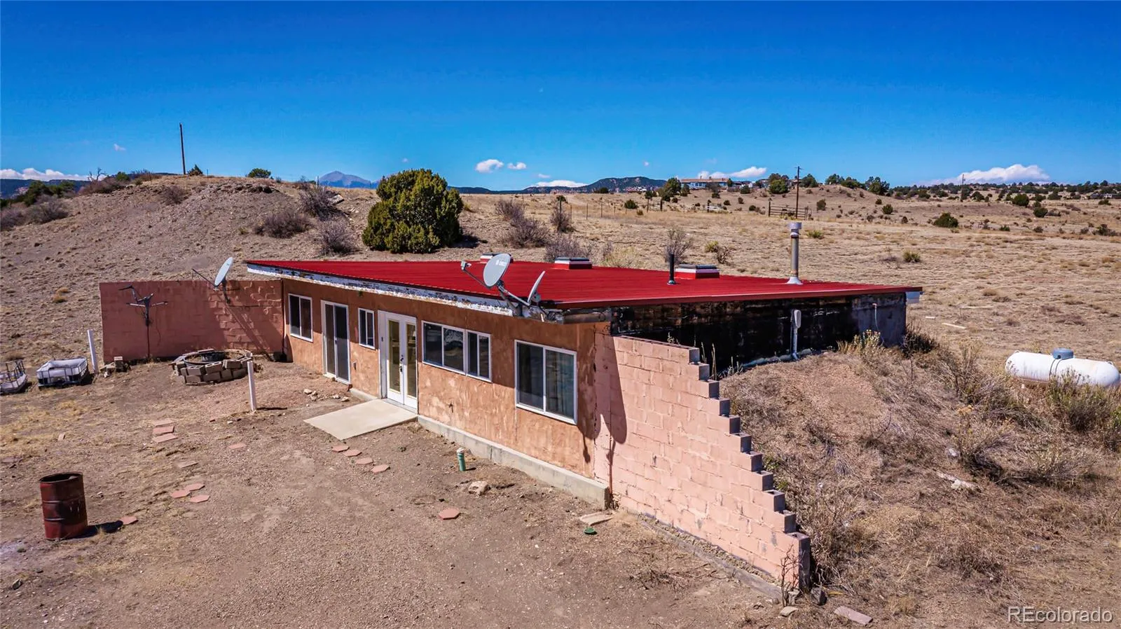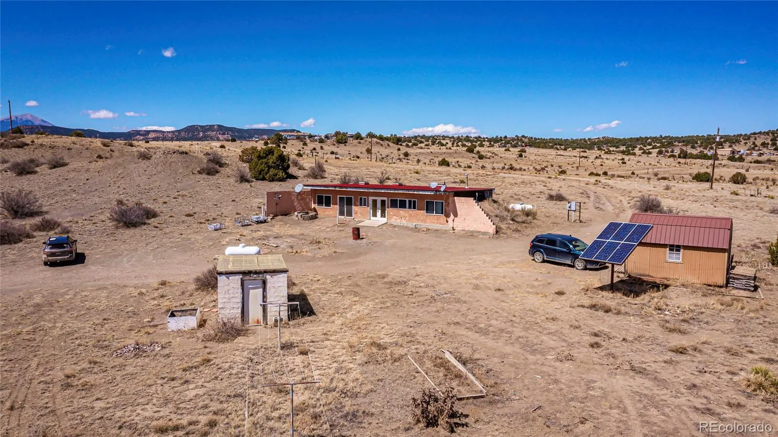 Set against striking views of Fisher’s Peak mesa, this unique 35-acre property offers a solid concrete home built into the hillside, ready for a little TLC and a new vision. Fully fenced with additional cross fencing for livestock, the land includes a lower pasture with a livestock waterer, plus a root cellar and storage shed to support your homesteading goals. With electric already connected and solar panels in place for future expansion, this property blends functionality with opportunity. Conveniently located with easy access to I-25, it’s an ideal canvas for a full-time residence, ranch setup, or peaceful getaway retreat.