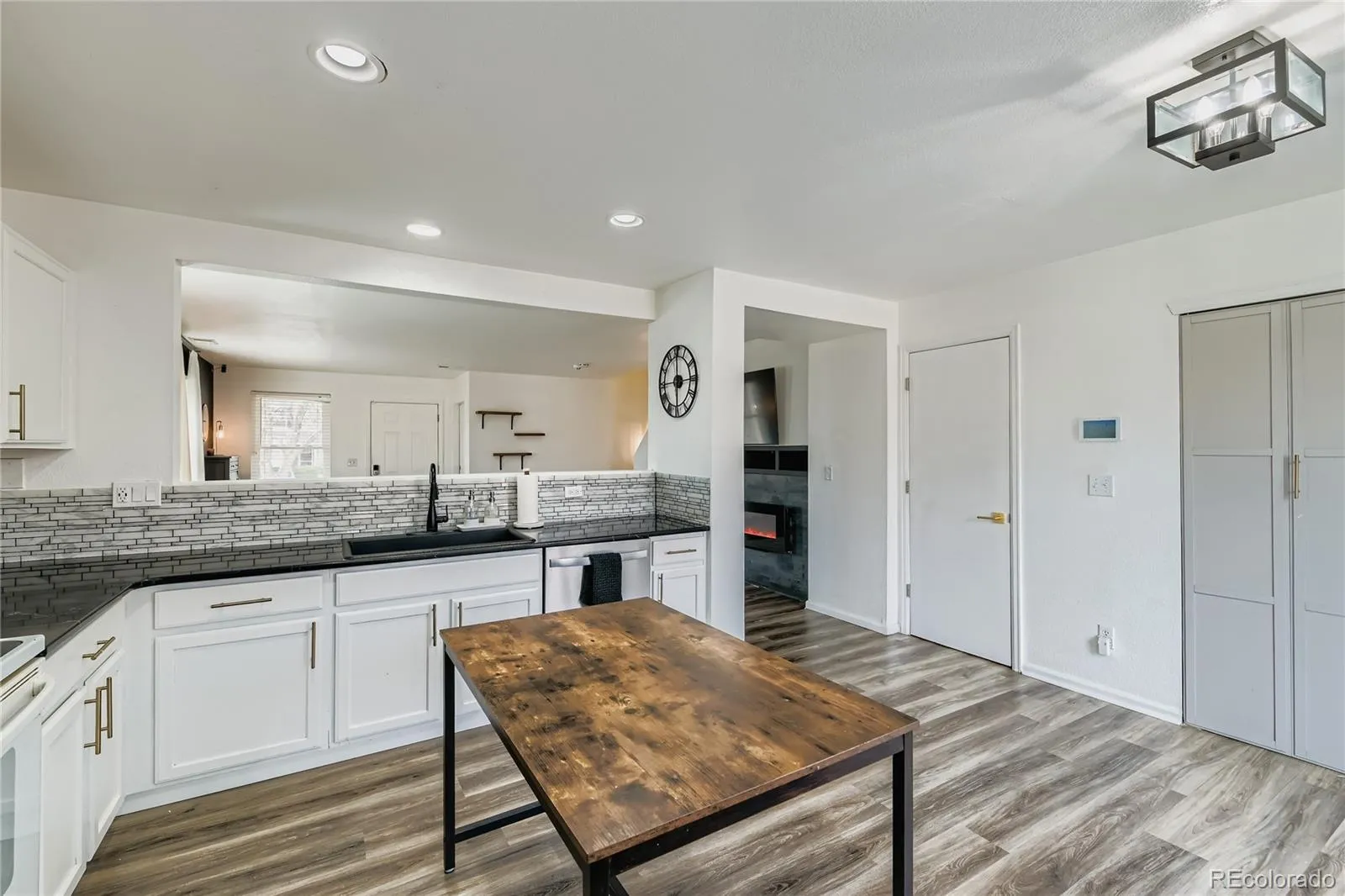 Beautifully updated 2 bedroom, 2 bathroom home in Platte River Ranch offering bright, open living spaces and stylish modern finishes throughout. The main level welcomes you with wide plank flooring, a cozy fireplace, and abundant natural light from all new Thermal Titan Super double pane windows. The spacious kitchen is both functional and inviting, featuring white cabinetry, quartz countertops, subway tile backsplash, and stainless steel appliances.