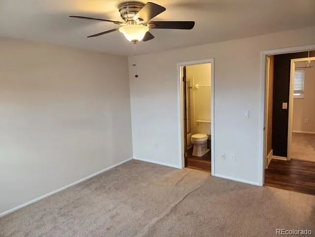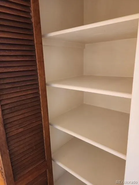 Just off the living area, you’ll find a convenient powder room for guests. The kitchen features wood cabinetry, newer built-in GE appliances, durable wood-look vinyl flooring, and a spacious pantry for added storage. The adjoining dining area is perfect for everyday meals or entertaining, with easy access to the private, fenced patio—an ideal spot to relax and enjoy the fresh Colorado air.