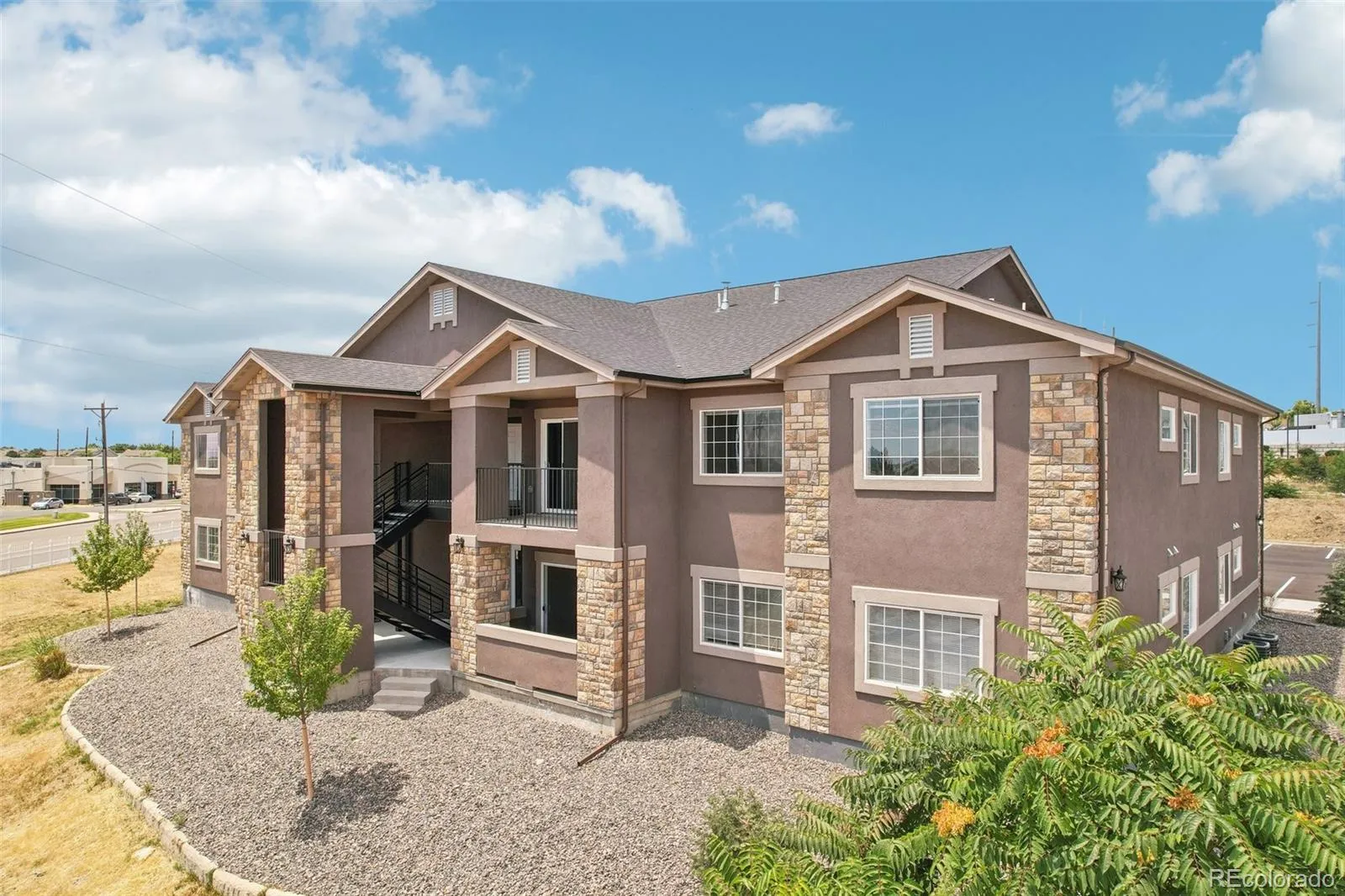 Elevate your lifestyle in this newly built top-floor condo. This spacious 3-bed, 2-bath condo harmoniously blends comfort and elegance, offering a welcoming atmosphere that’s perfect for both relaxation and entertaining. Inside, the open-concept layout impresses with vaulted ceilings and wood laminate flooring that not only elevates the interior but also offers the practicality of low-maintenance living. The heart of the living area is a charming gas fireplace, creating a cozy and inviting space for gatherings or peaceful nights in. The kitchen is a centerpiece, designed to be both functional and beautiful. With its marble countertops and modern stainless steel appliances, this space is well-equipped for any culinary endeavor, whether you’re crafting everyday meals or hosting special occasions. The primary suite is a private retreat, offering an ensuite bathroom and a walk-in closet for all your wardrobe essentials. Soft, plush carpeting in the bedrooms adds an extra layer of comfort, making these spaces feel even more inviting. Step outside onto the covered patio, the perfect space for enjoying a morning coffee or dining alfresco, with the added convenience of a storage closet to keep your essentials organized. Parking is hassle-free, ensuring that your comings and goings are smooth and easy. Situated in a prime location, this condo provides excellent access to Denver, DIA, and the surrounding Metro area. With a short distance to dining, shopping, entertainment, and transportation options, you’ll have everything you need right at your doorstep. Rentals with a minimum duration of 30 days are permitted. For all scheduled open houses, please visit the model unit #71.