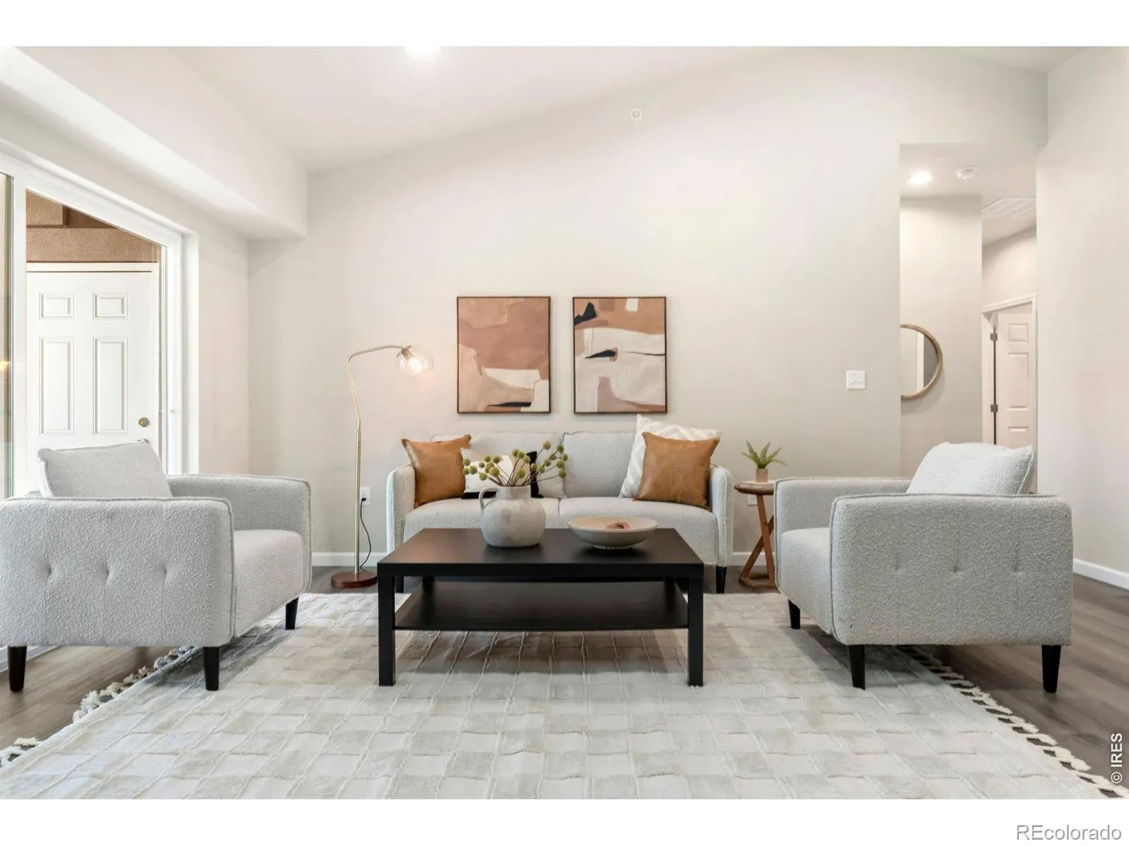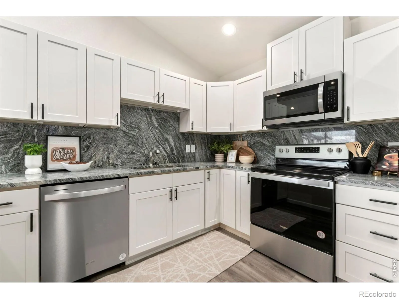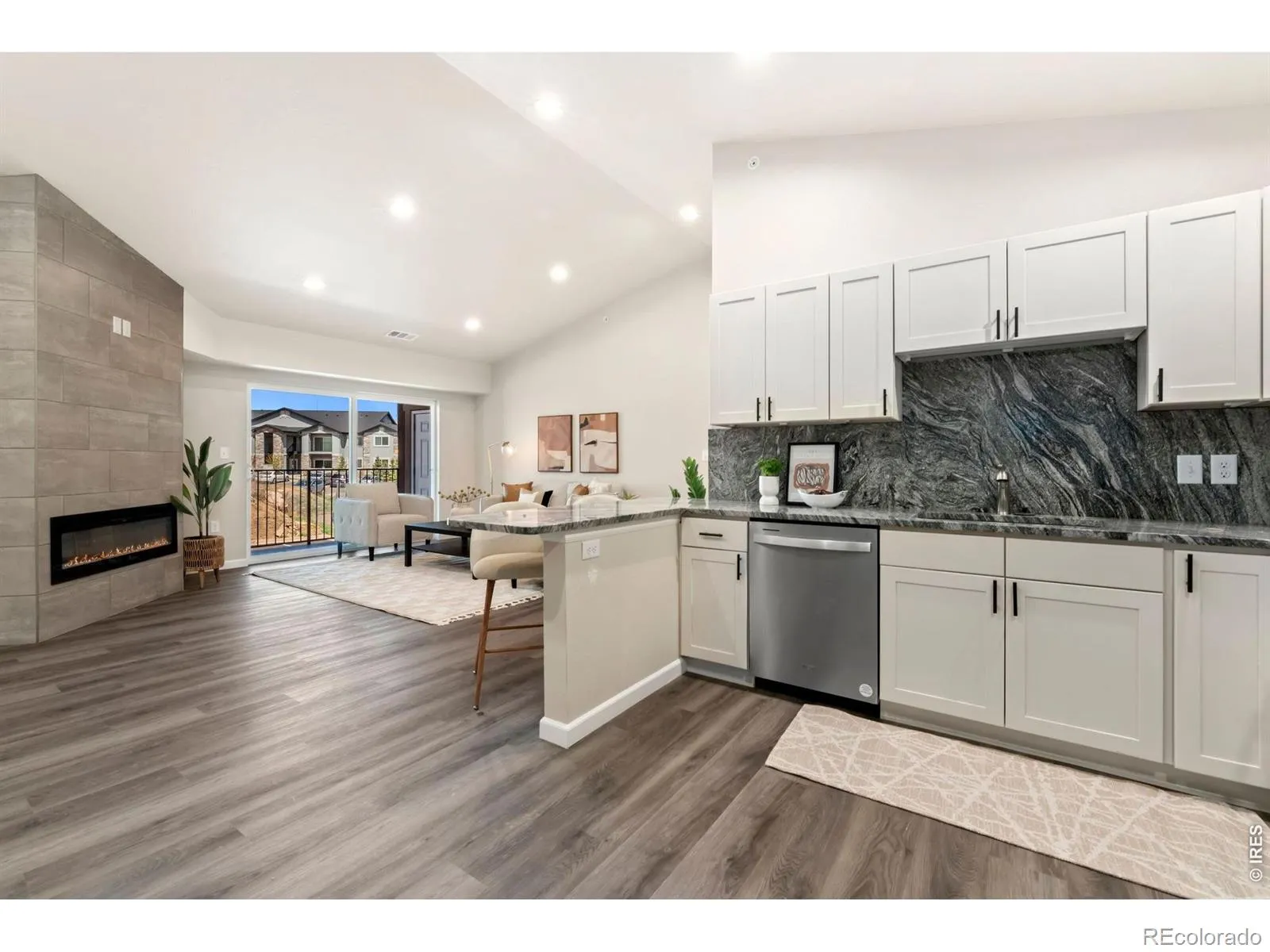 Step into elevated living in this newly built, top-floor condo! Offering 3 bedrooms and 2 bathrooms, this spacious model unit blends comfort and style in a layout made for both everyday ease and effortless entertaining. The open-concept design is highlighted by vaulted ceilings and wood laminate flooring, delivering an elegant look with hassle-free maintenance. A warm gas fireplace anchors the main living space, creating an inviting setting for quiet evenings or hosting friends and family. The kitchen serves as a true focal point, equally beautiful and functional with marble countertops and sleek stainless steel appliances ready for everything from quick meals to special gatherings. The primary suite provides a relaxing escape, complete with an ensuite bathroom and a walk-in closet to keep everything organized. Plush carpeting in the bedrooms adds extra softness and comfort throughout. Enjoy the outdoors from your covered patio, ideal for morning coffee or dining outside, plus the added convenience of a dedicated storage closet. Parking is easy and convenient, making day-to-day living even smoother. Ideally located with great access to Denver, DIA, and the surrounding Metro area, you’re also close to dining, shopping, entertainment, and transportation. There are multiple new units available in the building. See MLS #1047787 for a ground floor model. Rentals are allowed with a minimum 30-day term.