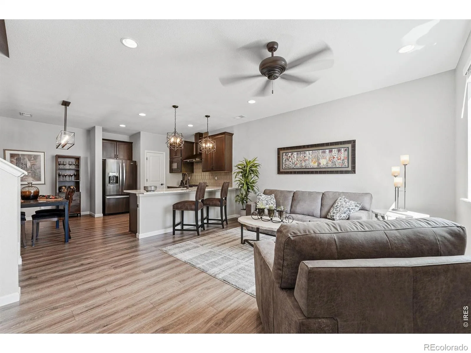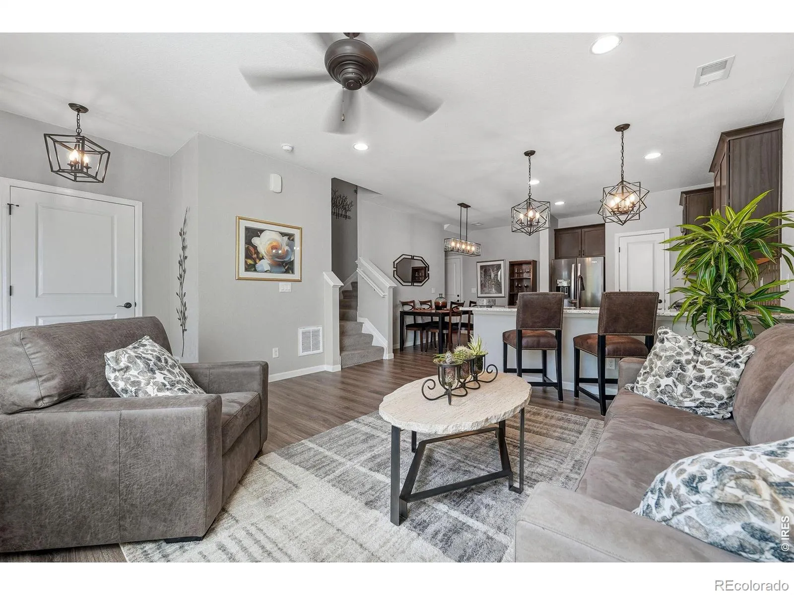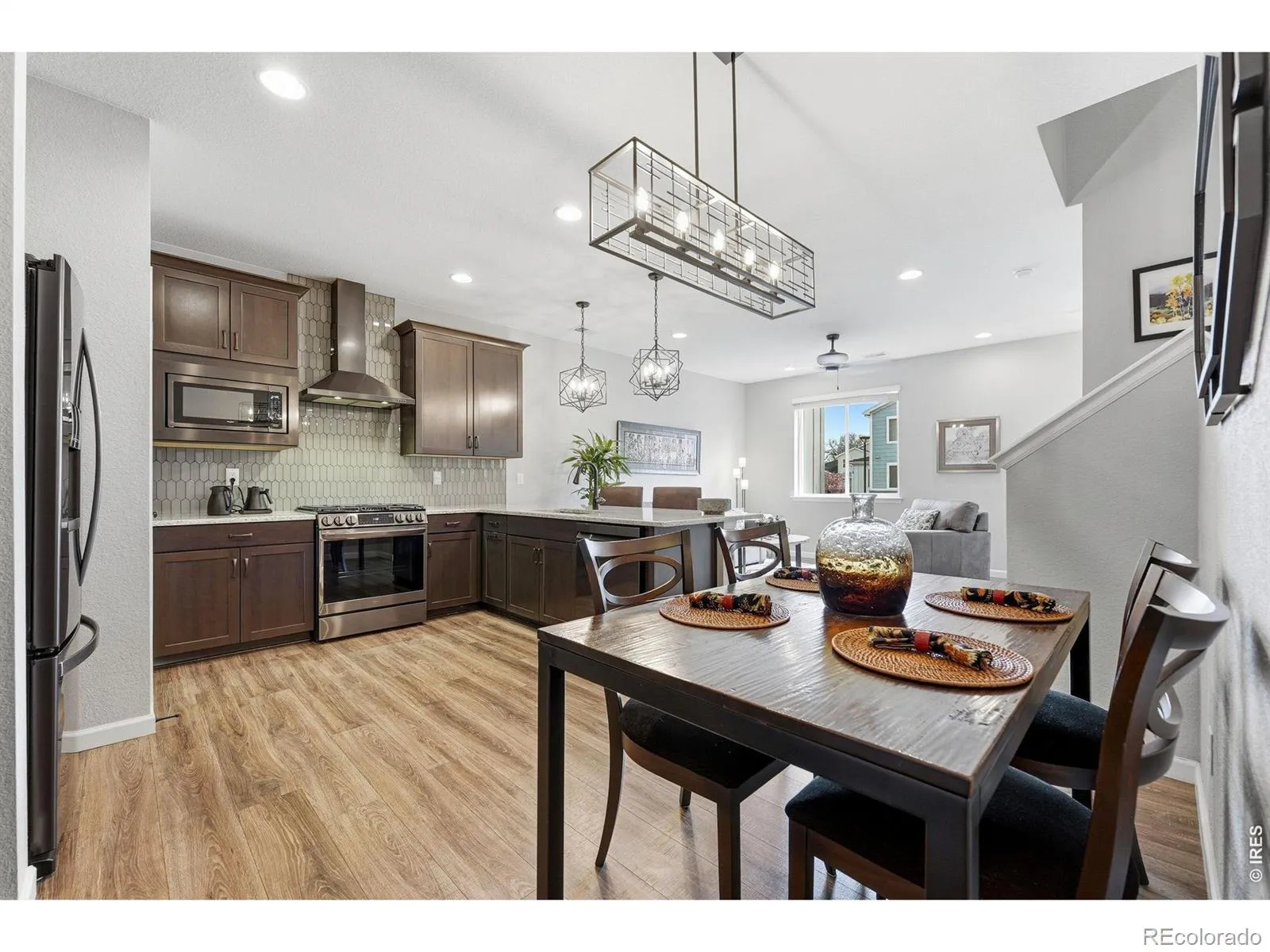 Welcome to this beautifully upgraded townhome in highly desirable southwest Longmont, perfectly situated with easy access to Boulder, shopping, dining, and miles of scenic trails.Built in 2019, this thoughtfully designed 3-bedroom, 3-bath home showcases high-end finishes and every upgrade carefully selected for both style and function. The open-concept main level features a stunning kitchen with 42-inch cabinets topped with crown moulding, sleek quartz countertops, and a striking tile backsplash that highlights the natural gas range, oven and hood. A granite undermount sink and spacious walk-in pantry add both elegance and convenience.Upstairs, a versatile loft area provides the perfect space for a home office, homework space or reading nook.. Upgraded lighting throughout the home enhances its modern, polished feel.Enjoy Colorado living at its best with a private, fenced yard and a front porch that faces a peaceful community open space complete with a park and charming gazebo. The east-facing orientation offers shaded, comfortable afternoons-ideal for relaxing or entertaining.An attached two-car garage completes this exceptional home, offering both convenience and ample storage.This is low-maintenance living without compromise, in a location that truly has it all.