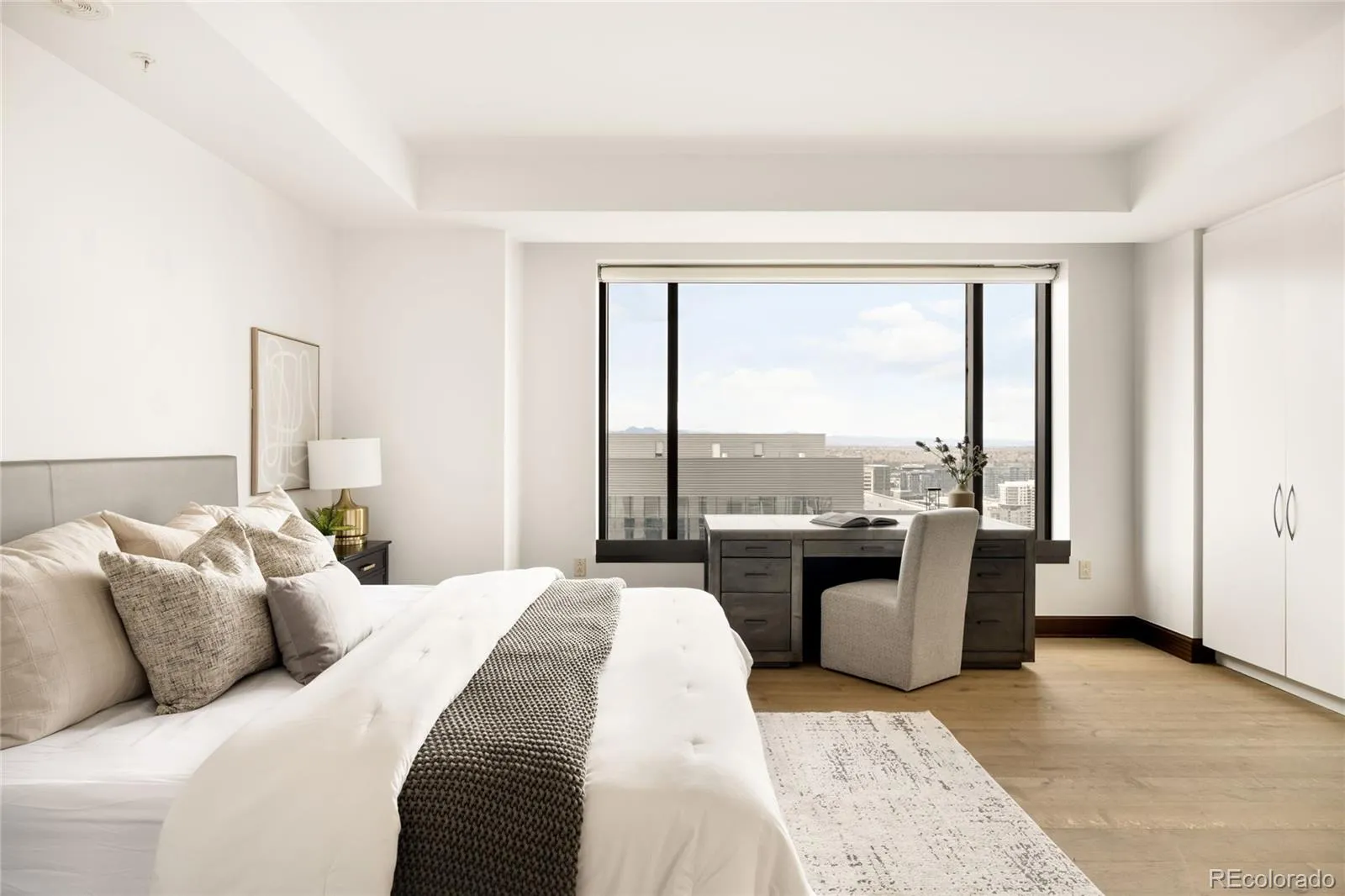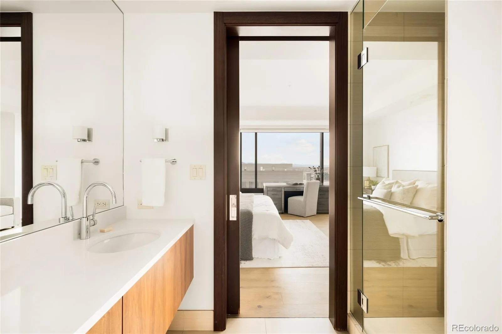 Sleek and stylish interiors await in this luxe escape poised within the Four Seasons Private Residences. A gracefully flowing floor plan flanked by a neutral color palette extends from an entry with built-in storage to an open and airy living area. Centered by built-in shelving, a modern fireplace grounds the space as natural light streams in through vast windows. Expansive sliding glass doors open to reveal seamless connectivity to a 373-square-foot balcony boasting city and mountain views. A dining area adjoins to a kitchen complete with granite and marble countertops, Sub-Zero appliances and a center island with seating. Enjoy ultimate relaxation in a spacious primary bedroom featuring balcony access and a spa-like bathroom with a soaking tub. A secondary bedroom presents potential for a home office or accommodation for guests. A private residential experience enhanced by iconic Four Seasons hospitality – concierge service, spa, elevated fitness center, pool, in-residence dining, housekeeping services and meticulously serviced common areas.