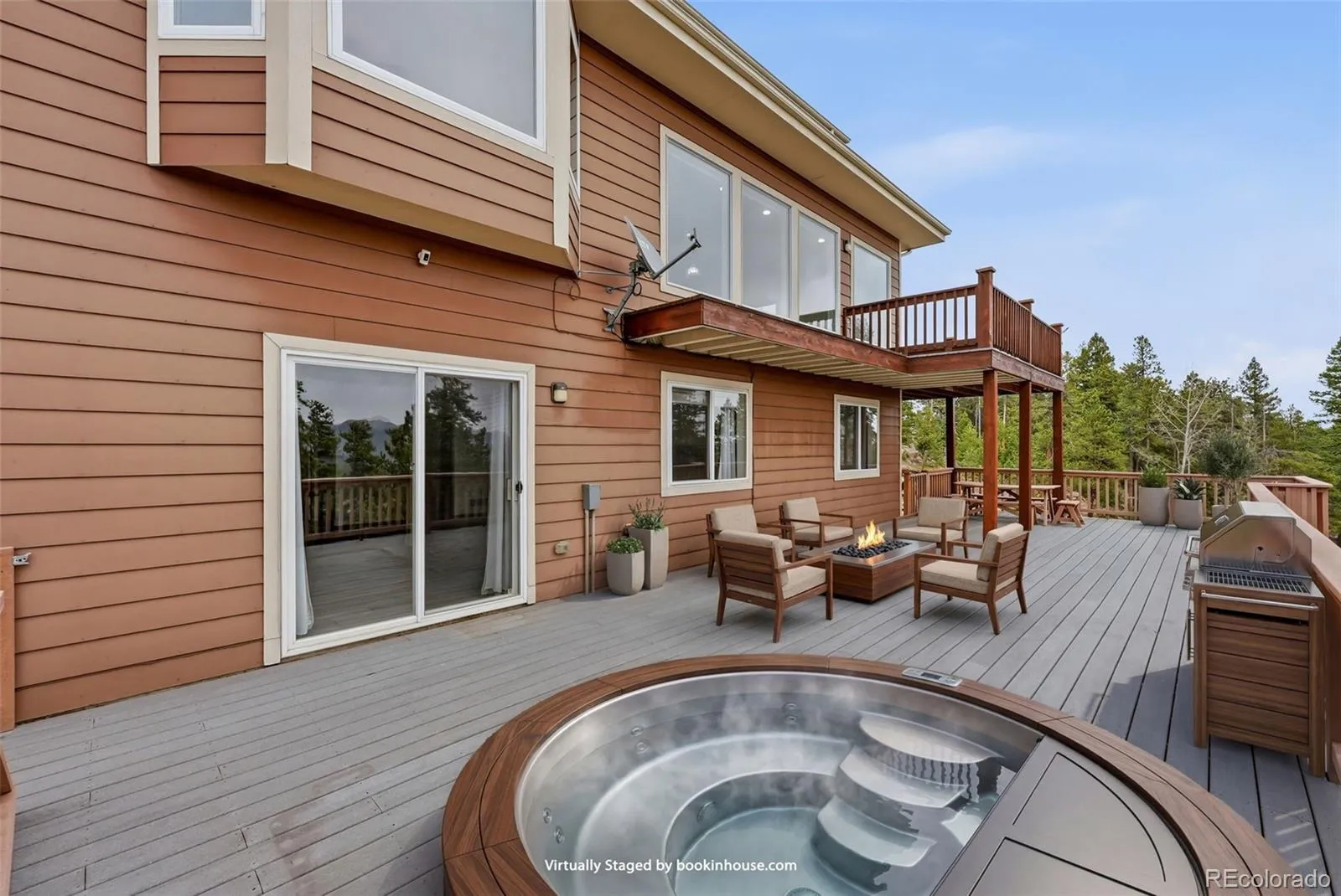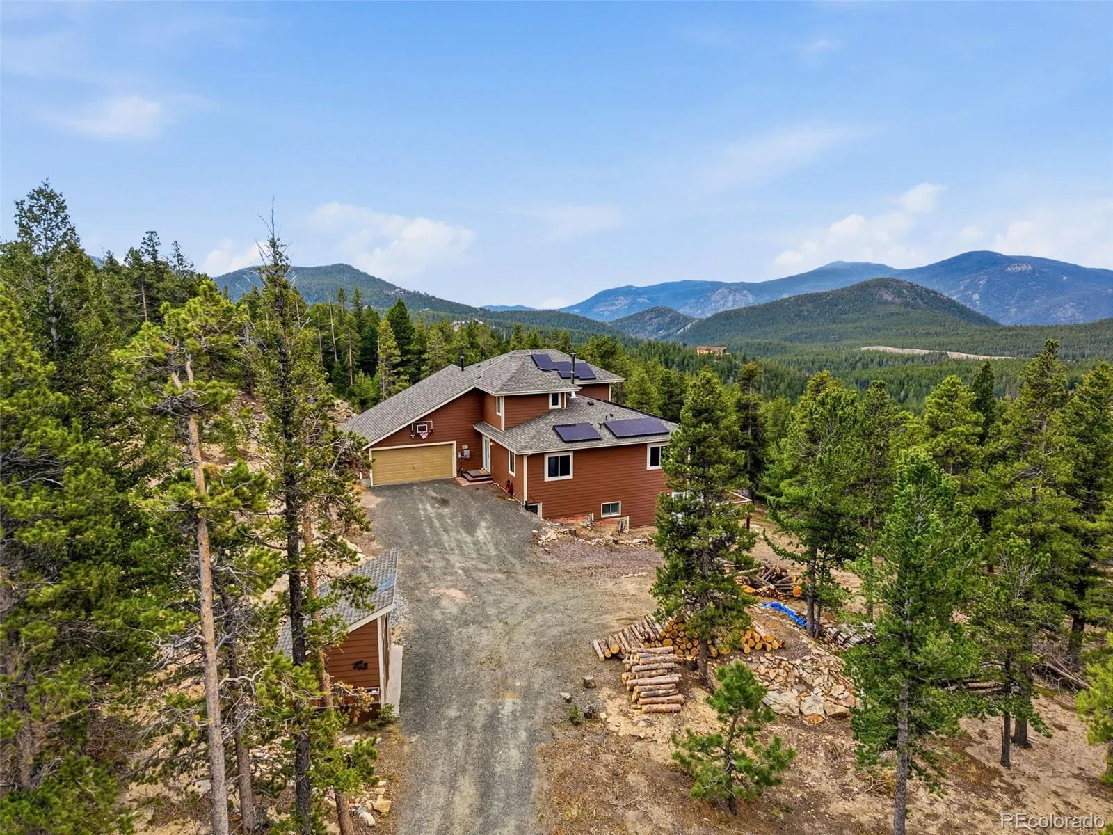 Step inside the light-filled foyer that opens into an inviting great room, where walls of windows frame jaw-dropping views in every direction. From the dining area, step onto one of two expansive Trex decks and take in even more of the sweeping landscape—perfect for indoor-outdoor living and entertaining. The kitchen shines with modern upgrades, including sleek Samsung stainless steel appliances, and the great room features a wood-burning fireplace for cold winter nights. Two main-floor bedrooms share a convenient Jack-and-Jill bathroom, and each offer beautiful natural light, custom closet built-ins, blackout blinds, and—of course—those stunning views. Upstairs, the spacious primary suite is a true retreat, featuring six windows that showcase the surrounding mountains. A generous walk-in closet and a luxurious five-piece bathroom complete this private sanctuary. The versatile lower level could be an extension of the main home or could offer income-producing opportunities; it has its own private entrance, two bedrooms, one bathroom, its own beautifully-appointed kitchen, a great room with an electric fireplace and an expansive trex deck that acts as an outdoor living sanctuary. Other features that set this home apart are fully paid off solar panels and a new tankless Rinnai water heater. A quiet retreat away from the hustle and bustle of the city, yet just 25 minutes to retail, restaurants and groceries, just 40 minutes to Eldora, & just 50 minutes to downtown Denver. Welcome!
