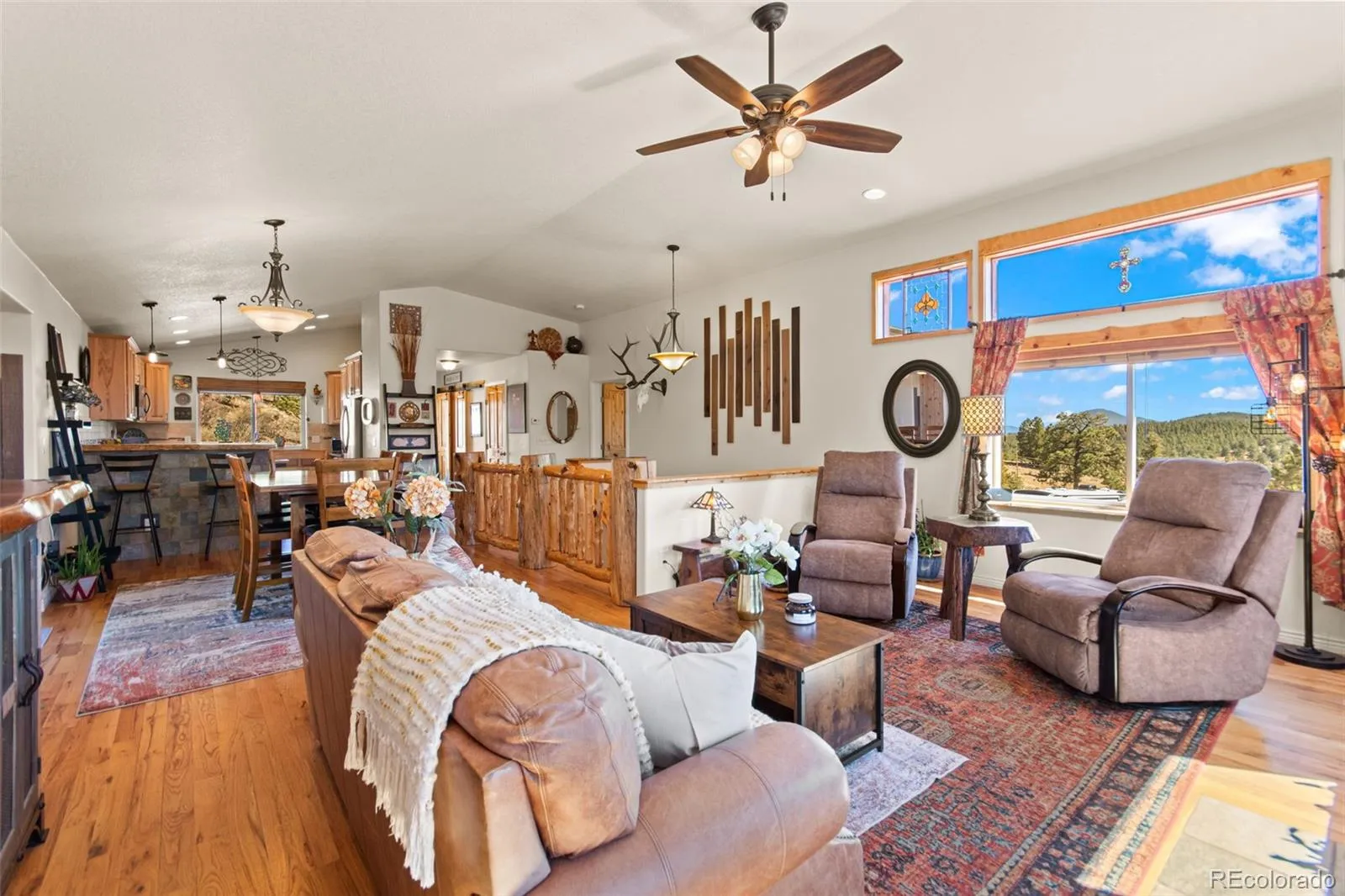 You’ll love this mountain home where comfort, space, and nature come together on a sunny Burland Ranchettes lot. Built in 2015, this thoughtfully designed home offers 3 bedrooms, 3 bathrooms, and over 2,300 square feet of finished living space. Inside, you’ll find an inviting open floorplan with vaulted ceilings, warm wood accents, and abundant natural light that creates a welcoming, relaxed atmosphere. The heart of the home is the well-appointed kitchen featuring granite counters, an island, modern appliances, and seamless flow into the dining and living areas – perfect for everyday living and entertaining. The cozy living room is anchored by a wood stove and large windows that frame stunning mountain views. The main-level primary suite offers a peaceful retreat with natural light, a walk-in closet, and a spa-inspired five-piece bath. Downstairs, additional bedrooms provide room for guests, hobbies, or a home office. Step outside to enjoy multiple expansive decks designed for gathering, grilling, or simply soaking in the panoramic scenery and Colorado sun. The paved driveway, attached 2-car garage, and RV parking add convenience, while a detached shed offers extra storage for tools or gear. New roof and exterior painting in 2019. Located on a paved road with a school bus route giving it priority snow plowing, this home offers both convenience and foothills charm. Frequent visits from deer, fox, moose, and elk complete the experience, offering a true connection to nature right outside your door. If you’ve been dreaming of peaceful mountain living with modern comfort and room to breathe, this home delivers.