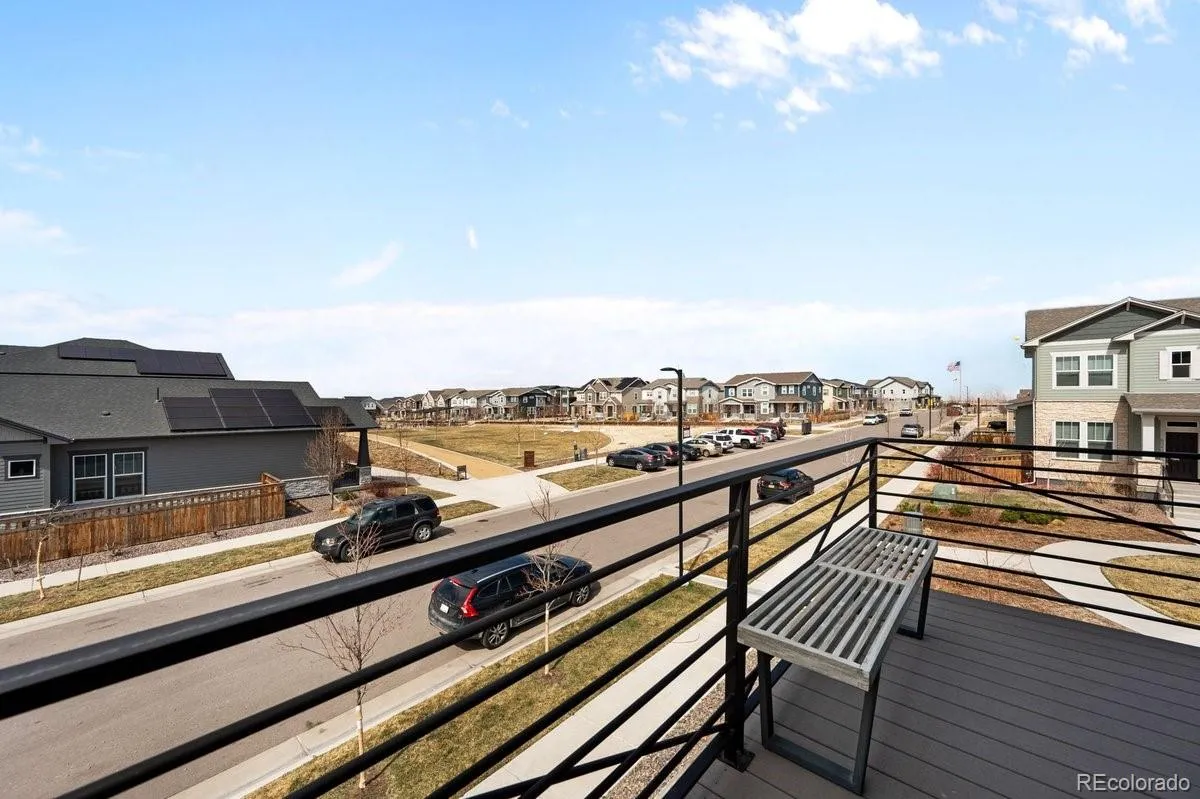 Turnkey living meets turnkey income in one of Painted Prairie’s most coveted locations. Skip the wait and the stress of new construction. This former Envision Model Home by EPIC Homes is move-in ready, fully upgraded, and fully furnished, with an active short-term rental business and existing reservations that can transfer directly to the new owner. Set on one of the community’s most desirable lots, directly adjacent to the neighborhood park and fronting the garden courtyard, the position of this home is rare. Your semi-wraparound balcony off the primary suite captures sunrise to the east and sunset to the west. Morning coffee or evening wind-down, the view delivers. The wraparound covered front porch opens to a beautifully landscaped, fully fenced yard, ideal for kids, pets, or simply creating separation from the world. Inside, the open-concept kitchen anchors the main level with a large island, gas range, stainless steel appliances, and a layout designed for entertaining. The primary suite occupies the top floor with private balcony access, and the secondary bedrooms share a jack and jill bath. Smart home features throughout including a Skybell doorbell, smart garage openers, ceiling-mounted speakers, and seamless integration with Amazon Echo or Google products. Tankless water heater and central AC round out the mechanical package. Three miles from Denver International Airport. Walking distance to the Gaylord Rockies Hotel and Convention Center, E-470 access, shopping, and dining. Minutes from the CU Medical Campus and Buckley Space Force Base, two of the region’s strongest drivers of short and mid-term rental demand.