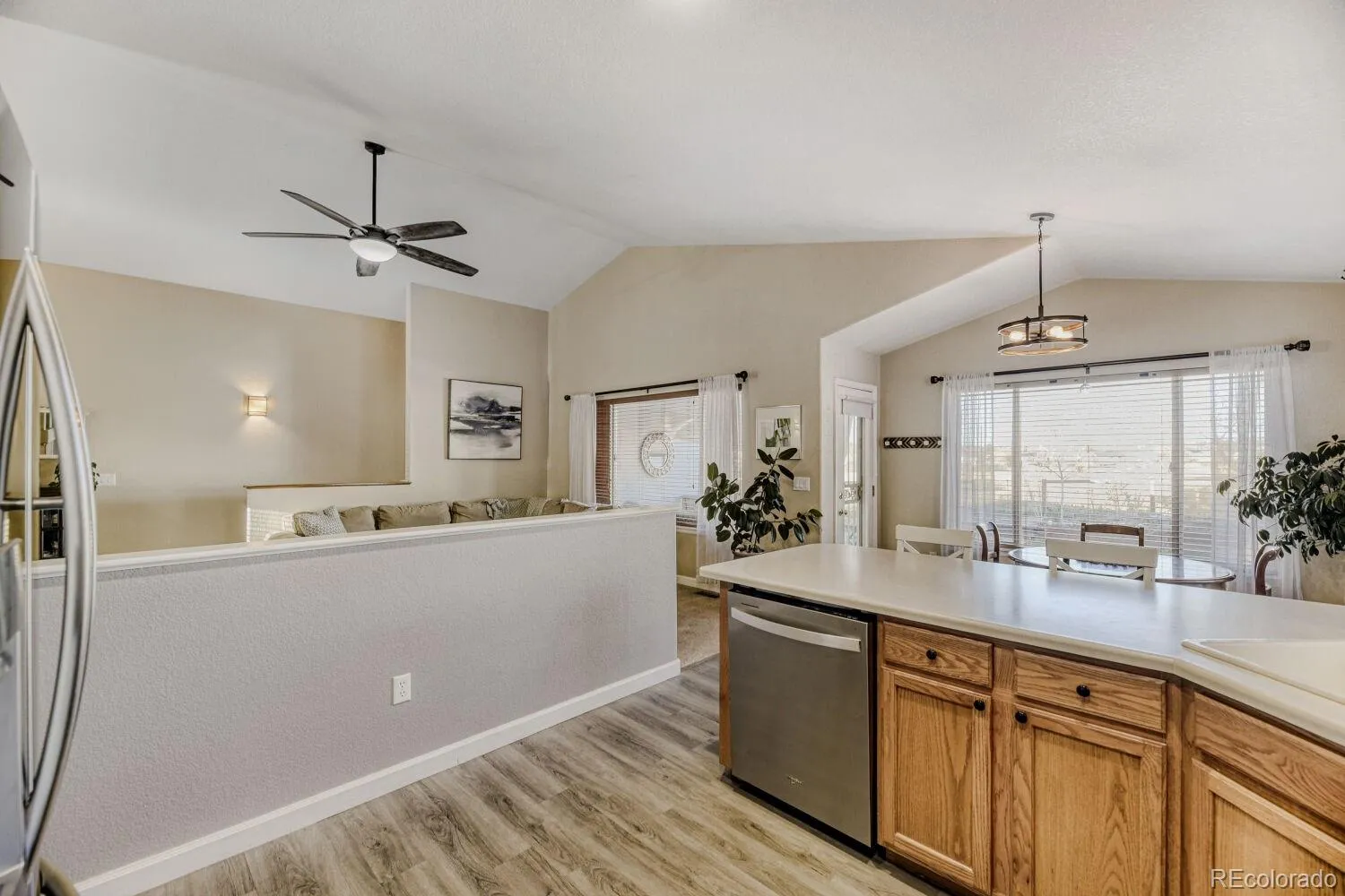 Beautifully maintained home backing to open space with added privacy! The main level features 3 bedrooms, including a comfortable primary suite with a 3/4 bath, plus an additional full bathroom for convenience. You’ll also find a spacious family room, full kitchen with stainless steel appliances, and a convenient laundry room all on the main level. Step inside to an inviting open layout with vaulted ceilings and abundant natural light. The living room is highlighted by a cozy double-sided fireplace, creating warmth and charm-perfect for everyday living and entertaining. The fully finished basement offers incredible flexibility, featuring its own separate access through the garage, making it ideal for multi-generational living, guests, or potential rental income. Downstairs includes a bedroom with a private full bath, plus 2 additional bedrooms, another full bathroom, a full kitchen, family room, and laundry area—a complete second living space! Enjoy the covered patio and peaceful backyard backing to open space—perfect for relaxing or entertaining with no neighbors directly behind. The yard also features a storage shed with electricity, offering the perfect space for a workshop, hobby area, or additional storage, along with mature flower beds that will bloom beautifully in the spring, adding color and charm to the outdoor space. Additional highlights include a 2-car garage, leased solar panels, and major system updates including roof, exterior paint, furnace, and A/C—all less than 2 years old, providing peace of mind for the next owner. Conveniently located near parks, trails, shopping, and dining—this home truly has it all! Don’t miss the 3D tour—experience the full layout and flow of the home!