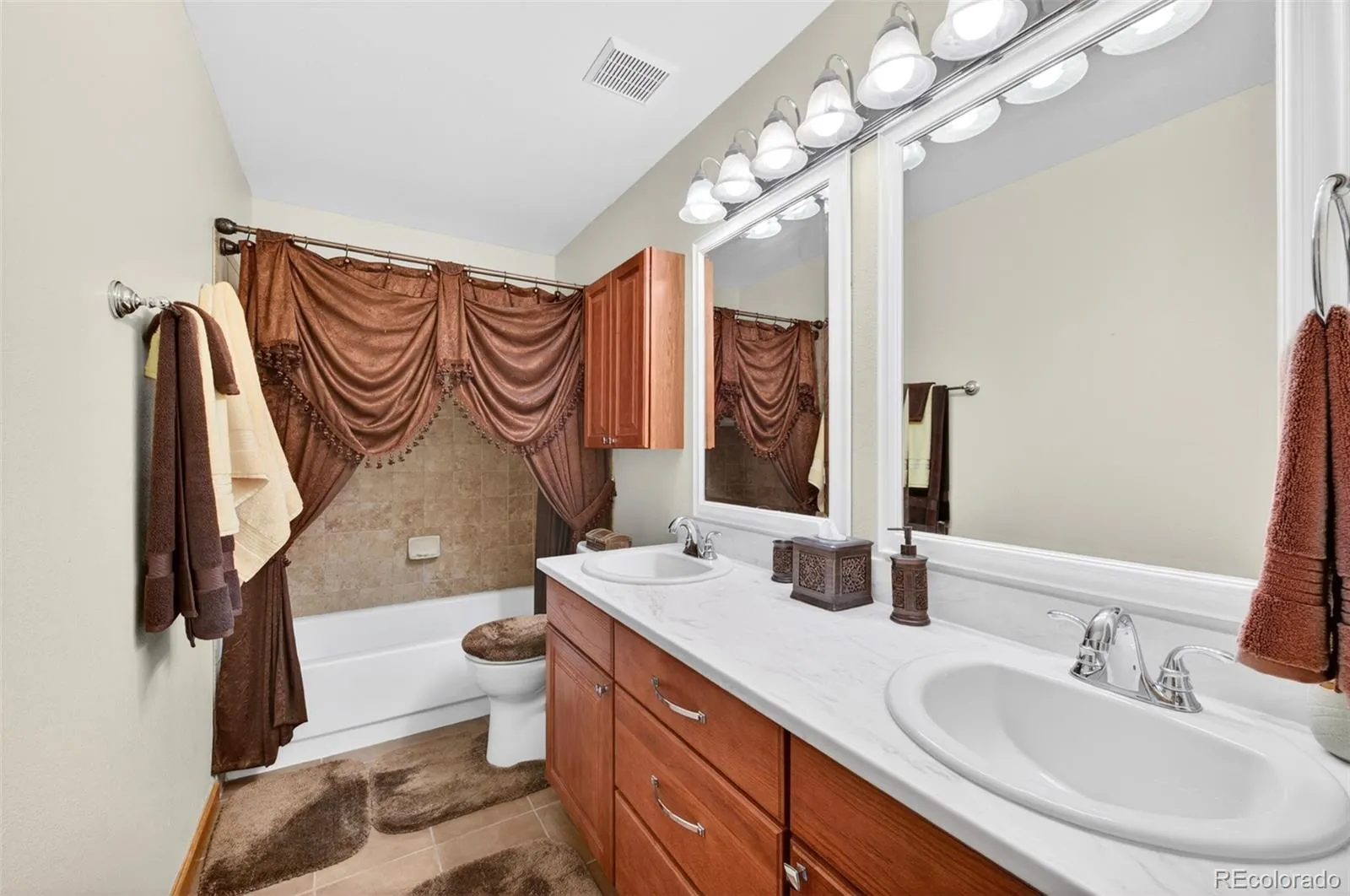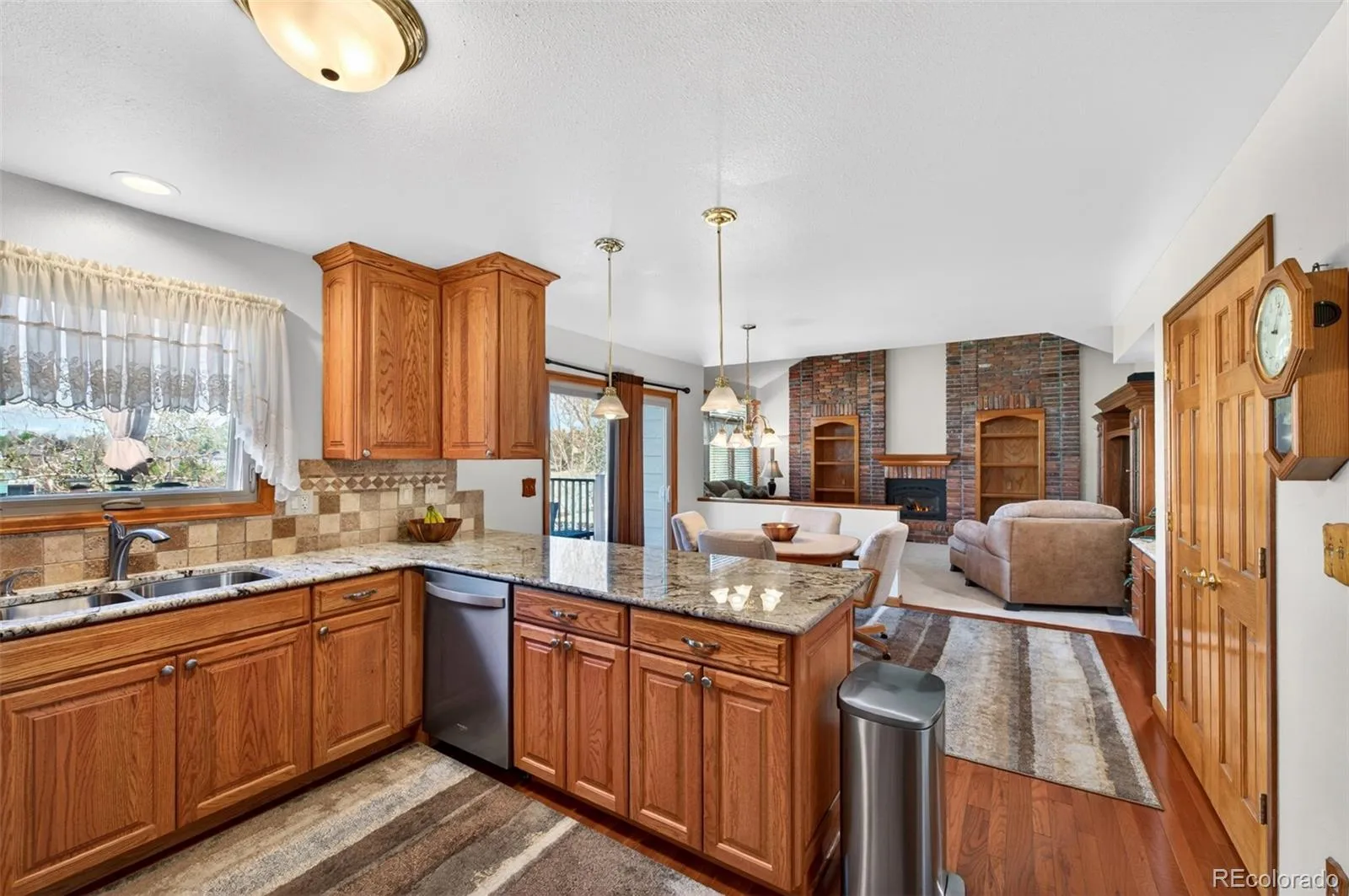 PRICE REDUCTION ON THIS HOME IN TUSCANY AT PINEY CREEK!! Please do not miss this gorgeous 2 story home in Tuscany Piney Creek East. The owners have paid attention to every detail of the home in remodeling., updating and finishing the entire home. Mountain Views abound from the lovely deck off the kitchen and from the large windows of the family room on the main level. The home backs onto an elementary school allowing privacy. The main level has a family room featuring a brick fireplace and vaulted ceilings. The kitchen was remodeled in 2021 with new cabinets, granite counters, new lighting , new paint, stainless appliance plus a large pantry. The adjacent eating space accesses the recently replaced deck. A big dining room for group gatherings includes a custom made chandelier. The large living room, an office with built in shelving,conveniently located near the home entry which has a vaulted ceiling and custom stair railings, and a half bath complete the main level. Three ample bedrooms with good closets, and 6 panel wood doors are served by the full bath featuring solid surface counter and new vanity. The primary bedroom has vaulted ceilings and easily holds a king size bedroom set. The 5 piece bath offers a luxurious garden tub and large walk in closet. The walk out basement level has recently been created with a 5th bedroom and huge walk in closet, a laundry room with utility sink, large storage room with shelves included, and a 3/4 bath plus a cozy bonus/ family room including an electric fireplace. You walk out to a manicured yard and covered patio with porch swing. Trees/ bushes and the gutters for the home are maintained thru fall with pre-paid service. The HVAC system was replaced in 2021; roof replaced in 2023; windows all replaced 2023; back yard shed included, and sprinklers front and back are maintained professionally. A Blue Ribbon Home Warranty will be provided to the buyers effective the closing date. Inside and out this home is a winner!!