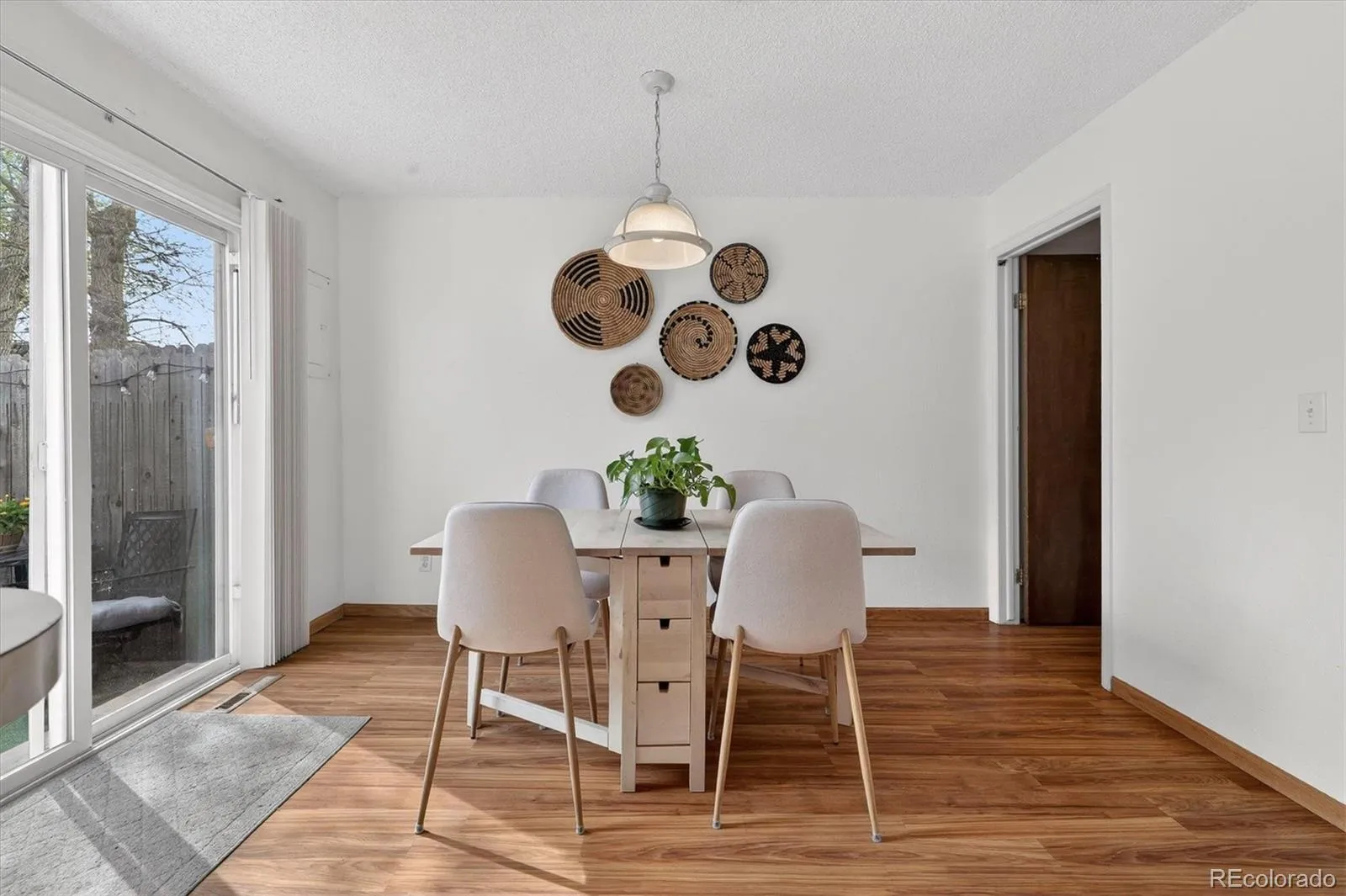 Welcome home to this charming and well-maintained townhome with a private patio, flexible basement space and pool access! The main level features durable and attractive vinyl plank flooring, creating a warm and inviting space ideal for everyday living and entertaining.Upstairs, you’ll find two generously sized bedrooms, each offering large closets and plenty of natural light—perfect for creating your own relaxing retreat. The partially finished basement adds incredible versatility, featuring a flex space that can easily be used as a bedroom, gym, home office, or game room, plus an expansive storage area with abundant built-in shelving, making organization effortless and giving you room for everything. Step outside to your own outdoor sanctuary and enjoy your morning coffee or unwind in the evening on your private fenced patio, complete with a dedicated garden area for your green thumb and a convenient gate for easy access. Even better, the community clubhouse and pool are just steps away, making it easy to take full advantage of Colorado’s 300 days of sunshine, whether you’re lounging poolside or connecting with neighbors. This home has been thoughtfully cared for and offers a wonderful balance of cozy charm and practical living space. A true gem you won’t want to miss!