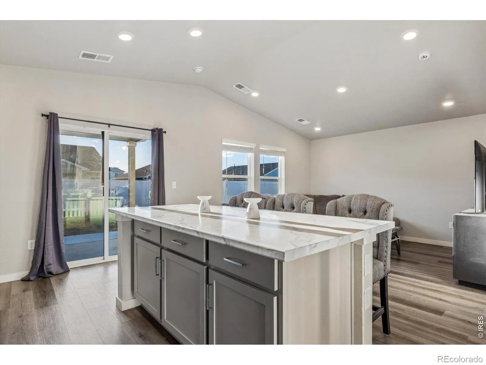 Welcome home to this turnkey ranch-style home in Lupton Village, offering an open floor plan, vaulted ceilings, abundant natural light, and beautiful laminate hardwood floors in this ‘DelNorte Contemporary’ model. The spacious great room seamlessly connects to the upgraded kitchen, comprised of an oversized center island, perfect for gathering and entertaining. Highlights include light-grey cabinetry, a stainless-steel appliance package, and a pantry. Step out of the large glass slider into a partially covered patio overlooking a private, fenced-in yard with a garden bed, ready for your personal touch to bring this space to life. Retreat to your main-floor primary suite. This serene retreat features vaulted ceilings, a walk-in closet, and an ensuite 4-piece upgraded bath. Two generously sized secondary bedrooms, a 3/4 bath, and laundry round out this turnkey residence. Additional features of this home include a tankless water heater, a heated attached 2-car garage, and all appliances included. Ideally situated within walking distance of a community rec center, library, and trail system, as well as nearby schools, shopping, and dining, this home is an exceptional opportunity to experience elevated Colorado living.