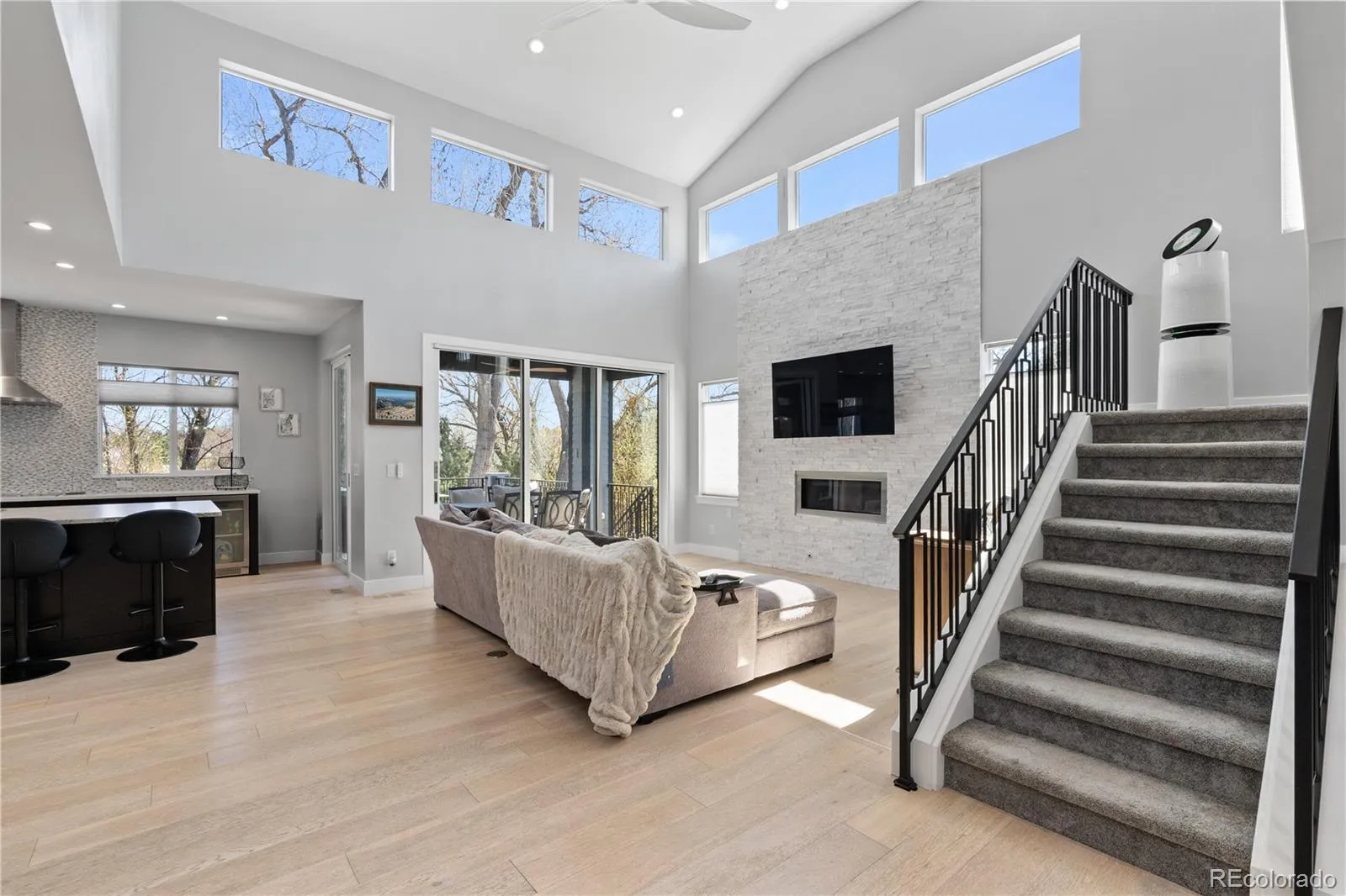 Beautiful newer home in the small coveted Holland Hills neighborhood (No HOA!), backing to Majestic View Nature Center. Built by: Sheffield Homes. Enter this expansive semi-custom, light and bright, main floor master home through the private courtyard perfect for enjoying your morning cup of coffee or the iconic Colorado sunsets. Impressive great room, with a beautiful stone fireplace wall, full of natural sun overlooking the tree filled Nature Center. Watch birds, deer and other wildlife from your living room through the 10′ sliding glass door! The extra large, full slab granite kitchen island has storage on both sides. Chef’s kitchen with 36″ induction cooktop, double side-opening oven and walk in pantry. Customizable dining area can expand to hold a huge table for large gatherings. The main floor office has tons of storage. Additional two bedrooms and loft upstairs. Spacious master bedroom has a beautiful view of the massive trees in the Nature Center. Enjoy endless hot water in the large soaking tub supplied with the whole house tankless water heater. Loads of upgrades engineered hardwood floors, luxury Brizo faucets, custom metal railing inside and out. Incredibly efficient home with 2×6 walls and spray foam insulation. Haiku fans throughout, with a 72” smart fan in the great room. Owned/paid off- solar with 2 Tesla Powerwalls (27 kWh Total), never lose power again and offset time-of-use Xcel charges that are coming. High efficiency furnace, heat pump and air conditioning. 220 in all car spaces in both garages, bring your EV or shop tools. Bring your toys with a 3 car garage and -paved RV parking (No HOA!) on the side of the house. Walkout open basement to build out as you want. Large professionally landscaped front and back yard. Nature trails and park within walking distance. Close to historic old town Arvada & easy access to downtown Denver as well as the mountains via I-70.