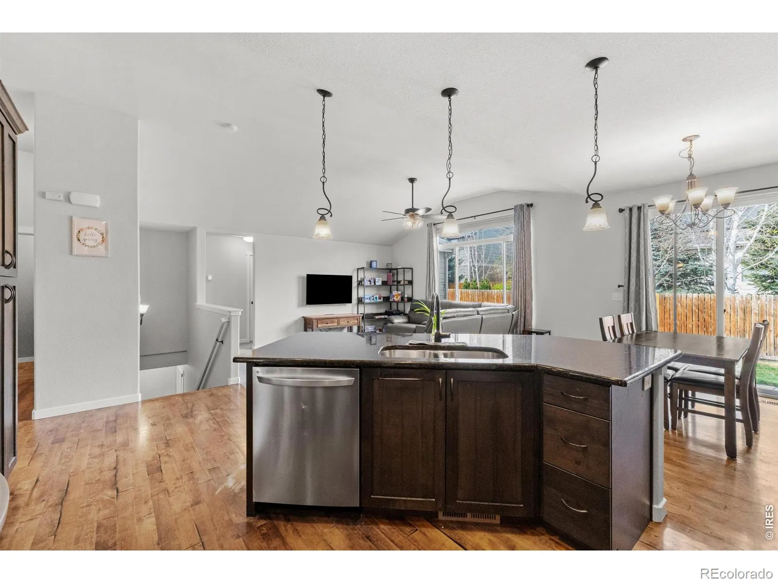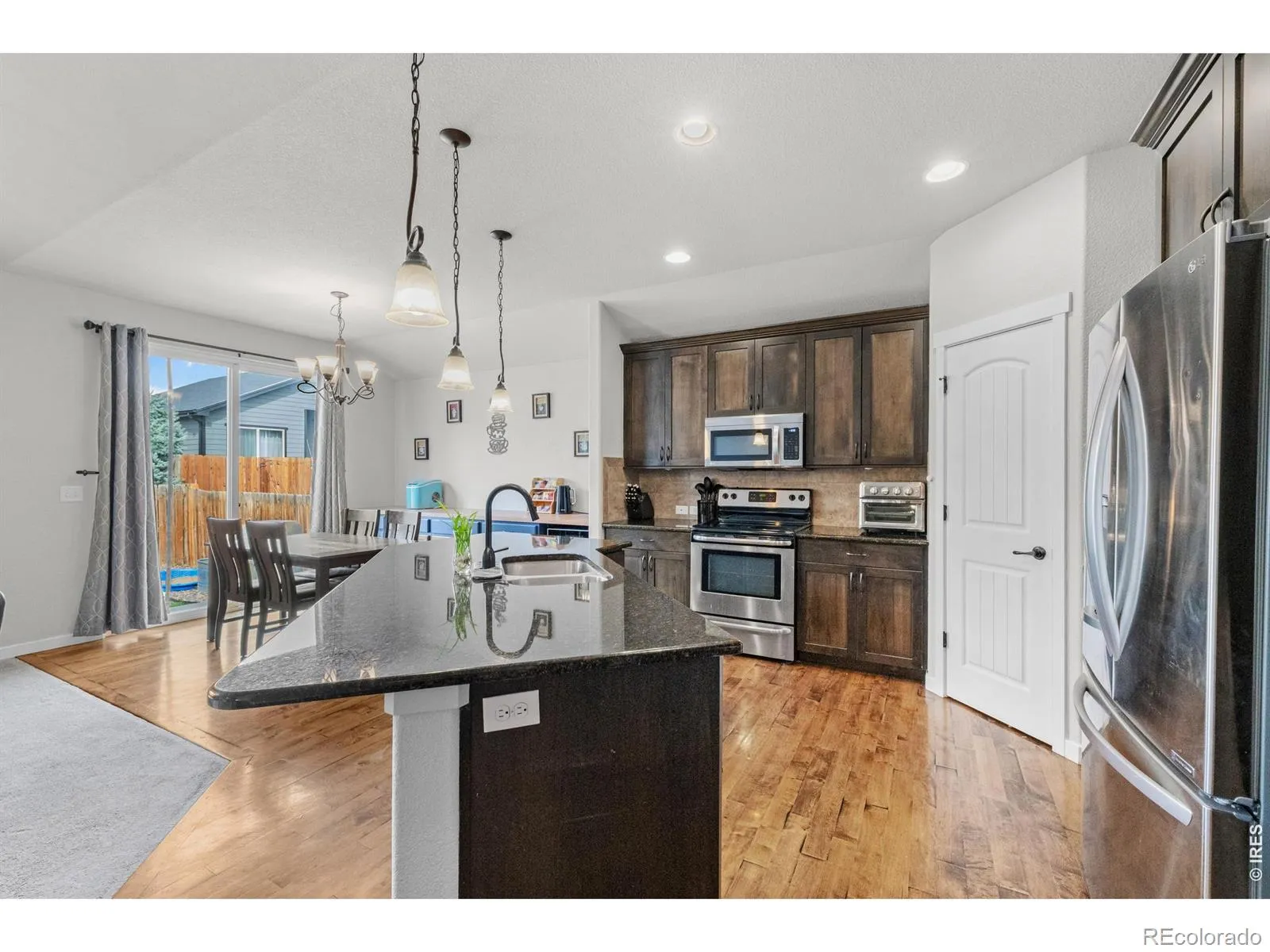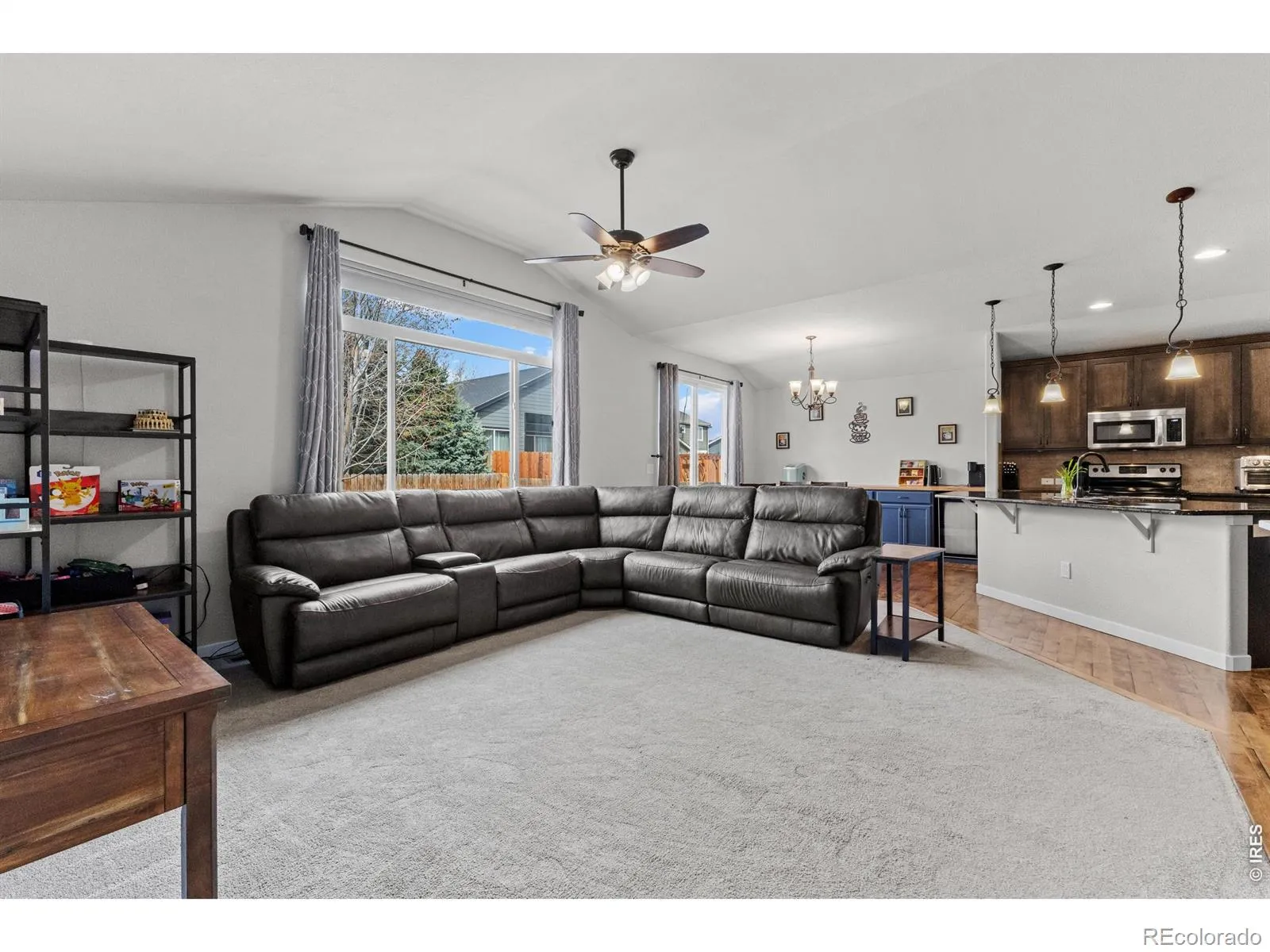 Well maintained 5-bedroom ranch in the desirable Johnstown Farms neighborhood, offering a functional layout with 3 bedrooms on the main level and 2 additional bedrooms in the newly finished basement. The main floor features soaring ceilings, hardwood floors, and an open design that seamlessly connects the family room, dining area, and gourmet kitchen. The kitchen includes granite countertops, stainless steel appliances, a walk-in pantry, and a large island ideal for cooking and gathering. The primary suite provides privacy with a 5-piece bath and spacious walk-in closet. Sliding glass doors lead to a concrete patio and fenced backyard, perfect for outdoor enjoyment. The finished basement adds valuable living space with two bedrooms, a modern 3/4 bath, and a generous rec room suited for entertainment (plumbed for a wet bar), fitness, or additional living needs. New microwave, sinks and faucets 2022, dishwaser 2023, HVAC system 2024, water heater 2025 and more upgrades. Conveniently located near parks and the YMCA, this home offers comfort, flexibility, and room to grow.