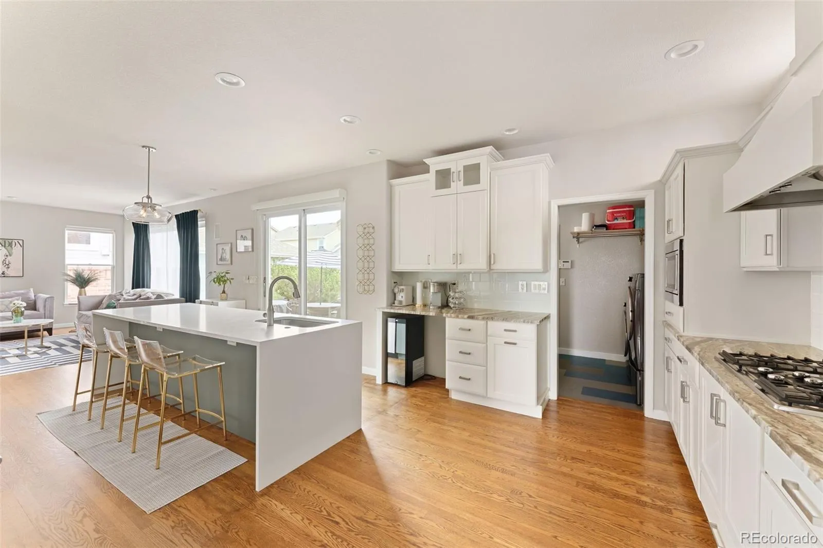 The heart of the home is the fully remodeled kitchen, complete with sleek cabinetry, premium countertops, and top-of-the-line appliances—perfect for hosting gatherings or enjoying quiet meals at home. Flowing seamlessly from the kitchen, the main floor offers a large dining area and a spacious living room, both bathed in natural light from abundant windows. A flexible office or den space adds versatility, ideal for remote work, studying, or a cozy reading nook.