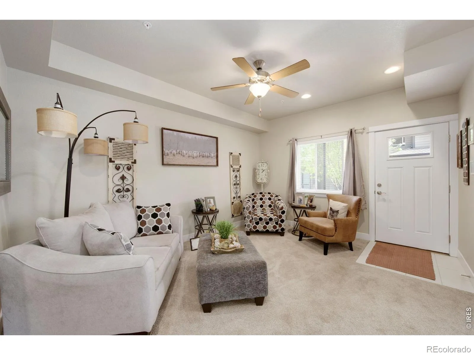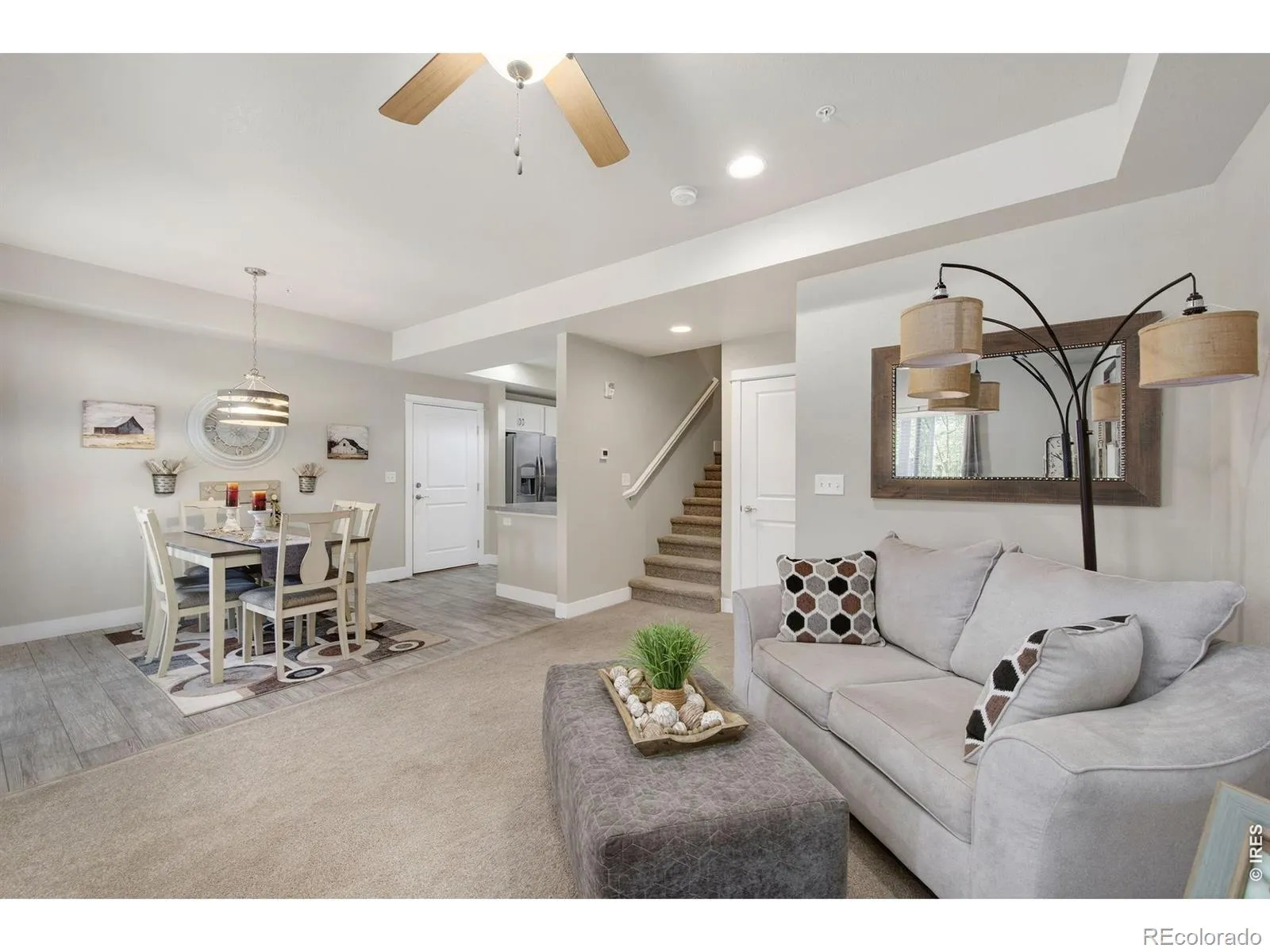 This well maintained townhouse is rare with a finished basement including full bath that can be used as an additional living area or easily turned into a second master suite. 2 bedrooms and full baths upstairs with laundry. Take a short walk to the clubhouse to use the pool, putting green, volleyball area, conference room with kitchen, library, fitness room, and sitting area. Great location just minutes from Fort Collins and Cheyenne.